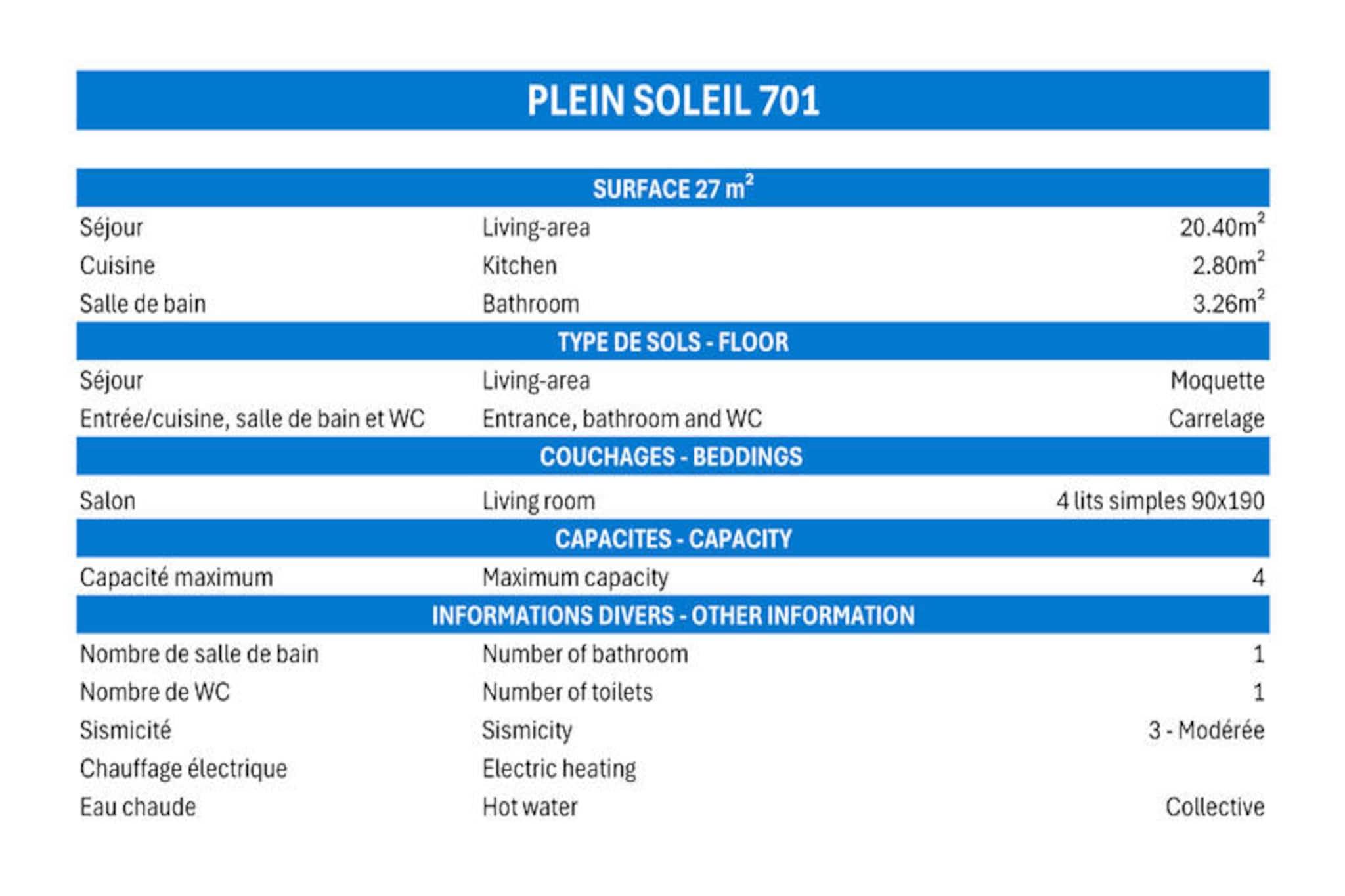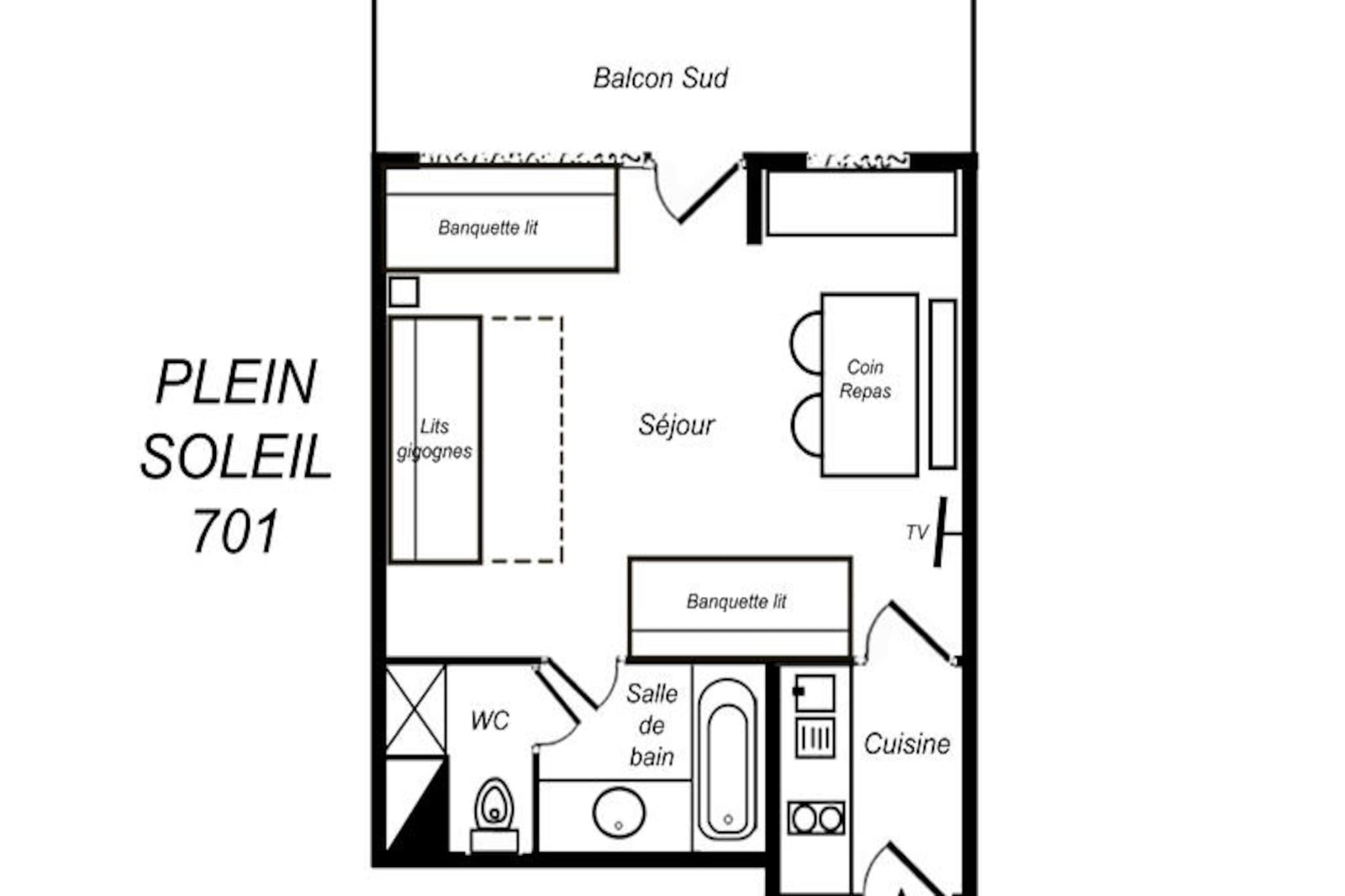 I hjertet af den fortryllende landsby Mottaret, hvor de snedækkede tinder i de franske alper møder den pulserende energi fra et travlt skisportssted, ligger Plein Soleil-residensen. Dette hyggelige tilflugtssted tilbyder den perfekte alpine flugt for dem, der søger eventyr og afslapning i lige mål. Forestil dig at vågne op til den friske bjergluft, træde ud på din sydvendte balkon og kigge ud over de uberørte pister, der venter på din udforskning. Med pisterne lige uden for døren begynder dine skieventyr i det øjeblik, du forlader skiboksene. Dette charmerende studie, designet til op til fire gæster, tilbyder et varmt og funktionelt rum at slappe af efter en dag på bjerget. Opholdsstuen har en udtrækssenge og to sovesofaer, der tilbyder fleksible sovemuligheder for familier eller små grupper. Det veludstyrede tekøkken indeholder alt, hvad du behøver for at tilberede solide måltider, fra køleskab og keramiske kogeplader til opvaskemaskine og elkedel. Moderne bekvemmeligheder såsom fladskærms-tv og gratis Wi-Fi i opholdsstuen sikrer, at dit ophold er lige så behageligt, som det er fornøjeligt. Plein Soleil-residensen er ideelt placeret til at udforske den bredere Méribel-dal. Chalets-svævebanen, der ligger kun få minutter væk, giver gratis og bekvem adgang til Hameau- og Laitelet-områderne fra tidlig morgen til sen aften. I nærheden finder du et udvalg af butikker, restauranter og afterski-muligheder for at fuldende din alpine oplevelse. Uanset om du er her for at kæmpe dig gennem frisk puddersne, nyde den livlige feriestedsatmosfære eller blot nyde den betagende udsigt over bjergene, placerer denne residens dig i hjertet af det hele. Vælg Plein Soleil til din næste alpine ferie og skab uforglemmelige minder i et af de mest maleriske hjørner af de franske alper.
