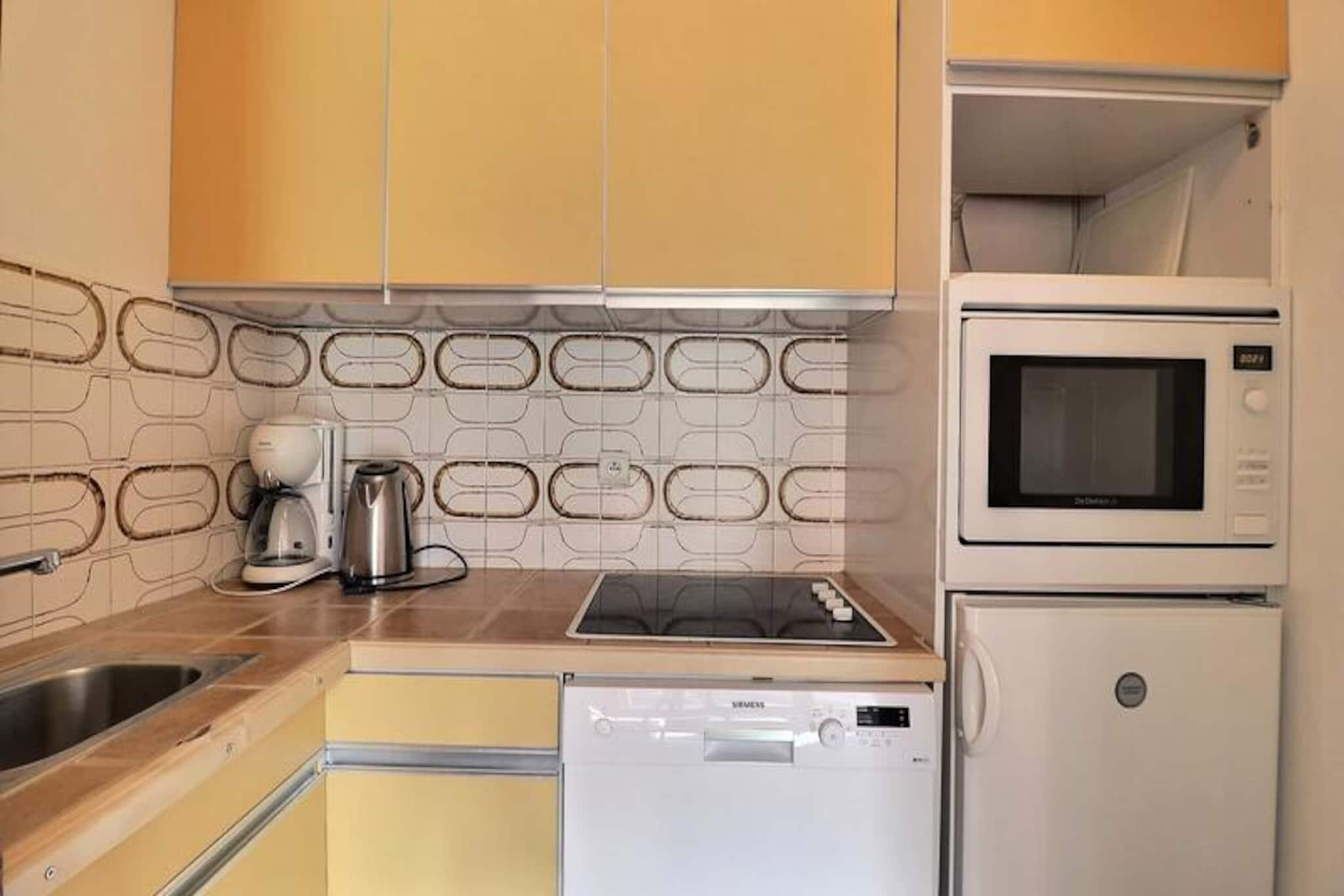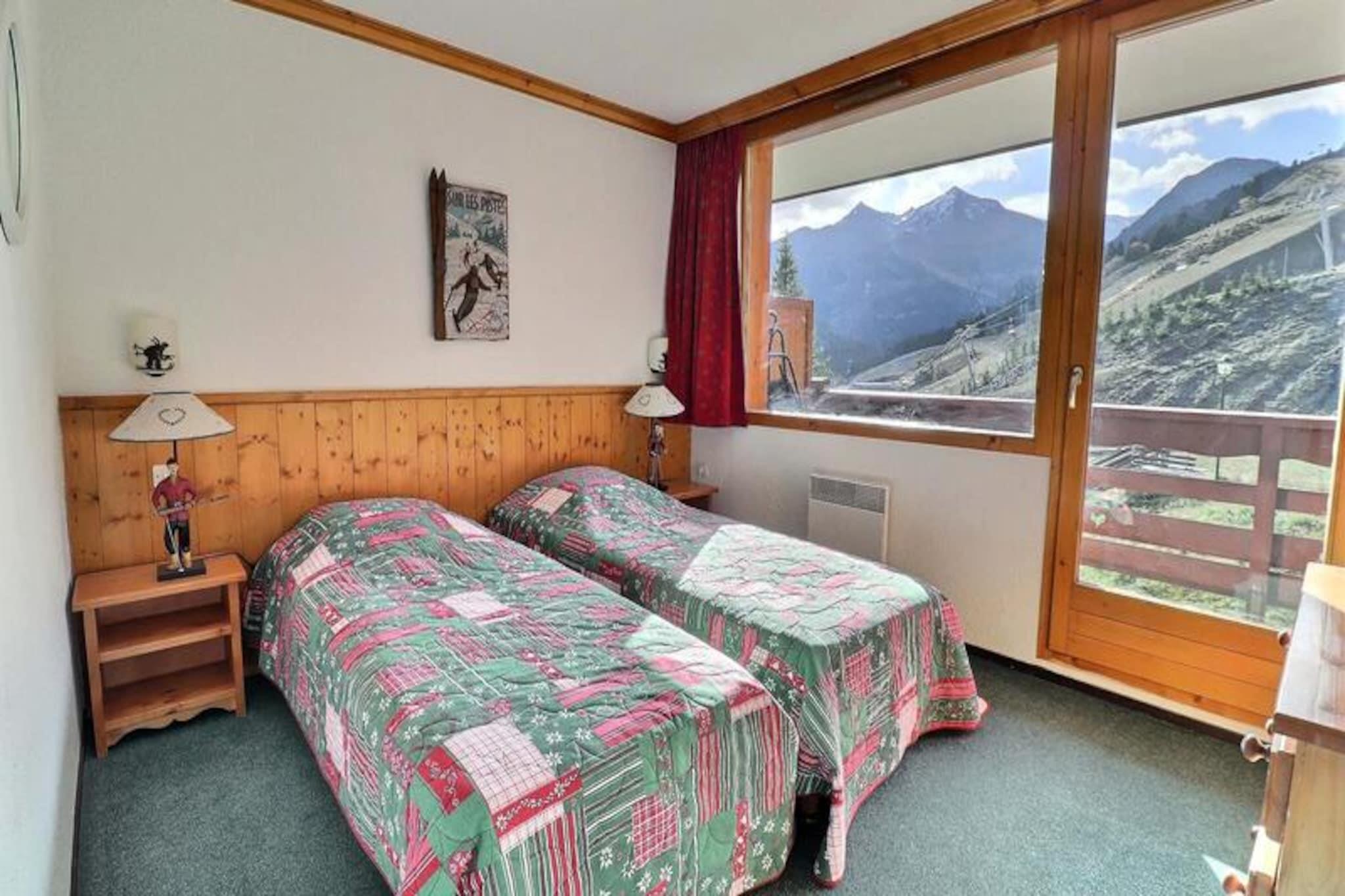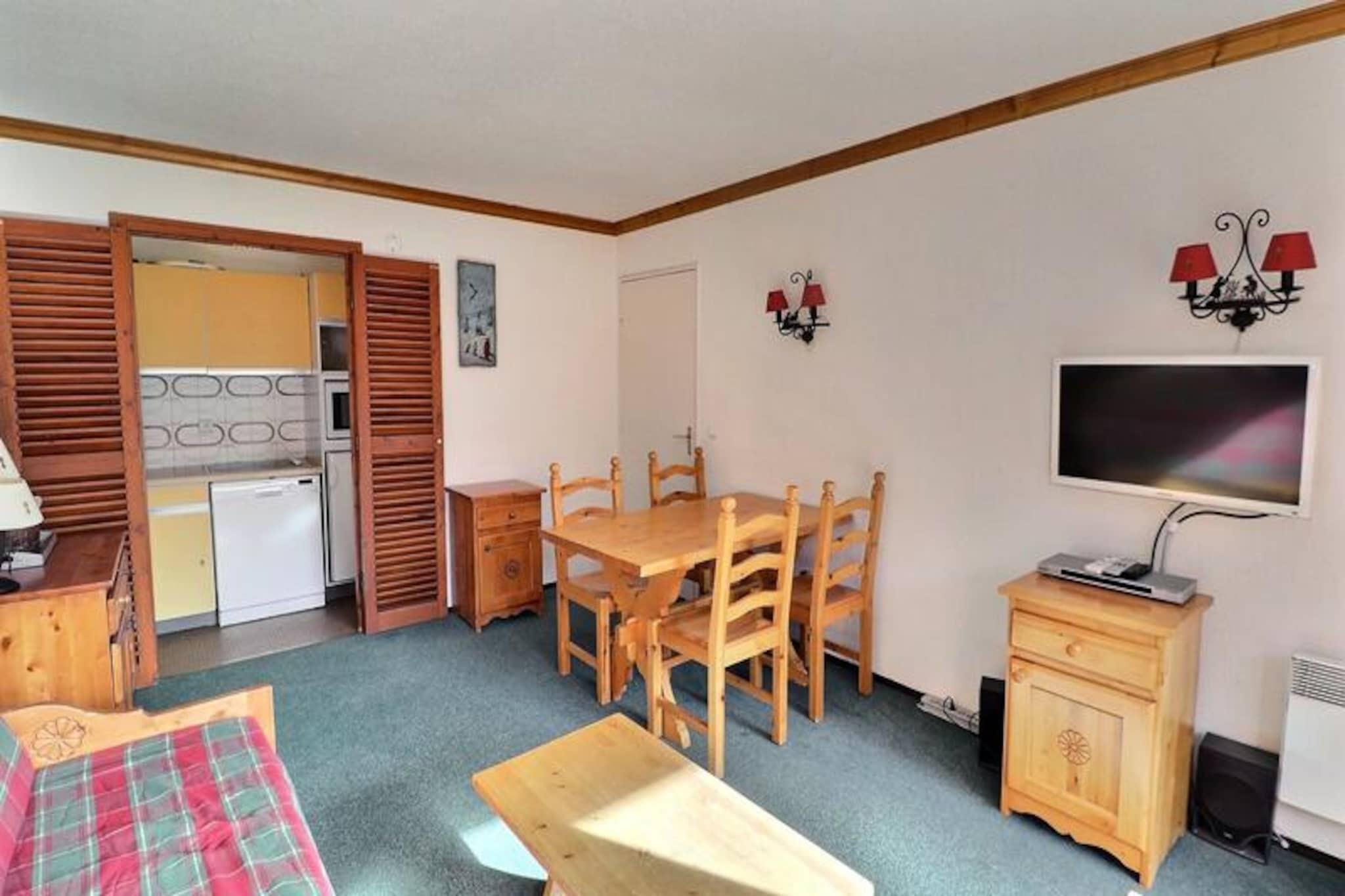 Højt over Mottarets fortryllende skråninger inviterer denne hyggelige lejlighed i Plein Soleil-residensen dig til at opleve magien ved alpint liv. Med sin sydvendte balkon, der tilbyder uforstyrret udsigt over de sneklædte tinder, føles hvert øjeblik her som et postkort, der kommer til live. Uanset om du nipper til din morgenkaffe eller slapper af efter en dag på pisterne, sætter den rolige bjergatmosfære den perfekte tone for din ferie. Residensens førsteklasses beliggenhed sikrer, at du altid er få skridt væk fra eventyr og bekvemmelighed. Skibokse giver dig mulighed for at spænde dine ski på og glide direkte ud på pisterne, hvilket gør hver dag til en problemfri rejse ind i hjertet af Les Trois Vallées. Chalets-svævebanen, der kører indtil sen aften, forbinder dig ubesværet med Hameau- og Laitelet-områderne, hvilket sikrer, at du nemt kan udforske regionens store tilbud. Indenfor er lejligheden omhyggeligt designet til op til fem gæster. Stuen har et sæt udtrækssenge og en sovesofa, mens soveværelset har to komfortable enkeltsenge. Et veludstyret tekøkken med moderne apparater, herunder mikrobølgeovn/grillovn, køleskab og opvaskemaskine, gør det nemt at lave mad. Fladskærms-tv'erne i stuen og soveværelset samt gratis Wi-Fi i opholdsstuen sørger for underholdning og internetforbindelse under dit ophold. Kæledyr er velkomne, og ikke-rygerpolitikken sikrer et friskt og rent miljø. Mottarets pulserende centrum ligger kun en kort gåtur væk og tilbyder butikker, restauranter og afterski-muligheder, der fuldender din alpine ferie. Uanset om du er her for spændende skidage eller rolige aftener, lover denne lejlighed et uforglemmeligt bjergtilflugtssted.