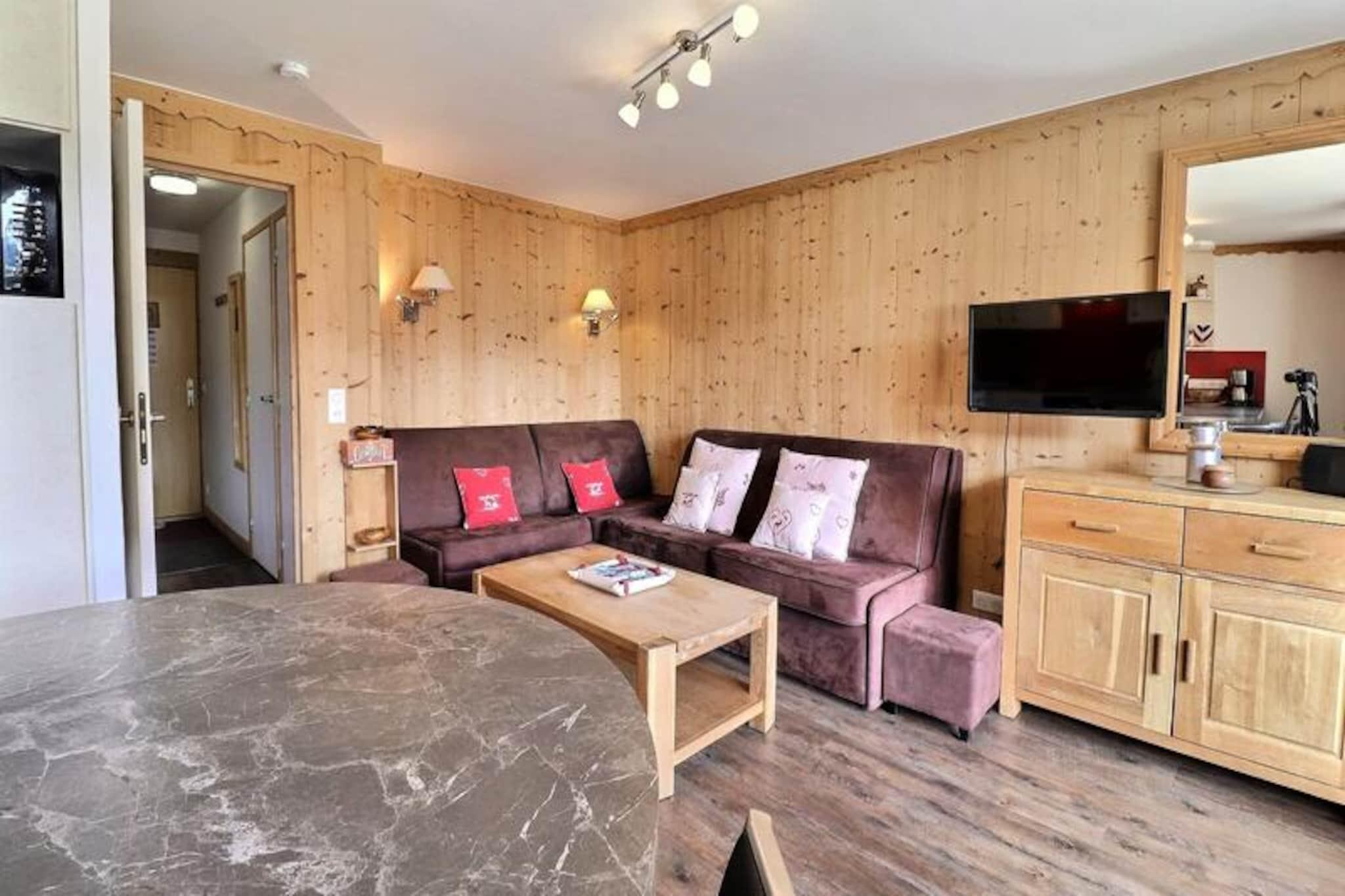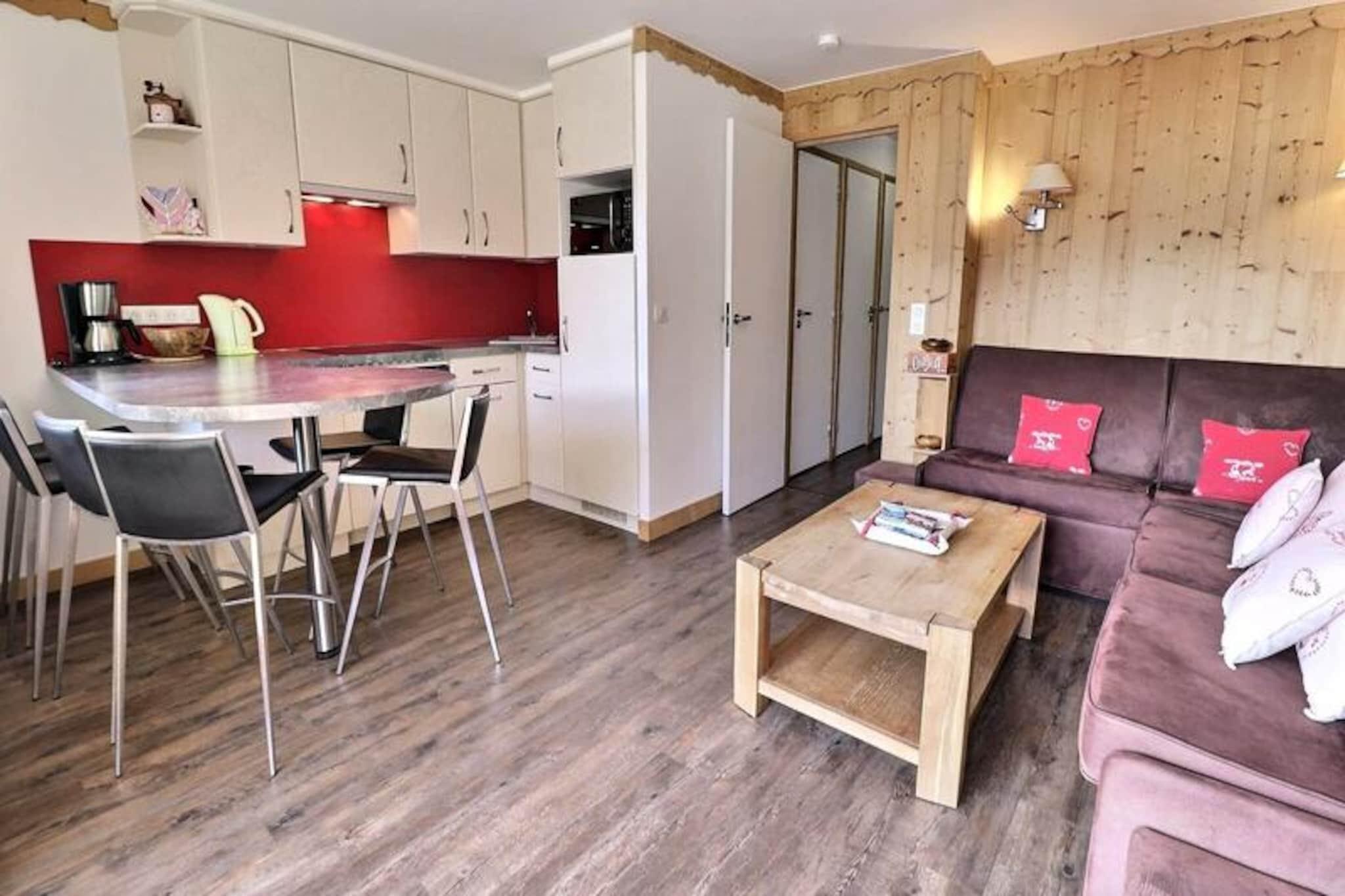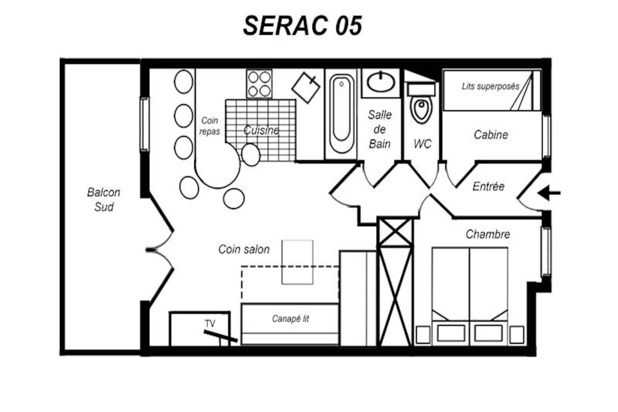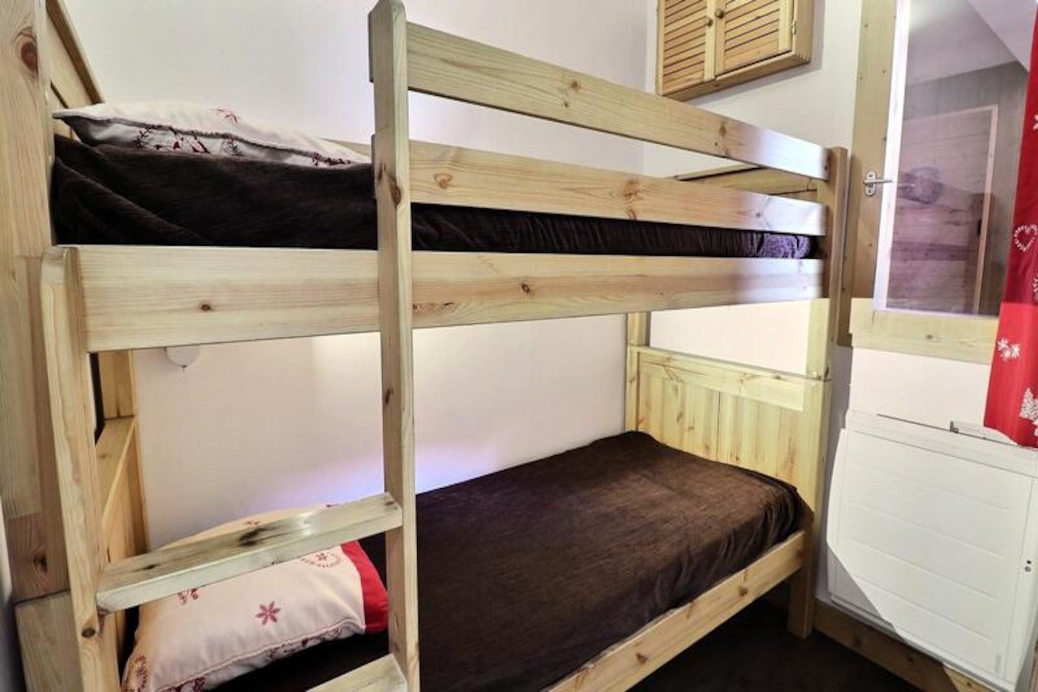 Højt over Méribels fredfyldte dale tilbyder denne charmerende lejlighed i Sérac-residensen en hyggelig alpin oase med en betagende udsigt over Mont Vallon. Forestil dig at vågne op til solen, der kaster gyldne nuancer over de snedækkede tinder, træde ud på din sydvendte balkon for at nyde den friske bjergluft og planlægge en dag fyldt med eventyr i hjertet af de franske alper. Dette indbydende tilflugtssted er perfekt for dem, der søger ro kombineret med nem adgang til skiløb og udendørsaktiviteter i verdensklasse. \n\nLejligheden er designet til op til seks gæster og har en varm og funktionel indretning med en stue udstyret med to komfortable sofaer, hvoraf den ene kan omdannes til en dobbeltsovesofa. Soveværelset tilbyder fleksible sovepladser med en dobbeltseng, der kan adskilles til enkeltsenge, mens den hyggelige hytte med køjesenge er ideel til børn eller ekstra gæster. Det åbne køkken er fuldt udstyret med moderne apparater, herunder en kombineret mikrobølgeovn, opvaskemaskine og induktionskogeplader, hvilket sikrer, at du har alt, hvad du behøver for at tilberede solide måltider efter en dag på pisterne. Et fladskærms-tv, separat badeværelse og toilet fuldender faciliteterne og giver et komfortabelt og problemfrit ophold. \n\nBeliggende kun 100 meter fra den nærmeste skiløjpe, kan du nemt komme til den blå piste eller gå 300 meter for at nå den røde Aigle-piste, der fører til skiliftens hovedafgangssted. Châtelet-indkøbscentret ligger kun fem minutters gang derfra og tilbyder nem adgang til lokale butikker, restauranter og busstoppestedet, så du kan udforske det bredere Méribel-område. Uanset om du står på ski ned ad uberørte pister, vandrer gennem frodige sommerstier eller blot slapper af midt i et fantastisk alpint landskab, placerer denne bolig dig i hjertet af det hele. \n\nVælg denne charmerende lejlighed til din næste bjergferie og skab uforglemmelige minder i et af de mest maleriske omgivelser i de franske alper.