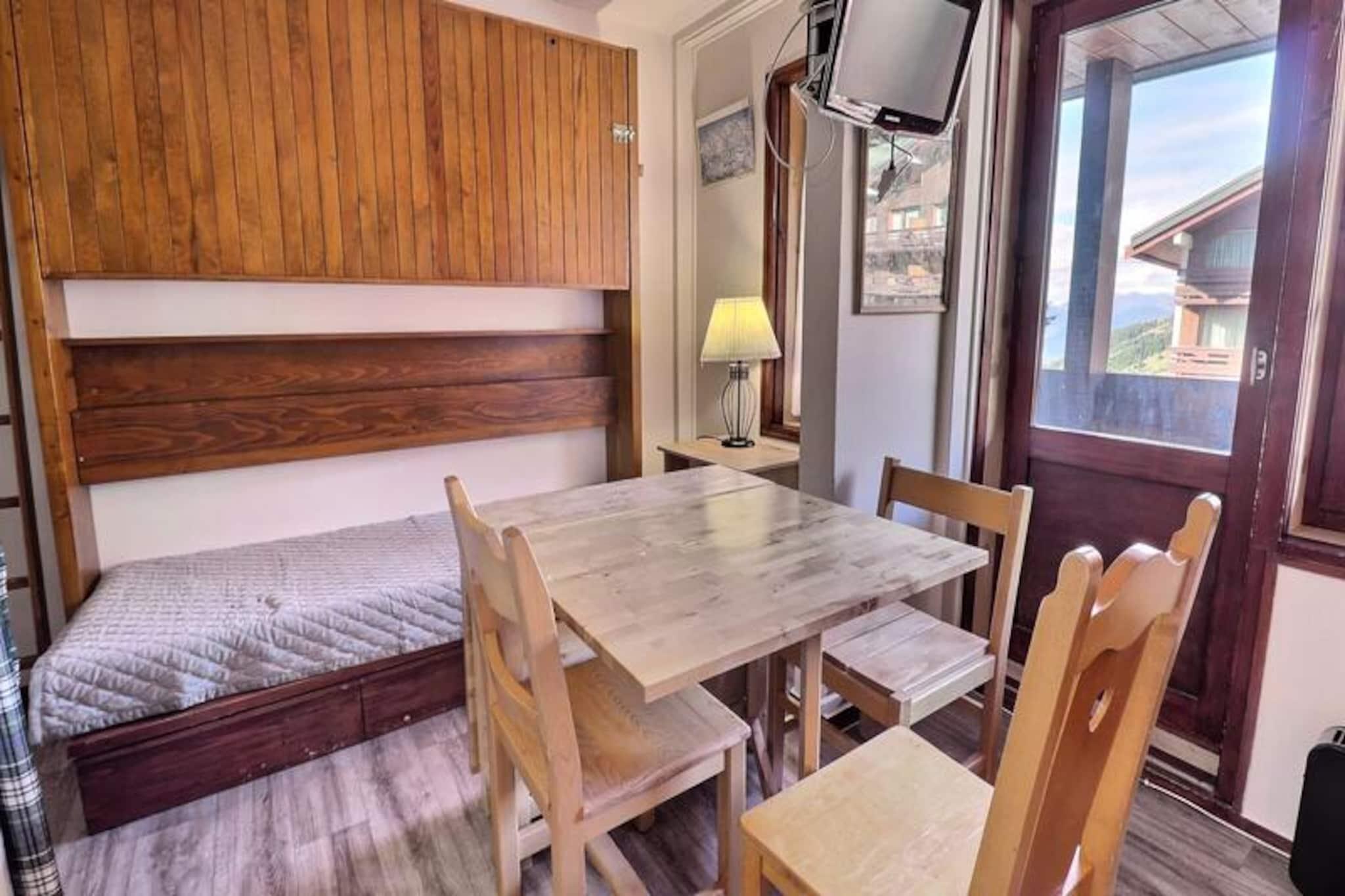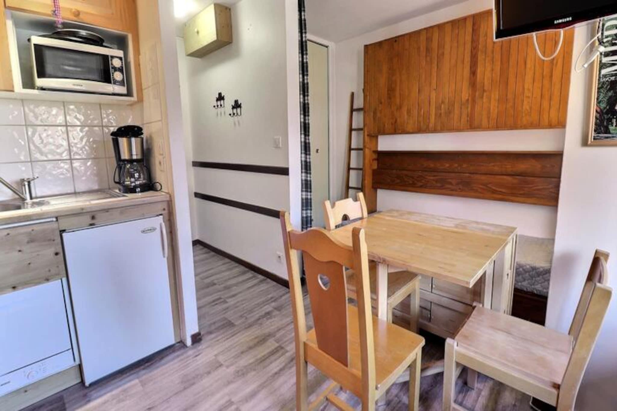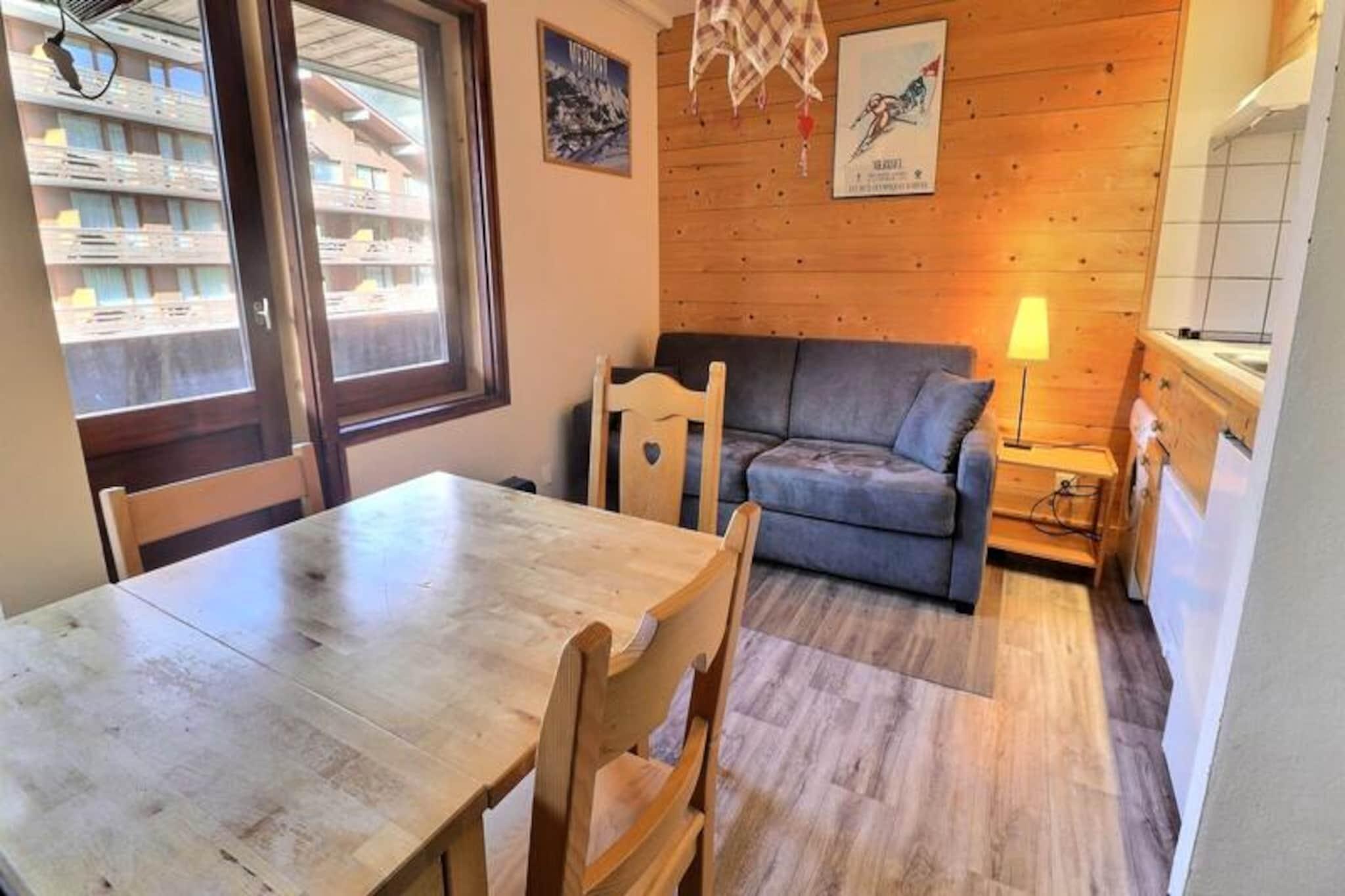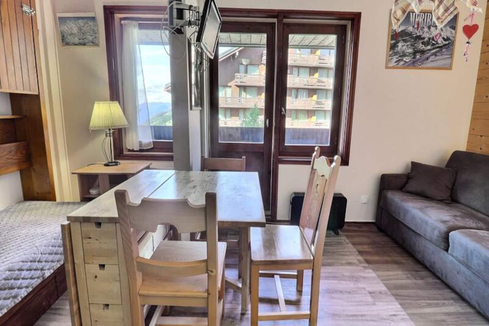 Højt beliggende i hjertet af Méribel Mottaret inviterer dette charmerende studie dig til at opleve magien i de franske alper med direkte adgang til pisterne. Forestil dig at træde ud af boligen og glide ud på den grønne piste Lille Himalaya, der fører dig til det primære afgangssted for skilifterne for endeløse alpine eventyr. Uanset om du er her for spændingen ved skiløb eller den fredfyldte bjergatmosfære, tilbyder dette hyggelige tilflugtssted en perfekt base for din ferie. Det nærliggende Mottaret indkøbscenter, kun 100 meter væk via trapper, sikrer bekvemmelighed uden at gå på kompromis med roen under dit ophold. \n\nStudioet er designet til op til tre gæster og har en smart planløsning med en stue med en dobbelt sovesofa og et separat soveområde med en enkelt sovesofa, afdelt med et gardin for ekstra privatliv. Det åbne tekøkken er udstyret med moderne bekvemmeligheder såsom keramiske kogeplader, køleskab, en kombineret mikrobølgeovn og grillovn, opvaskemaskine, vaskemaskine og essentielle apparater som kaffemaskine og brødrister. Efter en dag på pisterne kan du slappe af i den hyggelige opholdsstue med fladskærms-tv og nyde gratis privat højhastighedsinternet, perfekt til at dele dine bjergminder med dine kære.\n\nResidensens førsteklasses beliggenhed placerer dig tæt på Mottarets pulserende energi, samtidig med at den tilbyder freden og skønheden i det omkringliggende alpine landskab. Udforsk nærliggende stier, nyd lokalt Savoyard-køkken, eller slap blot af på den nordvendte balkon med dens fredfyldte udsigt. Med skibokse, der giver direkte adgang til pisterne, er hvert øjeblik af dit ophold skræddersyet til lethed og nydelse.\n\nUanset om du søger eventyr eller afslapning, kombinerer dette studie komfort, praktisk anvendelighed og en uovertruffen beliggenhed for at skabe uforglemmelige minder i hjertet af Les Trois Vallées. Et perfekt valg for par eller små grupper, der ønsker at fordybe sig i Méribel Mottarets charme.