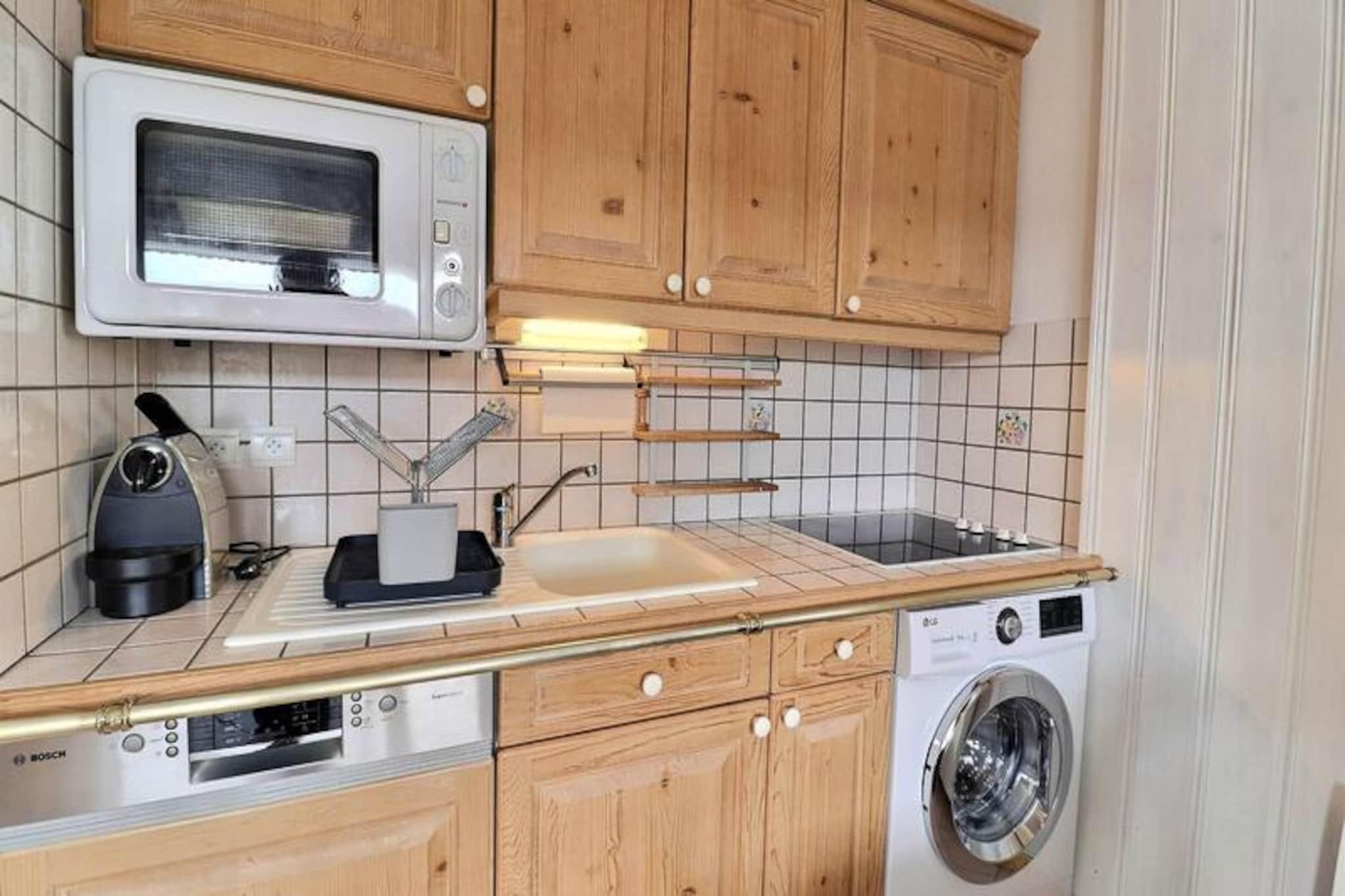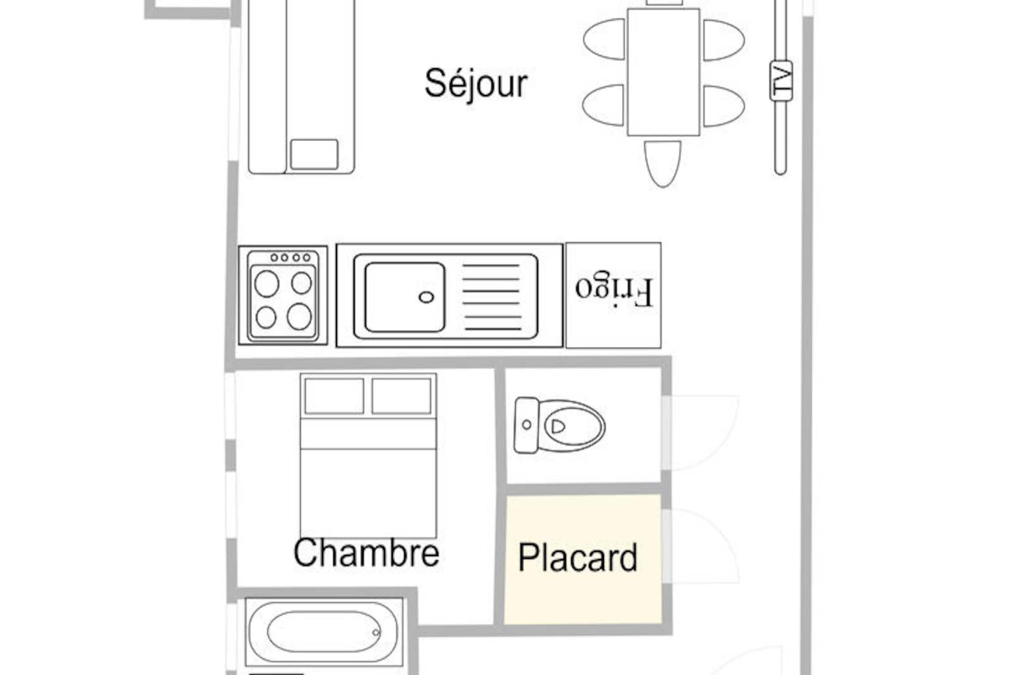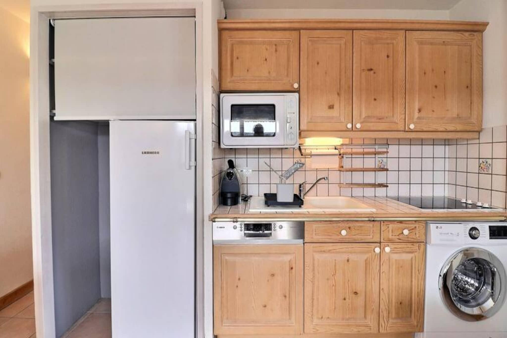 På den fredfyldte Châtelet-side af Méribel-Mottaret tilbyder dette charmerende alpine tilflugtssted en perfekt blanding af ro og bekvemmelighed. Kun 5 minutters gang fra pisterne og Châtelet-indkøbscentret er denne bolig ideel for dem, der søger en hyggelig bjergferie med nem adgang til hjertet af skiområdet Les Trois Vallées. Forestil dig at starte din dag med at krydse en malerisk sti til skiliften, spænde skiene på og glide ind i en verden af ??snefyldte eventyr. Ved dagens slutning kan du stå på ski direkte tilbage til boligen via 'Ours'-pisten, hvis forholdene tillader det, for en problemfri alpin oplevelse. Indvendigt er lejligheden omhyggeligt designet til at rumme op til seks gæster. Stuen har en komfortabel Rapido-sovesofa, mens soveværelset har en hyggelig dobbeltseng. En separat kabine med køjesenge giver ekstra soveplads, hvilket gør den perfekt til familier eller små grupper. Det åbne tekøkken er udstyret med moderne bekvemmeligheder, herunder en Nespresso-maskine, keramiske kogeplader og en vaskemaskine/tørretumbler, der sikrer alle hjemmets bekvemmeligheder. Efter en dag på pisterne kan du slappe af på den nordøst- og sydvendte terrasse eller slappe af i opholdsstuen med Smart TV og gratis internetadgang. Residensens beliggenhed er en indgangsport til både eventyr og afslapning. Det nærliggende Châtelet-indkøbscenter tilbyder nem adgang til butikker og spisesteder, mens shuttle-stoppestedet kun 150 meter væk sikrer nem udforskning af det bredere Méribel-område. Udover skiløb kan regionen prale af betagende vandrestier, naturskønne svævebaneture og livlige afterski-muligheder. Uanset om du er her for spændingen ved pisterne eller charmen i alpelandsbyen, lover denne ejendom et uforglemmeligt ophold i de franske alper.
