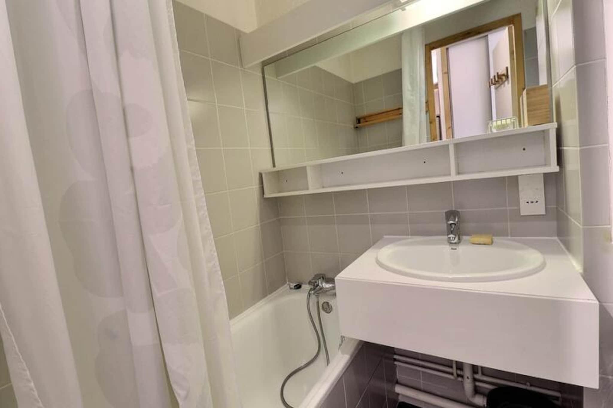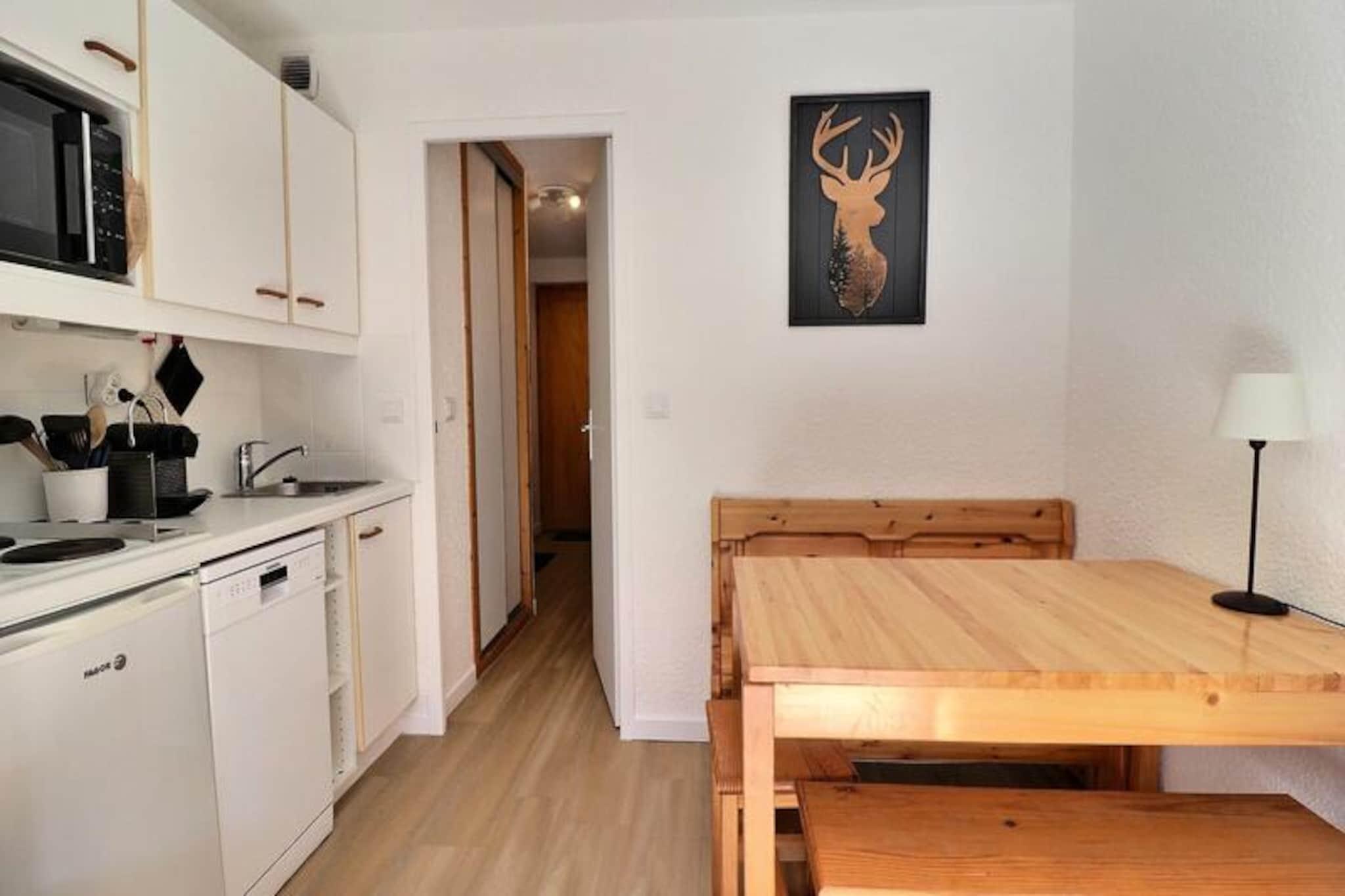 Højt over det travle indkøbscenter Chatelet tilbyder denne charmerende studiolejlighed i Olympie 1-residensen et hyggeligt alpint tilflugtssted for op til fire gæster. Forestil dig at vågne op til den friske bjergluft og træde ud på din vestvendte balkon for at nyde den fredfyldte udsigt over pisterne og de omkringliggende tinder. Denne ejendom er perfekt placeret kun 100 meter fra hovedskiliften og 50 meter fra shuttlebusstoppestedet og sikrer ubesværet adgang til vintereventyrlandet i de franske alper. Uanset om du er her for skiløb eller sommervandreture, er bekvemmeligheden og komforten på denne beliggenhed uovertruffen. \n\nIndenfor er studiolejligheden omhyggeligt designet til at maksimere plads og komfort. Sovelkoven har køjesenge, der er ideelle til familier eller små grupper, mens stuen kan prale af en Rapido-sovesofa til afslappende nætter. Et veludstyret tekøkken inkluderer moderne apparater såsom mikrobølgeovn med grill, køleskab, opvaskemaskine og Nespresso-kaffemaskine, hvilket gør madlavning til en leg. Badeværelset er kompakt, men funktionelt, og moderne detaljer som et fladskærms-tv og Bluetooth-højttaler sikrer underholdning og afslapning efter en dag på pisterne. Med en ikke-rygerpolitik og kæledyrsvenlig indkvartering imødekommer dette studie forskellige behov. \n\nTræd udenfor og find dig selv fordybet i den pulserende atmosfære i Chatelet, med dens bekvemme butikker, spisemuligheder og ESF-mødestedet kun få øjeblikke væk. Familier vil sætte pris på nærheden til Piou-Piou børnehave, mens friluftsentusiaster vil elske den nemme adgang til skilifter og shuttlebusser. Om sommeren forvandles området til et paradis for vandrere og naturelskere, med stier, der fører til betagende udsigter. \n\nUanset om du søger spændende alpine eventyr eller rolige bjergflugter, er dette studie i Olympie 1 den perfekte base for at skabe uforglemmelige minder i hjertet af de franske alper.