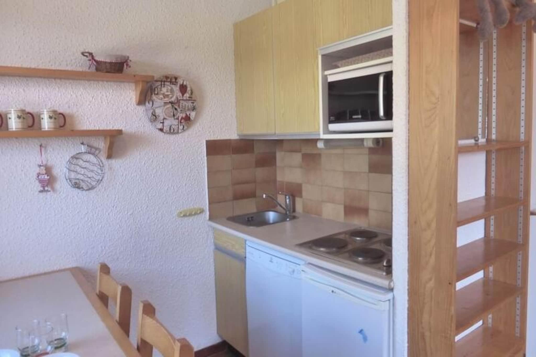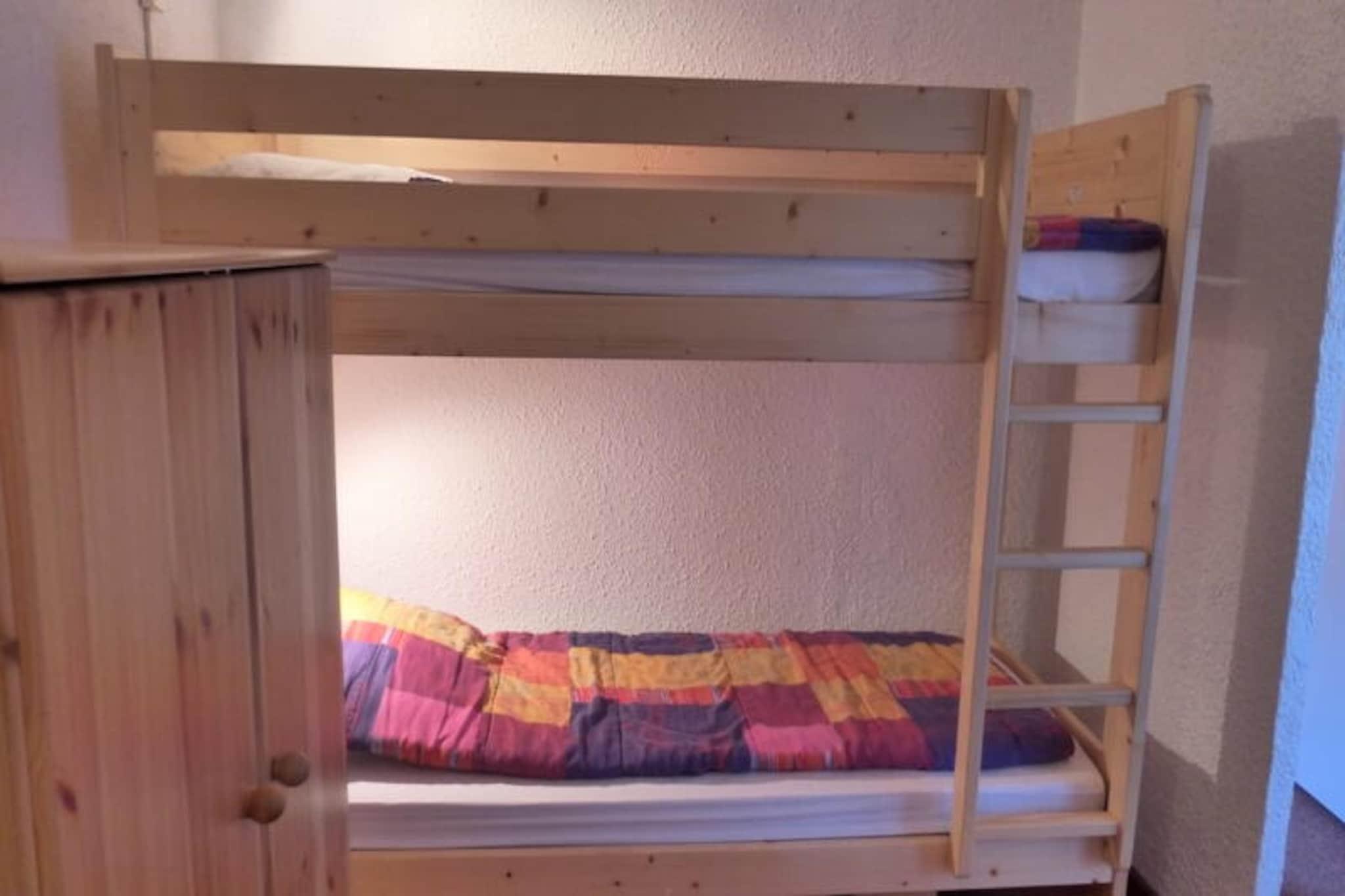 Højt over den fortryllende Méribel Mottaret tilbyder denne hyggelige lejlighed en plads på første række til den betagende skønhed i de franske alper. Forestil dig at vågne op til en storslået udsigt over dalen og de snedækkede tinder fra din private nordvendte balkon, med pisterne kun få skridt væk. Uanset om du er her for et vinterskieventyr eller en rolig sommerferie, placerer denne bolig dig i hjertet af alpin charme og bekvemmelighed. Det pulserende Hameau-distrikt med sine charmerende butikker og indbydende restauranter ligger kun en kort gåtur væk, hvilket sikrer, at alt hvad du behøver er inden for rækkevidde. Denne lejlighed på 36 m² er designet til at rumme op til fem gæster og er perfekt til familier eller små grupper, der søger komfort og praktisk anvendelighed. Stuen har en hyggelig enkelt sovesofa, mens soveværelset tilbyder en komfortabel dobbeltseng. Et separat soveområde med køjesenge giver fleksibilitet, selvom den øverste køjeseng ikke er egnet til børn under seks år. Det veludstyrede køkken med elektriske komfurer, mikrobølgeovn, opvaskemaskine og køleskab gør madlavning til en leg. Efter en aktiv dag kan du slappe af i badeværelsets badekar eller slappe af foran fladskærms-tv'et. Et skiskab sikrer, at dit udstyr er sikkert opbevaret, og kæledyr er velkomne mod et ekstra gebyr. Med direkte adgang til skisportsstedet er denne lejlighed en drøm for vintersportsentusiaster. Om sommeren lokker de omkringliggende stier og alpine enge vandrere og naturelskere. Méribel Mottarets centrale beliggenhed i skiområdet Les Trois Vallées giver uovertruffen adgang til et af verdens største skiområder. Uanset om du snorkler gennem frisk puddersne eller nyder bjergsolen, tilbyder denne lejlighed den perfekte base for uforglemmelige alpine eventyr.