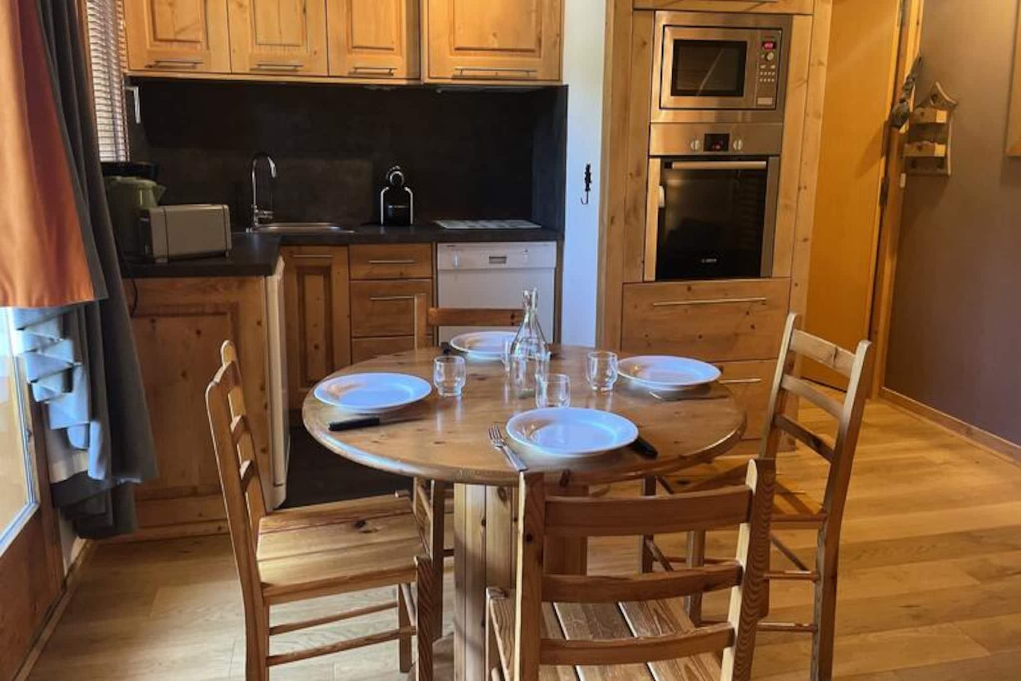 Omgivet af den fredfyldte skønhed i Altiport-området i Méribel tilbyder denne charmerende 2-værelses lejlighed et idyllisk tilflugtssted for både vintersportsentusiaster og sommereventyrere. Med sin misundelsesværdige beliggenhed ved foden af ??pisterne og nær starten af ??golfbanen, vil du vågne op til en betagende udsigt over grantræer og nyde direkte adgang til den storslåede natur. Den fredelige atmosfære i dette grønne kvarter, kombineret med dets nærhed til shuttlebusstoppestedet og kun 3 km fra Méribels pulserende centrum, gør det til en perfekt base for din alpine ferie. Indenfor er den 43 m² store lejlighed blevet omhyggeligt renoveret for at give komfort og bekvemmelighed til op til fem gæster. Stuen har en hyggelig sovesofa, mens soveområdet har køjesenge, ideelt for familier. Det separate soveværelse har to enkeltsenge til afslappende nætter. Det fuldt udstyrede køkken med keramiske kogeplader, ovn, opvaskemaskine og mikrobølgeovn sikrer, at du kan tilberede lækre måltider efter en dag med skiløb eller vandreture. Et moderne badeværelse med badekar og separat toilet bidrager til rummets praktiske anvendelighed, mens den nordvestvendte balkon inviterer dig til at slappe af med en fantastisk udsigt over skoven. Boligen har også et skirum til dit udstyr, og yderligere faciliteter som et tv og valgfri Wi-Fi-udlejning sikrer et behageligt ophold. Med liftkort til nedsatte priser og sengelinned inkluderet er denne lejlighed designet til at gøre din ferie problemfri. Uanset om du snor dig gennem uberørte pister om vinteren eller udforsker naturskønne stier og golfbanen om sommeren, tilbyder dette Méribel-tilflugtssted den perfekte blanding af ro og eventyr. Oplev charmen ved de franske alper og skab uforglemmelige minder i dette hyggelige alpeparadis.