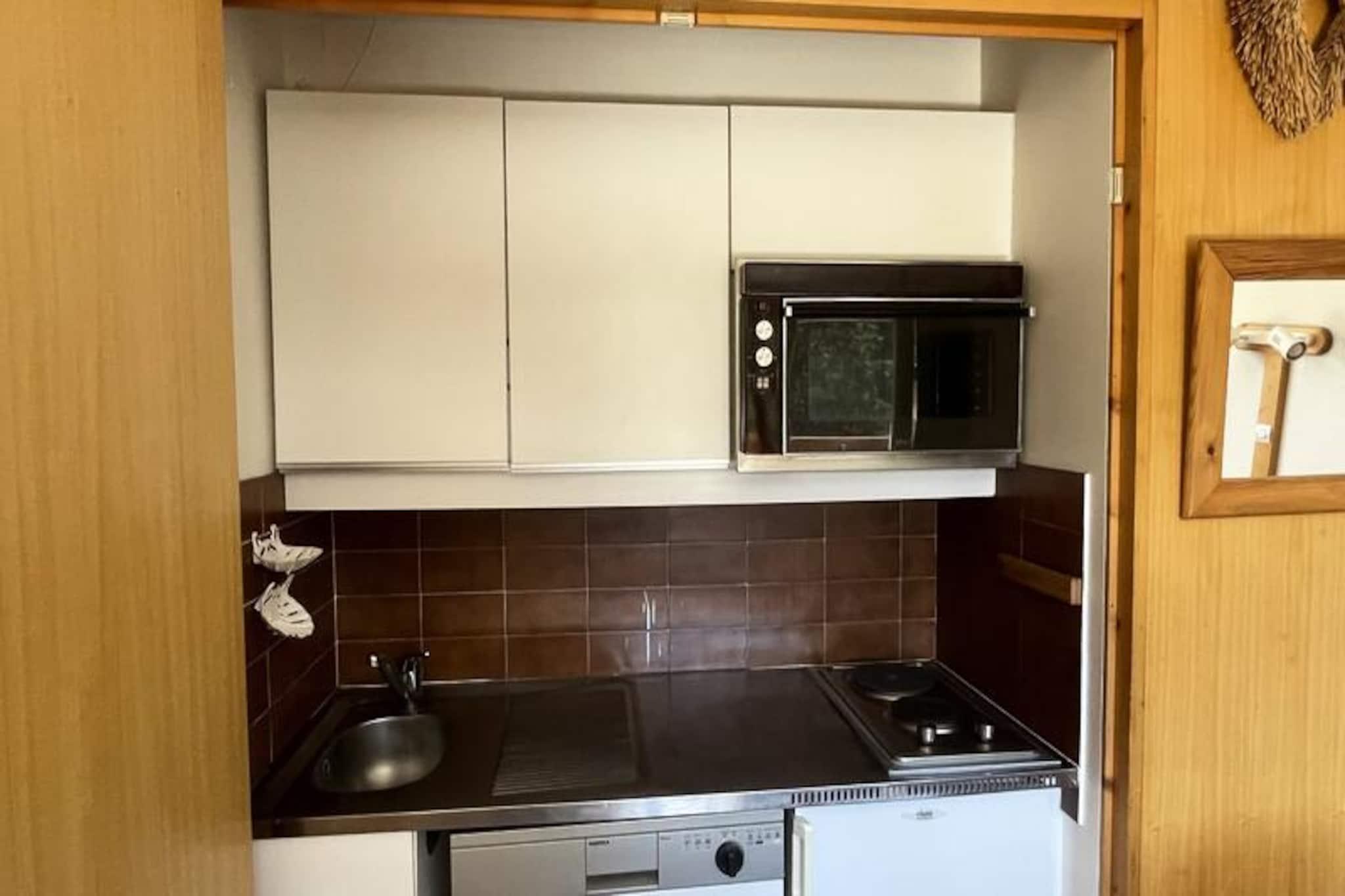 I det fredfyldte Altiport-område i Méribel inviterer dette charmerende studie dig til at opleve magien i de franske alper. Med sin misundelsesværdige beliggenhed ved foden af ??pisterne og nær starten af ??golfbanen tilbyder denne bolig en betagende udsigt over de omkringliggende bjerge og skiløjper. Uanset om du er her for et vinterskieventyr eller en sommerferie, skaber de rolige omgivelser og den alpine charme den perfekte kulisse for din ferie. Dette hyggelige studie på 26 m², der ligger på anden sal i en bolig med elevator, har komfortabel plads til op til fire gæster. Stuen har to enkeltsofaer, mens soveområdet har et sæt køjesenge, hvilket gør det ideelt til familier eller små grupper. Køkkenet er veludstyret med elektriske kogeplader, ovn, opvaskemaskine og køleskab, hvilket sikrer, at du har alt, hvad du behøver for at tilberede måltider efter en dag med eventyr. Badeværelset har badekar, og der er et separat toilet for ekstra bekvemmelighed. Yderligere faciliteter såsom et fjernsyn og et skiskab forbedrer dit ophold, mens den sydøstvendte hjørnebalkon tilbyder et roligt sted at nyde udsigten. Beliggende kun 3 km fra Méribels livlige centrum og få skridt fra shuttlebusstoppestedet, sikrer denne bolig nem adgang til lokale attraktioner, butikker og restauranter. Om vinteren kan du nyde direkte adgang til pisterne, mens sommeren byder på muligheder for vandreture, golf og udforskning af Alpernes betagende landskaber. Med rabat på liftkort og muligheden for at leje en Wi-Fi-router er hver eneste detalje tænkt over for at gøre dit ophold problemfrit og behageligt. Uanset om du snor dig gennem frisk puddersne eller soler dig i sommersolen, lover dette tilflugtssted i Méribel en uforglemmelig alpeferie. Book nu og skab varige minder i et af de mest maleriske hjørner af de franske alper.