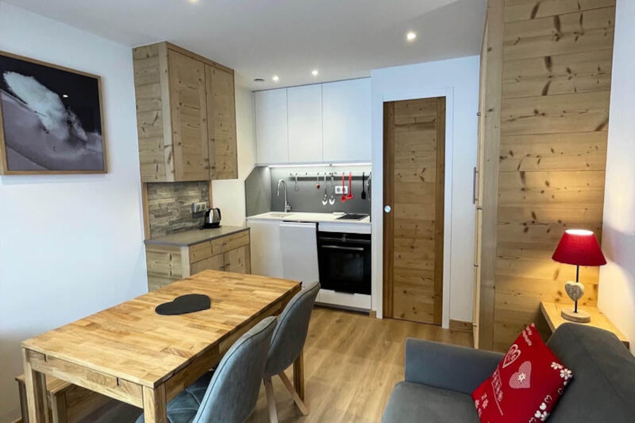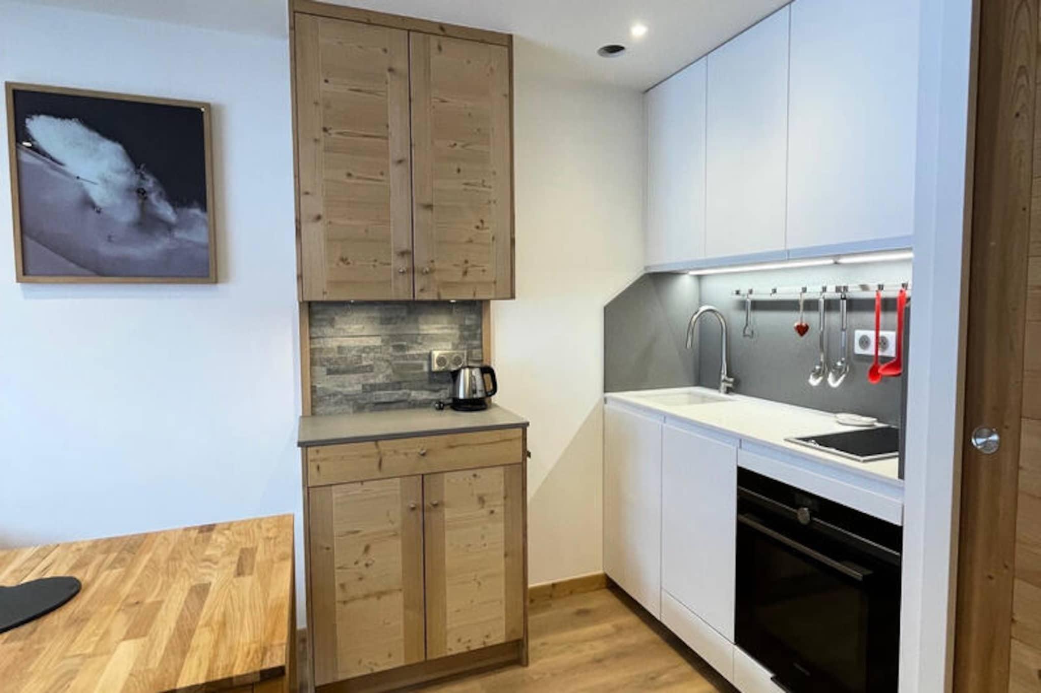 Højt over den fortryllende dal Méribel Mottaret inviterer dette charmerende studie dig til at opleve magien i de franske alper. Med sin sydvendte balkon, der tilbyder uforstyrret udsigt over pisterne, føles hvert øjeblik her som en hyldest til alpin skønhed. Uanset om du besøger stedet for vinterskiløb eller sommerens bjergture, lover dette hyggelige tilflugtssted en perfekt blanding af komfort og bekvemmelighed. Beliggende i Hameau-distriktet, er boligen kun få skridt fra skilifter, butikker og restauranter, hvilket sikrer, at alt hvad du behøver er inden for rækkevidde. \n\nStudioet er omhyggeligt designet til at rumme op til fire gæster og har en moderne indretning med et nyrenoveret interiør. Stuen kan prale af en sovesofa med hurtig åbning, der kan omdannes til en komfortabel soveplads, mens entréen tilbyder to enkeltsenge, der er ideelle til familier eller små grupper. Køkkenet er fuldt udstyret med keramisk kogeplade, kombineret ovn/mikrobølgeovn, opvaskemaskine og køleskab, hvilket gør det nemt at tilberede måltider efter en dag på pisterne. Et elegant badeværelse med bruser øger bekvemmeligheden, og yderligere faciliteter som fladskærms-tv og skiboks sikrer et problemfrit ophold.\n\nTræd udenfor og fordyb dig i Méribel Mottarets pulserende atmosfære. Fra spændende skipister til naturskønne vandrestier tilbyder regionen uendelige muligheder for udendørs udforskning. Nærliggende butikker og restauranter giver en smagsprøve på lokal kultur, mens liftkort med nedsatte priser og tilgængelig offentlig parkering gør dit ophold endnu mere behageligt. Uanset om du nipper til varm kakao på balkonen eller begiver dig ud på et alpint eventyr, er dette studie din port til uforglemmelige minder i hjertet af Les Trois Vallées.\n\nBook dit ophold i dag, og oplev, hvorfor Méribel Mottaret er en favoritdestination for rejsende, der søger både afslapning og spænding. Lad den friske bjergluft og det betagende landskab forynge din ånd i dette idylliske alpine paradis.