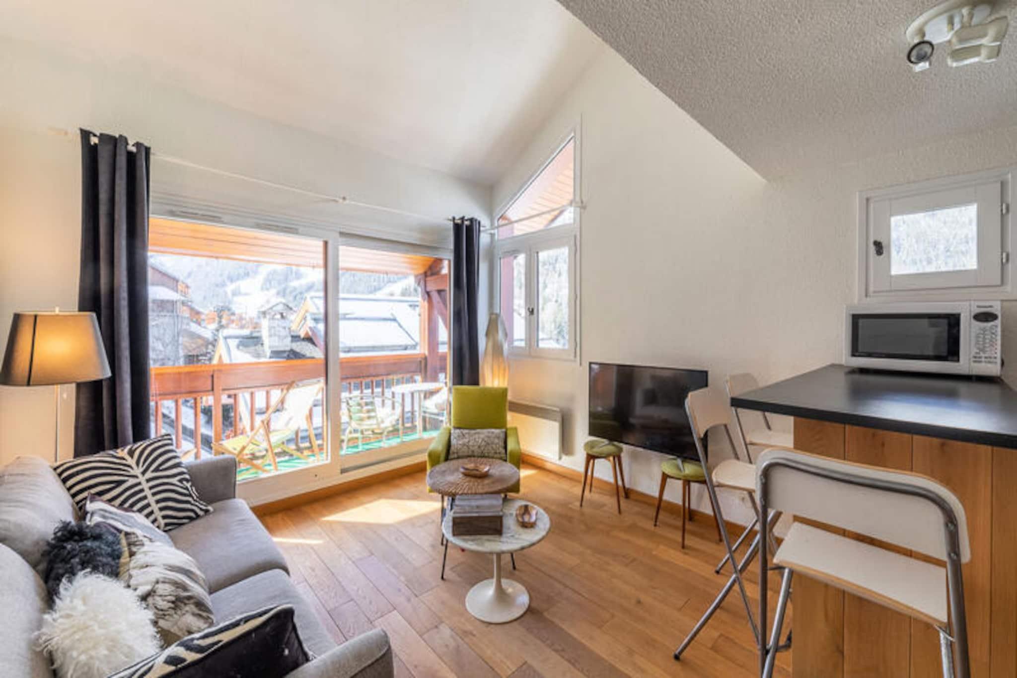 Højt over den maleriske dal Méribel inviterer denne charmerende alpelejlighed dig til at opleve magien i de franske alper i enhver sæson. Med sin sydvestvendte balkon, der tilbyder en betagende udsigt over de omkringliggende tinder, kombinerer denne bolig charmen ved bjerglivet med moderne komfort, hvilket gør den til det perfekte tilflugtssted for både familier og par. Uanset om du er her for spændingen ved vintersport eller roen ved sommervandreture, placerer denne lejlighed dig i hjertet af det hele. Den 48 m² store duplexlejlighed har komfortabel plads til op til fire gæster. I stueetagen er der et hyggeligt soveværelse med køjesenge, mens mezzaninen tilbyder et roligt dobbeltværelse med en blød 160 cm seng. Stuen, komplet med en sovesofa, er et indbydende sted at slappe af efter en dag med eventyr. Det fuldt udstyrede køkken med keramiske kogeplader, mikrobølgeovn, opvaskemaskine og køleskab sikrer, at du kan tilberede solide måltider til at nyde med dine kære. Med to badeværelser, inklusive badekar og bruser, samt yderligere faciliteter som vaskemaskine, skirum og overdækket garage, er hver eneste detalje tænkt over for din bekvemmelighed. Beliggende kun fem minutter fra pisterne og få skridt fra shuttlebusstoppestedet, tilbyder denne bolig uovertruffen adgang til Méribels verdensklasse skiløb og pulserende landsbyliv. Om sommeren tilbyder den udendørs swimmingpool en forfriskende tilflugtssted, mens de omkringliggende stier indbyder til udforskning. Butikker, restauranter og lokale attraktioner er alle inden for rækkevidde, hvilket sikrer et problemfrit og behageligt ophold. Uanset om du snor dig gennem uberørt sne eller nyder alpesolen, lover denne lejlighed i Méribel en uforglemmelig ferie fyldt med komfort, eventyr og bjergenes tidløse skønhed.