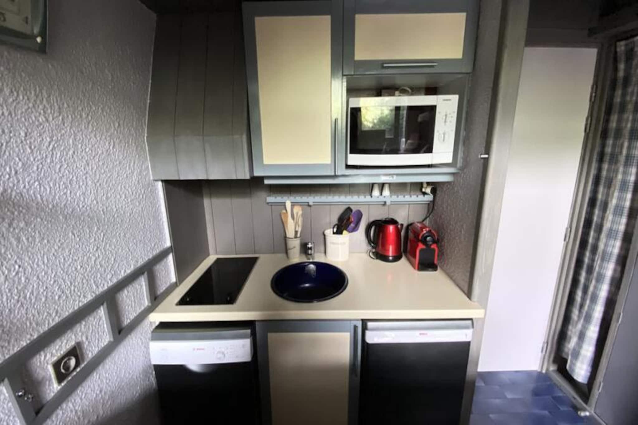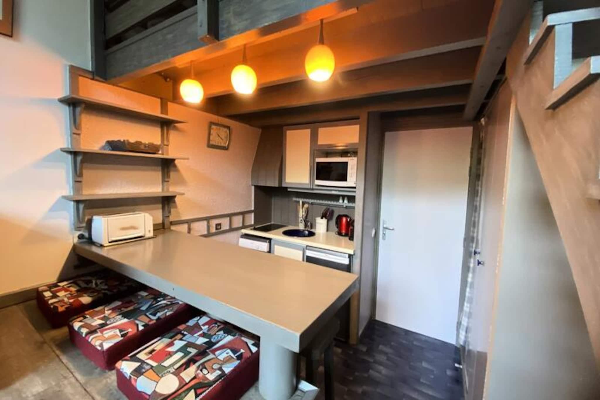 I hjertet af Méribels pulserende landsby tilbyder denne charmerende duplex-studiolejlighed et indbydende tilflugtssted for bjergelskere, der søger en blanding af eventyr og afslapning. Beliggende på en livlig gade med butikker og restauranter, ligger ejendommen kun få øjeblikke fra de berømte skråninger i Les Trois Vallées, der lover uforglemmelige dage med skiløb eller vandreture midt i et betagende alpint landskab. Fra den vestvendte terrasse kan du nyde den rolige udsigt over de omkringliggende bjerge og boliger - et perfekt sted at slappe af efter en aktiv dag udendørs. \n\nDenne studiolejlighed på 40 m² er designet til op til fire gæster og kombinerer komfort og praktisk anvendelighed. Stuen har en hyggelig dobbeltsovesofa, mens mezzaninen åbner ud til opholdsstuen med en rummelig dobbeltseng. Det veludstyrede køkken har keramisk kogeplade, mikrobølgeovn, opvaskemaskine og køleskab, hvilket gør det nemt at tilberede måltider og snacks. Et badeværelse med badekar og separat toilet sikrer bekvemmelighed, mens yderligere faciliteter såsom Wi-Fi, tv og et skiskab forbedrer dit ophold. \n\nMéribels centrale beliggenhed i Les Trois Vallées betyder, at du er perfekt placeret til at udforske et af verdens største skiområder. Ud over vintersport forvandles området til et sommerparadis med vandrestier, mountainbikeruter og maleriske picnicsteder. Selve landsbyen tilbyder en varm og imødekommende atmosfære med afterski-aktiviteter, lokale delikatesser og kulturelle begivenheder, der bidrager til dens charme. \n\nUanset om du søger spændende alpine eventyr eller fredfyldte bjergflugter, er dette studie det ideelle udgangspunkt for at skabe varige minder i de franske alper.