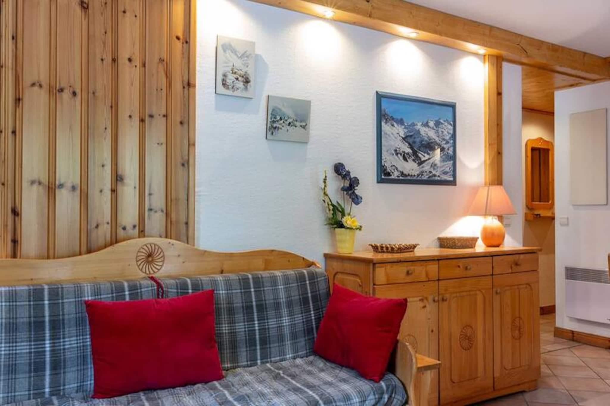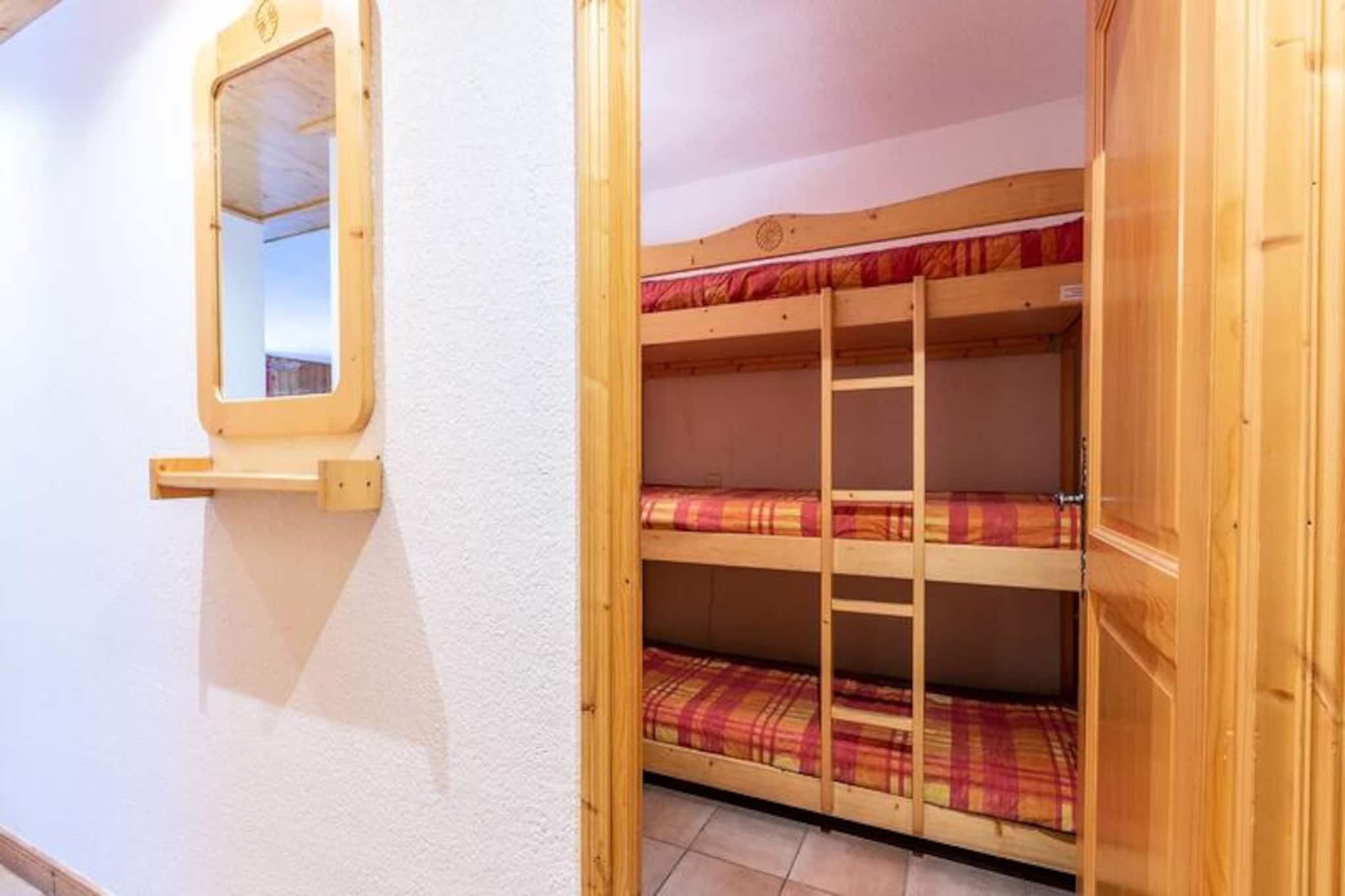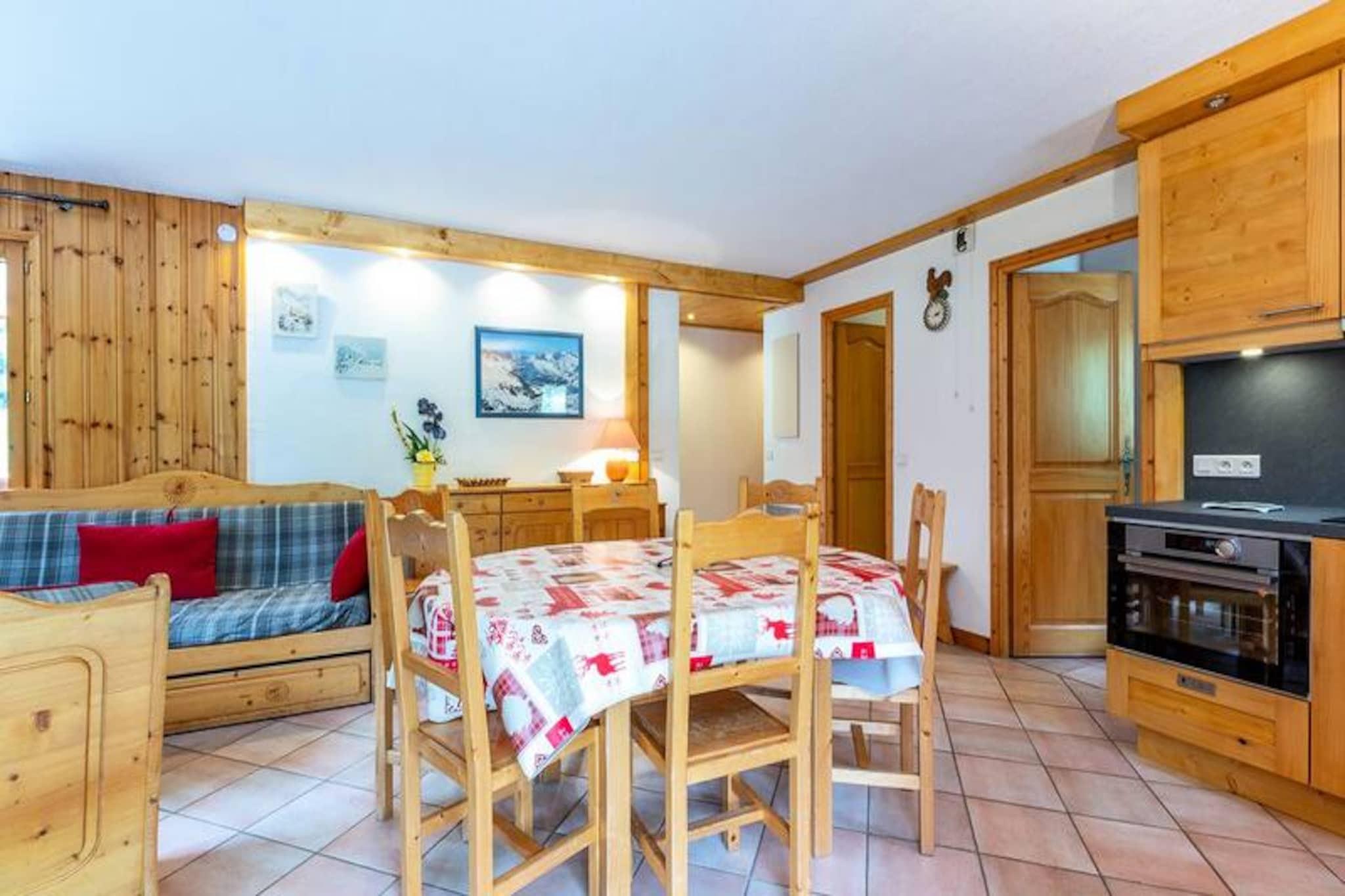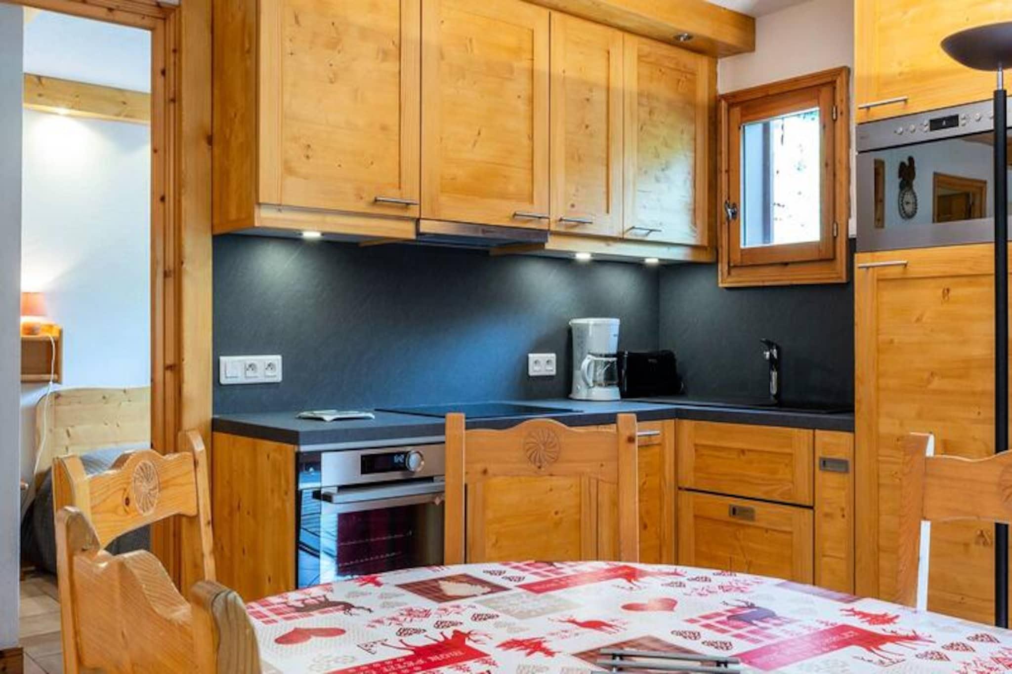 Midt i den fredfyldte charme i Méribel Mottarets Le Chatelet-kvarter tilbyder denne elegante lejlighed i Les Alpages Residence en perfekt alpin flugt. Med sit moderne design og varme atmosfære er det et indbydende tilflugtssted for familier og grupper, der søger både komfort og eventyr. De rolige omgivelser kombineret med nærheden til Tueda-søen og pisterne skaber ideelle rammer for en mindeværdig bjergferie. \n\nLejligheden har en rummelig stue med to sovesofaer og et tv, der fører ud til en stor balkon, hvor du kan nyde den friske bjergluft. Den kan prale af to soveværelser med dobbeltsenge, det ene med eget badeværelse og adgang til balkonen, samt et hyggeligt soveværelse med tre køjesenge. Det fuldt udstyrede køkken har keramisk kogeplade, ovn, Senseo-kaffemaskine, opvaskemaskine og køleskab, hvilket gør madlavning til en leg. Yderligere faciliteter inkluderer et andet badeværelse, et separat toilet og et praktisk skirum. Lejligheden er røgfri og kæledyrsfri, hvilket sikrer et rent og fredeligt miljø. Valgfrie tjenester såsom lagner, håndklæder og slutrengøring er tilgængelige for at forbedre dit ophold.\n\nResidensen ligger i gåafstand fra pisterne og skilifterne og tilbyder uovertruffen adgang til skiløb i verdensklasse i Méribel Mottaret. Butikker er bekvemt placeret kun 150 til 400 meter væk, mens den nærliggende Tueda-sø tilbyder betagende stier for vandrere, sneskoentusiaster og langrendsløbere. Det rolige og maleriske Le Chatelet-kvarter sikrer en afslappende atmosfære, perfekt til at slappe af efter en dag med alpine eventyr.\n\nUanset om du er her for at klatre gennem uberørte pister, udforske naturskønne stier eller blot sole dig i de franske alpers skønhed, er denne lejlighed din port til en uforglemmelig bjergoplevelse. Reserver dit ophold og skab dyrebare minder i dette fortryllende alpeparadis.