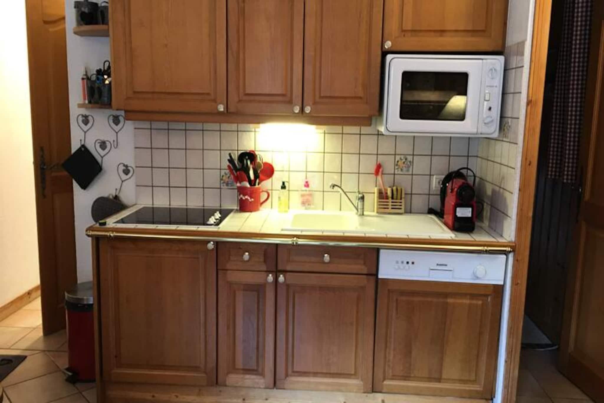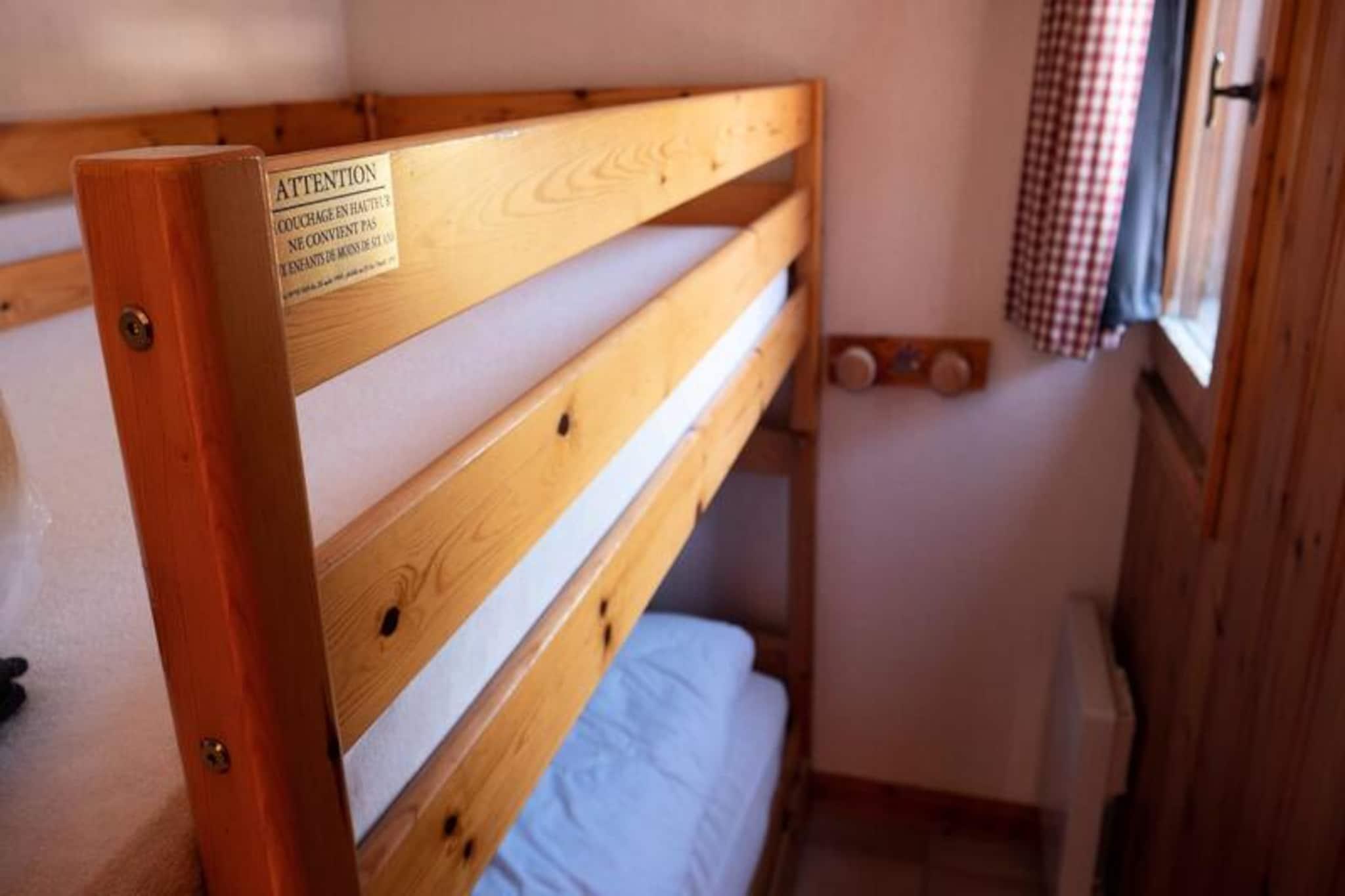 I de rolige omgivelser i Méribel Mottaret tilbyder denne charmerende lejlighed en perfekt blanding af komfort og alpint eventyr. Forestil dig at vågne op til den friske bjergluft og træde ud på din sydøstvendte balkon for at beundre den betagende udsigt over de snedækkede tinder. Uanset om du er her for at stå på ski, vandre på snesko eller blot for at slappe af, er denne ejendom et ideelt tilflugtssted for familier og par, der søger ro og bekvemmelighed i de franske alper.\n\nLejligheden er omhyggeligt designet med en hyggelig stue med sovesofa, tv og dvd-afspiller til afslappende aftener. Det største soveværelse kan prale af en komfortabel dobbeltseng, mens soveværelset med køjesenge er perfekt til børn eller ekstra gæster. Det fuldt renoverede brusebadeværelse tilføjer et strejf af moderne luksus, og køkkenet er udstyret med alt, hvad du behøver, herunder keramisk kogeplade, ovn, mikrobølgeovn, opvaskemaskine, køleskab, elkedel og Nespresso-kaffemaskine. Yderligere faciliteter såsom skiboks og garage sikrer et problemfrit ophold, mens valgfrie tjenester som sengetøj og rengøring kan arrangeres på forhånd.\n\nDenne ejendom ligger i Les Alpages-residensen og er en del af et fredeligt kompleks af hytter med nem adgang til pisterne og lifterne, kun en kort gåtur væk. Den nærliggende Tueda-sø tilbyder fantastiske stier for vandrere og langrendsløbere, hvilket gør den til en destination året rundt for naturelskere. Butikker og spisesteder er bekvemt placeret inden for 150 til 400 meter og tilbyder alt, hvad du behøver for et behageligt ophold.\n\nUanset om du udforsker de uberørte løjper i Le Châtelet eller nyder verdensklasse skiløb i Méribel Mottaret, lover denne lejlighed en uforglemmelig alpin flugt. Book dit ophold og oplev magien i de franske alper på første hånd.