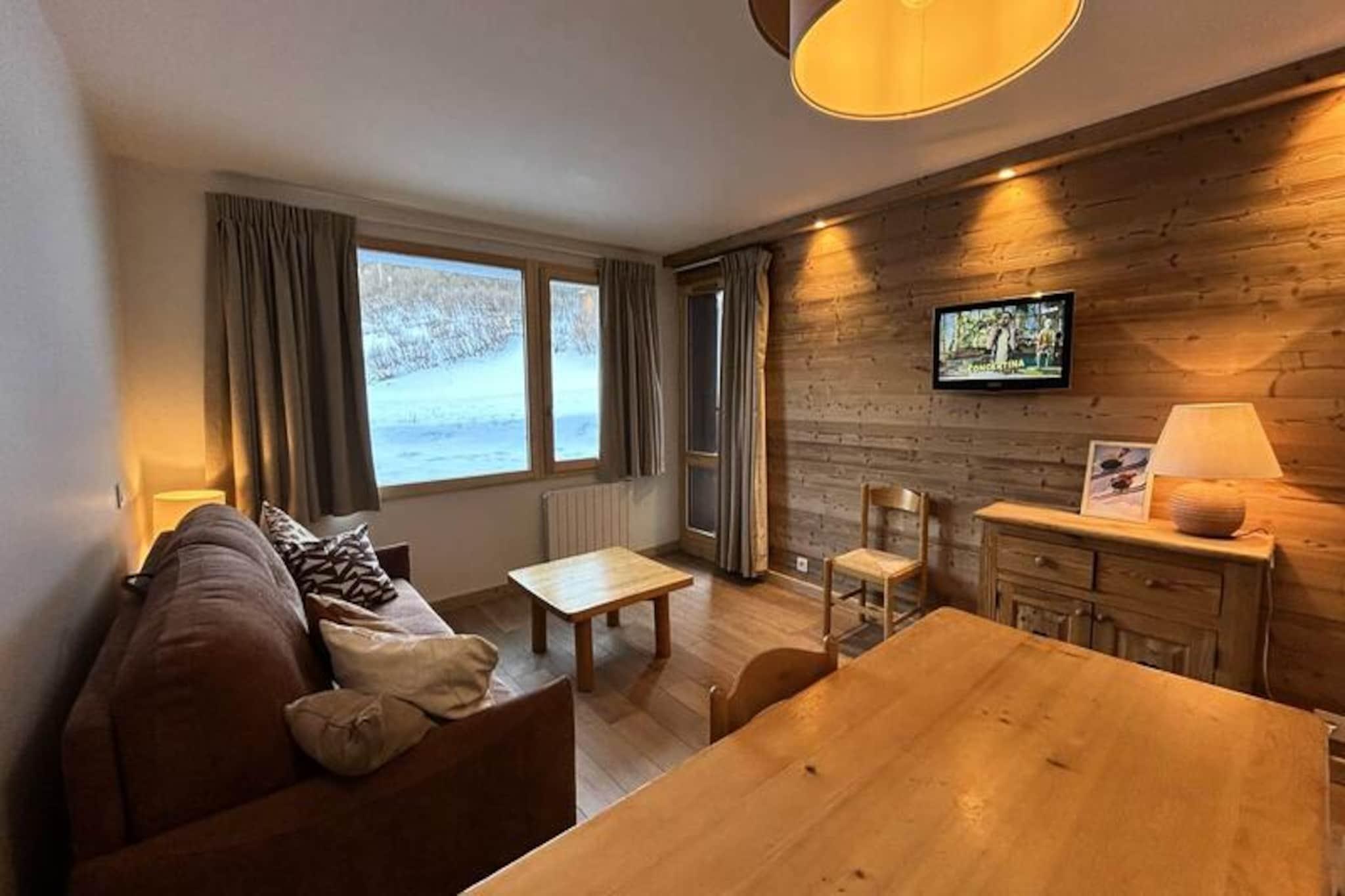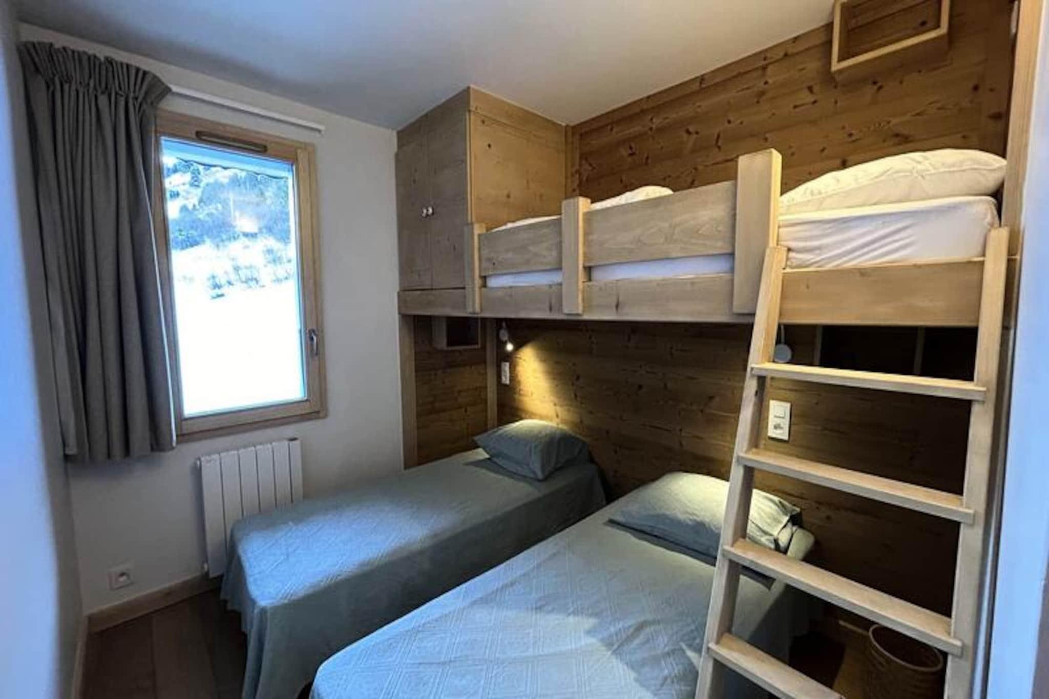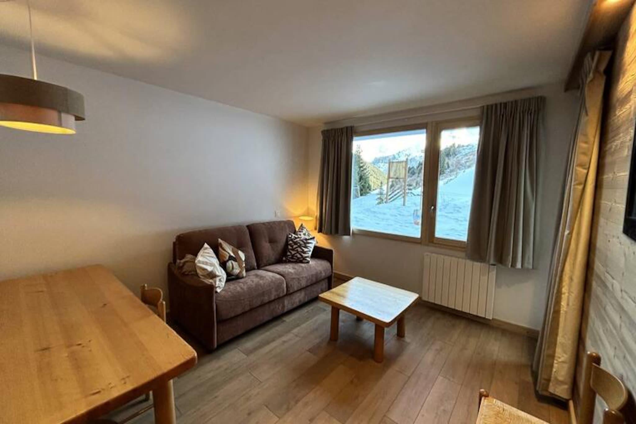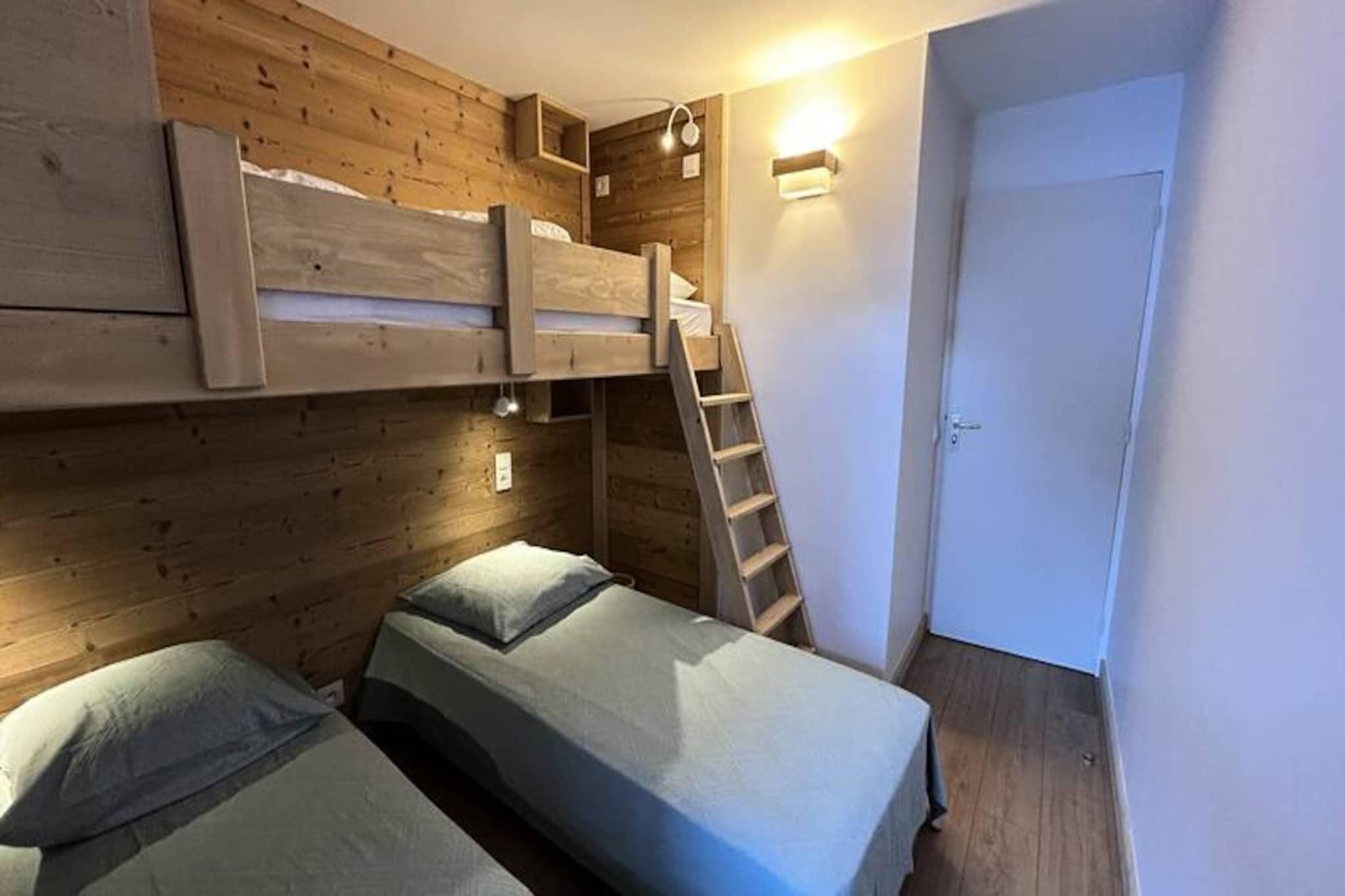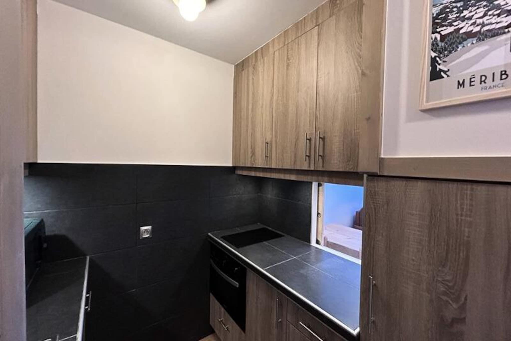 Højt over den maleriske Méribel Mottaret tilbyder denne charmerende alpine lejlighed et hyggeligt tilflugtssted for dem, der søger den perfekte skiferie. Forestil dig morgener fyldt med frisk bjergluft og aftener tilbragt med at kigge på de snedækkede tinder fra din private terrasse. Beliggende i hjertet af Laitelet-distriktet kombinerer denne bolig bjergenes ro med bekvemmeligheden ved at være kun få skridt fra pisterne og lokale faciliteter. \n\nLejligheden er omhyggeligt designet til at rumme op til seks gæster. Stuen har en komfortabel dobbelt sovesofa og et tv til afslapning efter en dag på pisterne. Soveværelset har to enkeltsenge, der kan sættes sammen, og en køjeseng, hvilket gør den ideel til familier eller små grupper. Det fuldt udstyrede køkken kan prale af keramisk kogeplade, mikrobølgeovn, opvaskemaskine, ovn, køleskab, elkedel, brødrister og en Nespresso Essenza-kaffemaskine, så du har alt, hvad du behøver for at tilberede solide måltider. Et badeværelse med separat toilet øger bekvemmeligheden, mens et skiskab i boligen holder dit udstyr sikkert. Bemærk venligst, at dette er en ikke-ryger ejendom, og kæledyr er ikke tilladt.\n\nLe Nantchu-residensen er perfekt beliggende for skientusiaster og tilbyder direkte adgang til pisterne og nærhed til butikker, restauranter og barer. Den gratis Méribus-shuttlebus eller Les Chalets-svævebanen giver nem adgang til centrum af Mottaret, hvor du kan udforske mere af, hvad dette pulserende feriested har at byde på.\n\nUanset om du er her for at grave dig gennem uberørt sne eller blot nyde den rolige alpine atmosfære, er denne lejlighed din port til uforglemmelige bjergeventyr. Book dit ophold og oplev magien i Méribel Mottaret på første hånd.