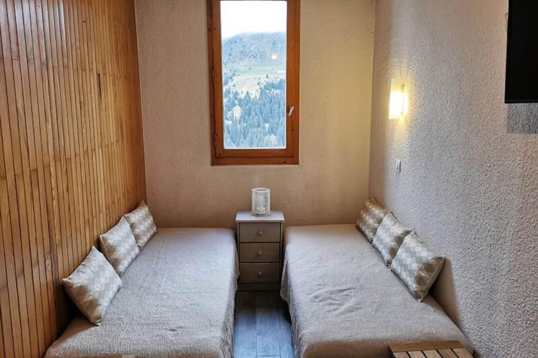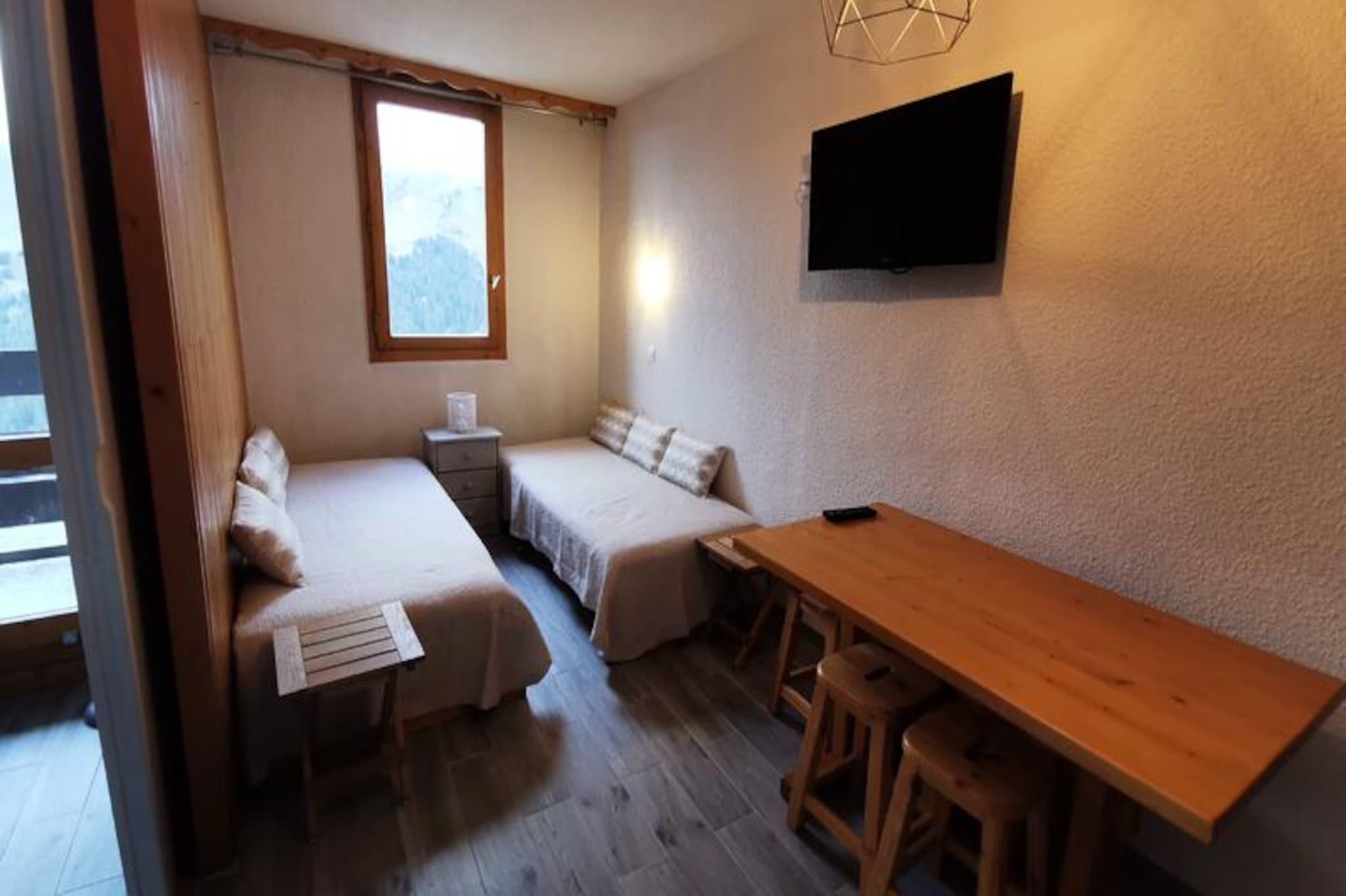 Højt over de fortryllende pister i Méribel Mottaret tilbyder denne indbydende lejlighed et hyggeligt tilflugtssted for både skiløbere og naturelskere. Med en betagende udsigt fra balkonen og direkte adgang til pisterne er hvert øjeblik her fyldt med alpin charme. Uanset om du er her for at grave dig gennem frisk puddersne eller udforske de fredfyldte stier i de franske alper, placerer denne ejendom dig i hjertet af det hele. Laitelet-distriktets førsteklasses beliggenhed sikrer, at eventyr og bekvemmelighed altid er inden for rækkevidde. Indenfor er lejligheden omhyggeligt designet til at tilbyde komfort og funktionalitet. Den delbare stue har en sovesofa og to enkeltsenge, hvilket gør den ideel til familier eller små grupper. Det åbne køkken er udstyret med moderne apparater, herunder induktionskogeplade, ovn, køleskab og Nespresso-kaffemaskine, perfekt til at tilberede solide måltider efter en dag på pisterne. Et separat badeværelse og toilet bidrager til bekvemmeligheden, mens skiboksen og elevatoren gør dit ophold problemfrit. Yderligere tjenester såsom sengetøj, håndklæder og slutrengøring kan arrangeres, hvilket sikrer en problemfri oplevelse. Ud over lejligheden tilbyder Hameau du Mottaret-kvarteret alt, hvad du behøver for et mindeværdigt ophold. Fra minimarkeder og sportsbutikker til charmerende restauranter og livlige barer, imødekommer området ethvert behov. Den gratis Chalets-svævebane forbinder dig ubesværet til centrum af Méribel Mottaret, hvor endnu flere faciliteter og attraktioner venter. Uanset om du besøger stedet om vinteren for at stå på ski eller om sommeren for at vandre og mountainbike, er denne ejendom din port til Alpernes vidundere. Vælg denne lejlighed for dens uovertrufne beliggenhed, gennemtænkte faciliteter og løftet om uforglemmelige alpine eventyr.