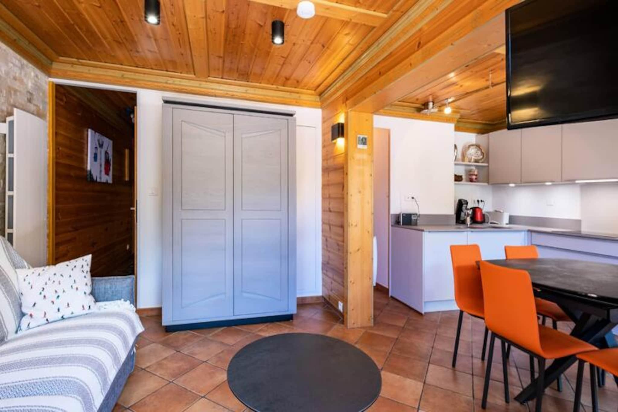 I Méribel Mottarets fredfyldte charme tilbyder denne indbydende lejlighed et hyggeligt tilflugtssted for familier og venner, der søger den perfekte alpine ferie. Forestil dig at vågne op til den friske bjergluft og træde ud på din vestvendte balkon for at nyde den rolige udsigt over de omkringliggende tinder. Beliggende i den prestigefyldte Le Pralin-residens kombinerer denne ejendom komfort med bekvemmelighed og sikrer et mindeværdigt ophold i hjertet af de franske alper. Uanset om du er her for skiløb eller sommervandreture, gør lejlighedens førsteklasses beliggenhed ved foden af ??pisterne den til et ideelt valg for friluftsentusiaster. Indenfor er lejligheden omhyggeligt designet til at rumme op til seks gæster. Stuen har en komfortabel sovesofa og et tv, hvilket skaber et indbydende rum at slappe af efter en dag med udforskning. Soveværelset har en dobbeltseng og en køjeseng, perfekt til familier, der rejser med børn. Det åbne køkken er fuldt udstyret med moderne apparater, herunder keramisk kogeplade, kombiovn, opvaskemaskine og Nespresso-kaffemaskine, hvilket gør det nemt at tilberede måltider og snacks. Yderligere faciliteter såsom et skiskab, adgang til elevator og valgfrie tjenester som sengetøj og rengøring sikrer en problemfri oplevelse. Beliggende overfor børnehaven og kun 300 meter fra Châtelet indkøbscenter, tilbyder boligen nem adgang til vigtige faciliteter. Det pulserende feriestedscenter ligger i nærheden og tilbyder et udvalg af spise- og underholdningsmuligheder. Om sommeren forvandles Méribel til et paradis for vandrere og naturelskere med stier, der fører til betagende udsigter og alpine enge. Reserver en parkeringsplads for ekstra bekvemmelighed og nyd problemfri adgang til alt, hvad området har at byde på. Uanset om du er her for at slentre gennem uberørte skråninger om vinteren eller udforske frodige landskaber om sommeren, tilbyder denne lejlighed en perfekt blanding af afslapning og eventyr. Med det prestigefyldte Méribel-mærke lover den et uforglemmeligt ophold i et af de mest maleriske hjørner af Alperne.