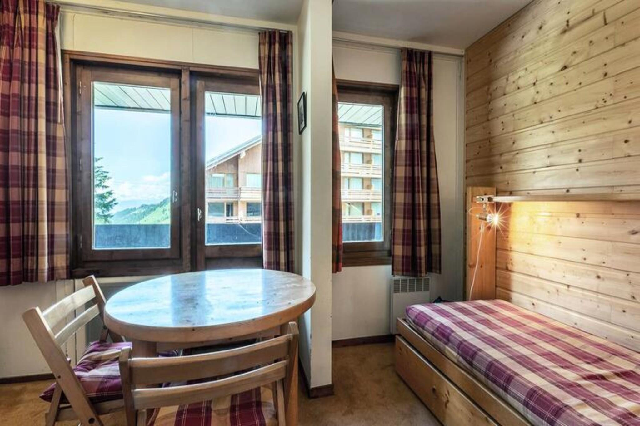 På kanten af ??de maleriske skråninger i Méribel Mottaret tilbyder dette charmerende studie et hyggeligt tilflugtssted for både skientusiaster og bjergentusiaster. Forestil dig at vågne op til den friske alpine luft, træde ud på din private balkon og være kun få øjeblikke væk fra de uberørte pister, der definerer dette verdensklasses feriested. Uanset om du er her for spændende vintereventyr eller rolige sommervandreture, placerer denne ejendom dig i hjertet af det hele. \n\nIndenfor er studiet omhyggeligt designet til at maksimere komfort og funktionalitet. Opholdsstuen har en sovesofa og en enkeltseng, perfekt til at rumme op til tre gæster. Et veludstyret køkken venter, komplet med keramisk kogeplade, kombiovn, køleskab, elkedel, brødrister og kaffemaskine - ideelt til at tilberede solide måltider efter en aktiv dag. Brusebadet, der blev renoveret i 2016, tilføjer et strejf af moderne bekvemmelighed, mens skiboksen sikrer problemfri opbevaring af dit udstyr. Dette studio er røgfrit og kæledyrsfrit, og garanterer et rent og roligt miljø under dit ophold.\n\nResidensen La Grande Rosière, der ligger nær centrum af Mottaret, tilbyder direkte adgang til pisterne og ligger kun en kort gåtur fra feriestedets pulserende centrum. Her finder du ESF-skiskolen, turistkontoret og en række butikker, barer og restauranter. Uanset om du søger afterskiing eller lokale delikatesser, er alt hvad du behøver inden for rækkevidde.\n\nVælg dette dejlige studio til din næste alpine ferie og fordyb dig i den uovertrufne skønhed og spænding i Méribel Mottaret. Med sin førsteklasses beliggenhed og imødekommende faciliteter er det den perfekte base for at skabe uforglemmelige bjergminder.