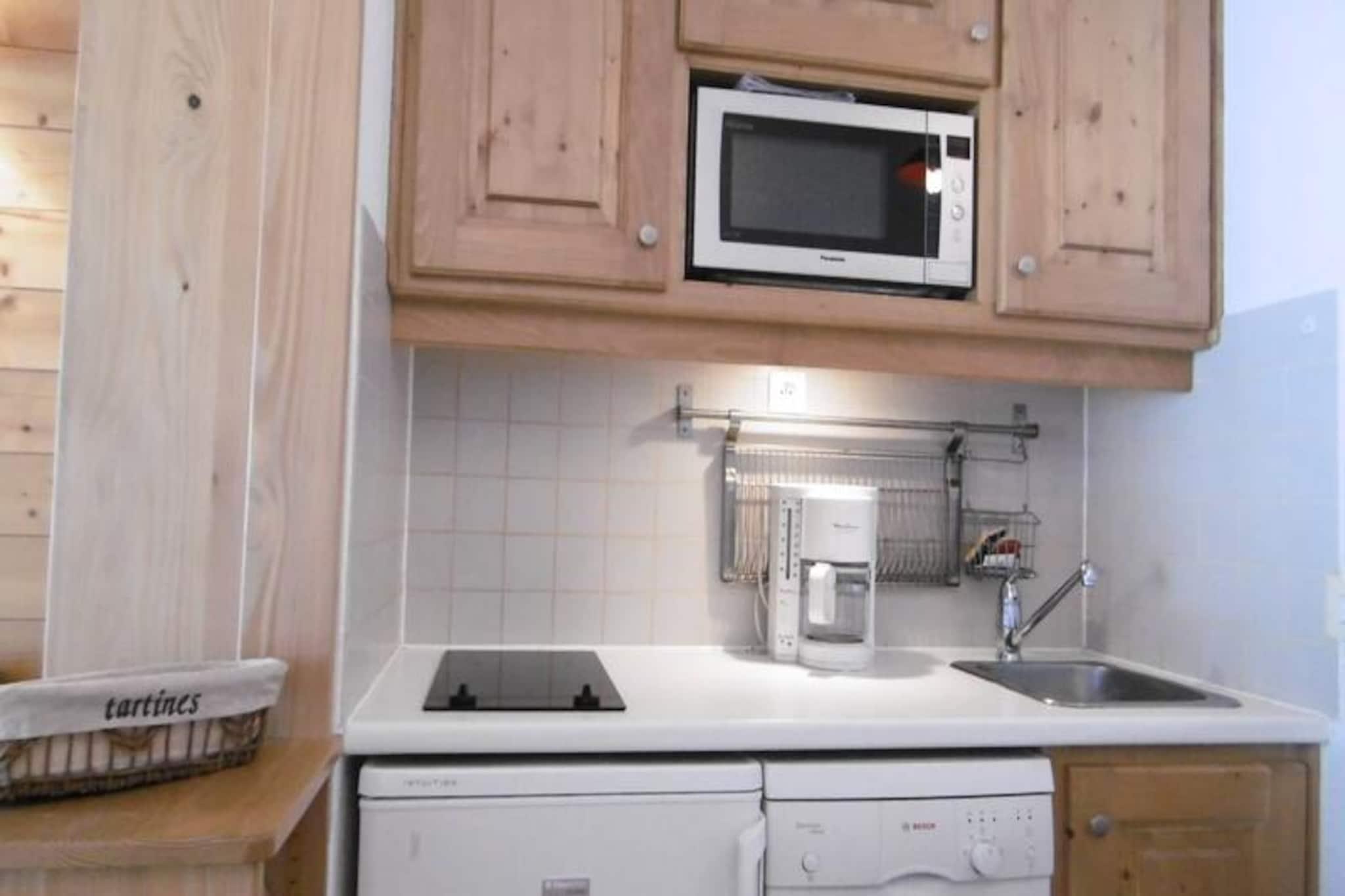 Højt over den maleriske dal Méribel Mottaret tilbyder denne charmerende alpine lejlighed et hyggeligt tilflugtssted for familier og grupper, der søger en mindeværdig bjergferie. Med sin førsteklasses beliggenhed på 11. sal i Le Pralin-residensen kan du nyde en betagende udsigt og direkte adgang til pisterne, hvilket gør den til et ideelt valg for både skientusiaster og naturelskere. Den rolige atmosfære i dette moderne boligområde giver den perfekte balance mellem ro og bekvemmelighed. \n\nLejligheden har komfortabel plads til op til seks gæster og har en stue med to sovesofaer, en udtræksseng og en vestvendt balkon, hvor du kan slappe af efter en dag med eventyr. Soveværelset i hytten med køjesenge og et soveværelse med dobbeltseng og eget badeværelse sikrer afslappende nætter for alle. Det fuldt udstyrede tekøkken inkluderer keramisk kogeplade, kombiovn, opvaskemaskine og mere, så du nemt kan tilberede solide måltider. Yderligere faciliteter såsom skiboks, elevator og valgfrie tjenester som sengetøj og slutrengøring sikrer et problemfrit ophold. \n\nLe Pralin-residensen er perfekt beliggende ved foden af ??pisterne, lige overfor børnehaven og kun få skridt fra Châtelet-indkøbscentret. Feriestedets centrum med dets livlige butikker og spisemuligheder ligger kun 300 meter væk og tilbyder alt, hvad du behøver, inden for rækkevidde. Om sommeren forvandles området til et paradis for vandrere og friluftsentusiaster med stier og betagende udsigter, der venter på at blive udforsket. \n\nUanset om du er her for at grave dig gennem uberørt sne eller nyde den alpine skønhed, er denne lejlighed den ultimative base for at skabe uforglemmelige minder i hjertet af de franske alper.