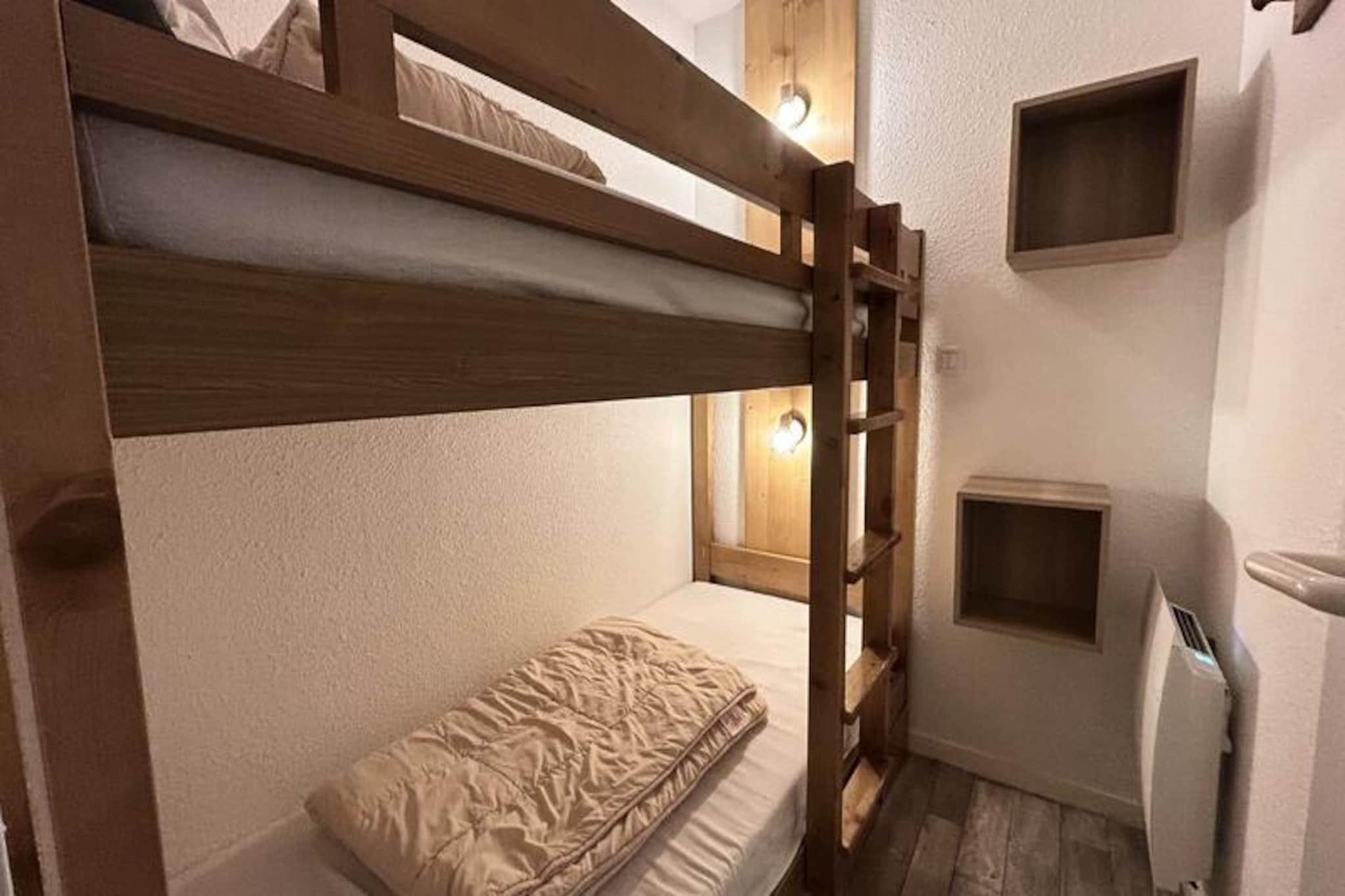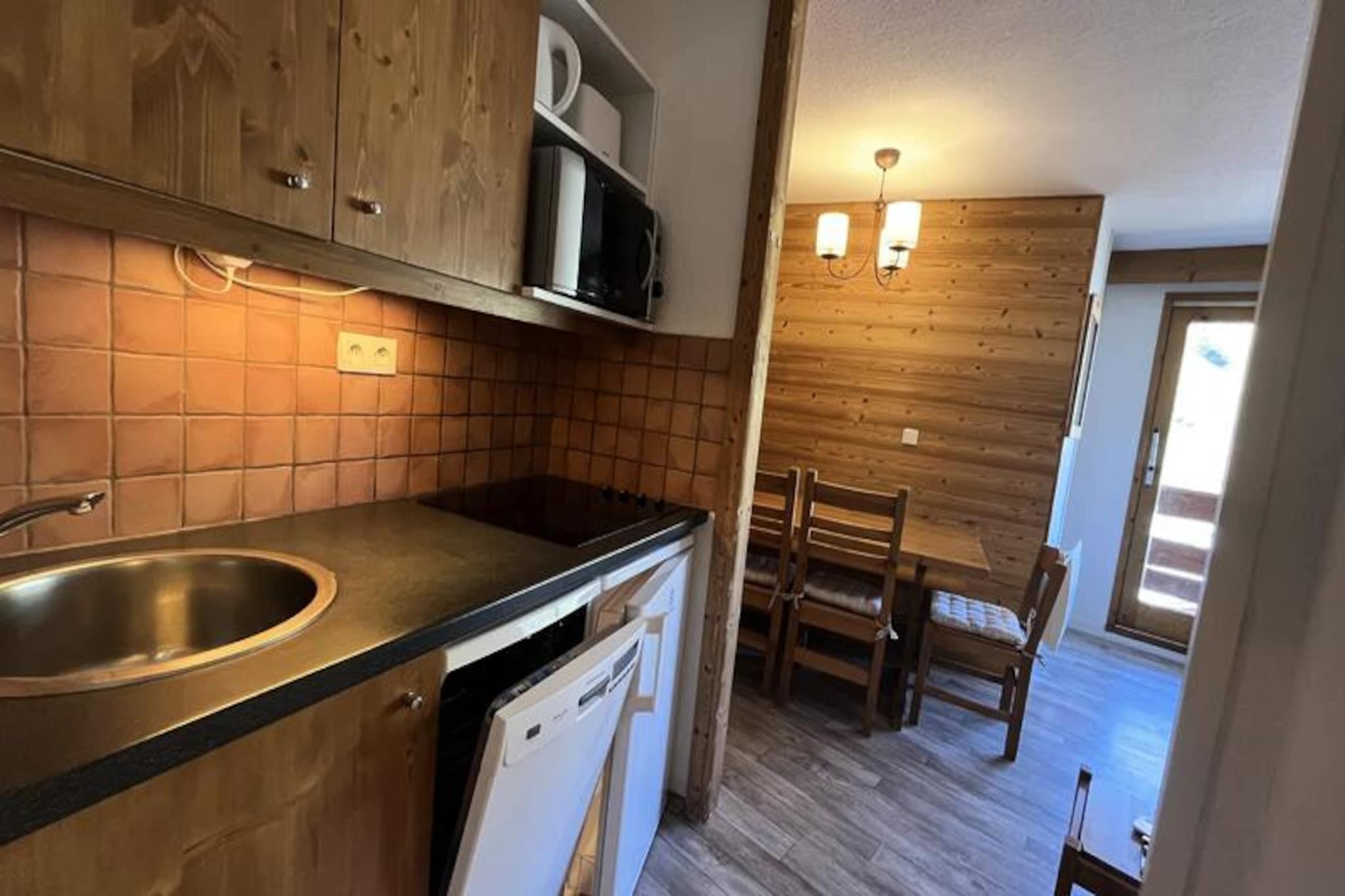 Højt over de maleriske skråninger i Méribel Mottaret tilbyder denne indbydende lejlighed et varmt og imødekommende tilflugtssted for familier eller små grupper, der søger den perfekte alpine ferie. Forestil dig aftener med udsigt fra din vestvendte stue, hvor uhindret udsigt over Tougnète-massivet og det livlige feriestedscentrum skaber en magisk kulisse for din ferie. Uanset om du er her for at stå på ski, slappe af eller udforske, kombinerer denne bolig på ottende sal komfort med uovertruffen adgang til pisterne lige uden for døren. \n\nLejligheden er designet til at rumme op til fem gæster og har et hyggeligt soveværelse med køjesenge, et privat dobbeltværelse omgivet af en skydedør og en sovesofa i stuen for ekstra fleksibilitet. Det åbne tekøkken er fuldt udstyret med moderne apparater, herunder opvaskemaskine, køleskab, mikrobølgeovn og brødrister, hvilket gør det nemt at tilberede måltider efter en dag med eventyr. Et separat toilet og et badeværelse med badekar sikrer bekvemmelighed, mens den lyse spiseplads inviterer dig til at dele måltider og øjeblikke sammen. Bemærk venligst, at lejligheden er røgfri, og kæledyr er ikke tilladt, hvilket sikrer et rent og fredeligt miljø for alle gæster.\n\nLe Pralin-residensen er ideelt beliggende ved foden af ??pisterne, lige overfor børnehaven og kun en kort gåtur fra Châtelet-indkøbscentret. Med butikker og feriestedets centrum kun 300 meter væk, er alt hvad du behøver inden for rækkevidde. For ekstra bekvemmelighed kan parkeringspladser reserveres på forhånd, hvilket gør dit ophold problemfrit.\n\nUanset om du er tiltrukket af de uberørte snedækkede stier om vinteren eller de fredfyldte bjerglandskaber om sommeren, tilbyder denne lejlighed en perfekt base for at skabe uforglemmelige minder i hjertet af de franske alper.