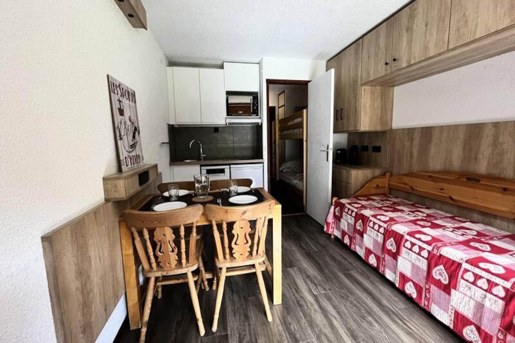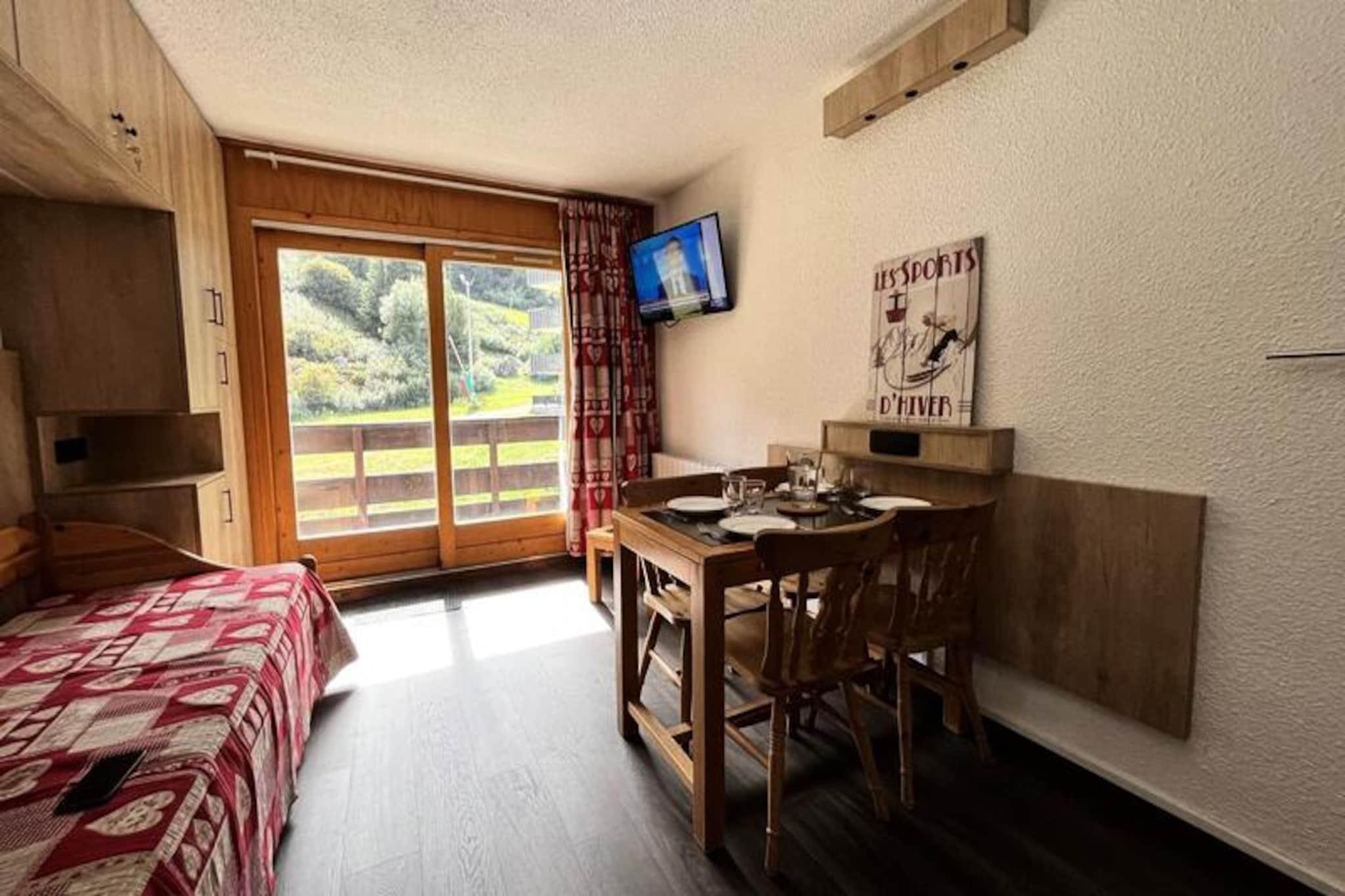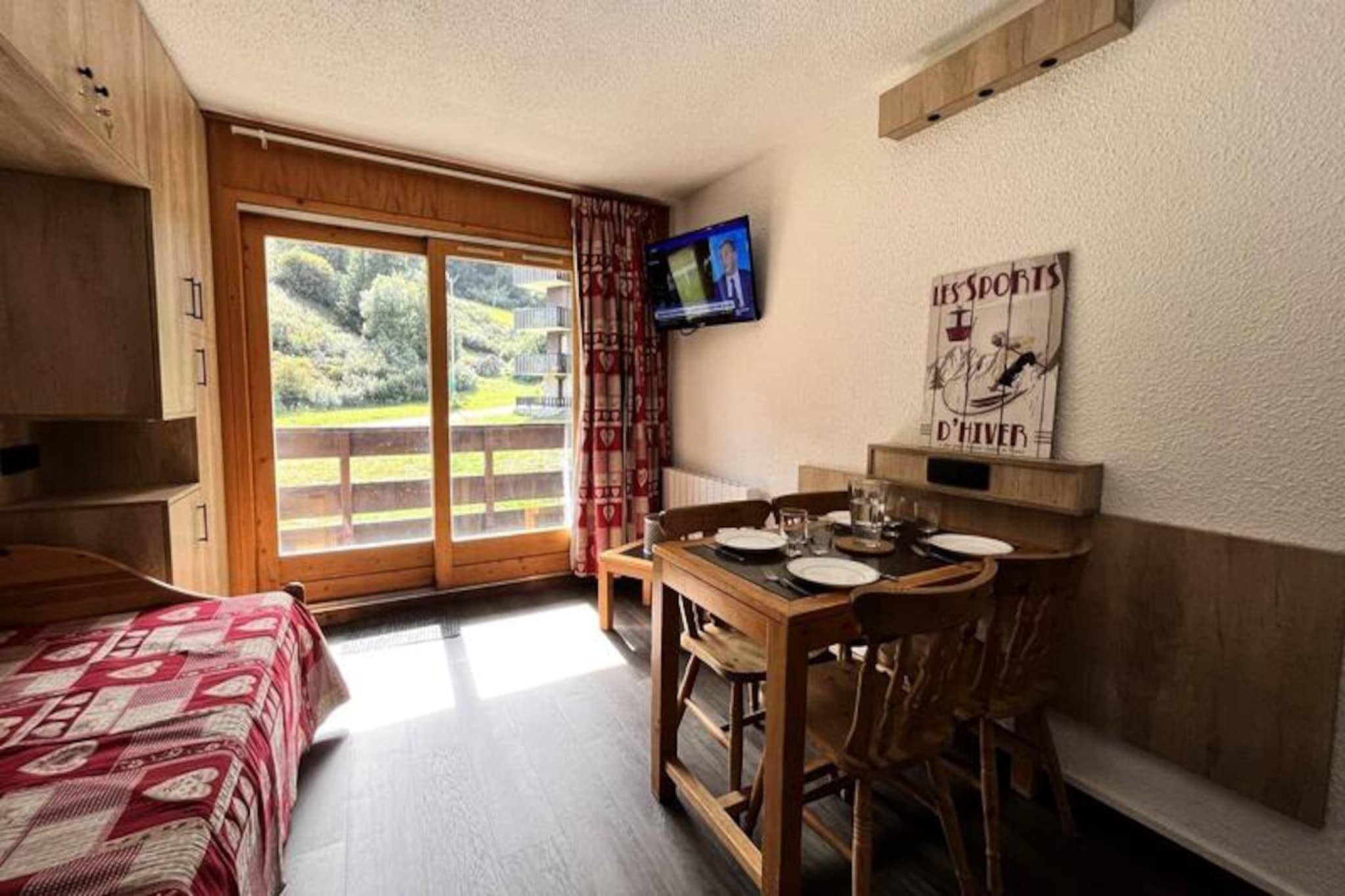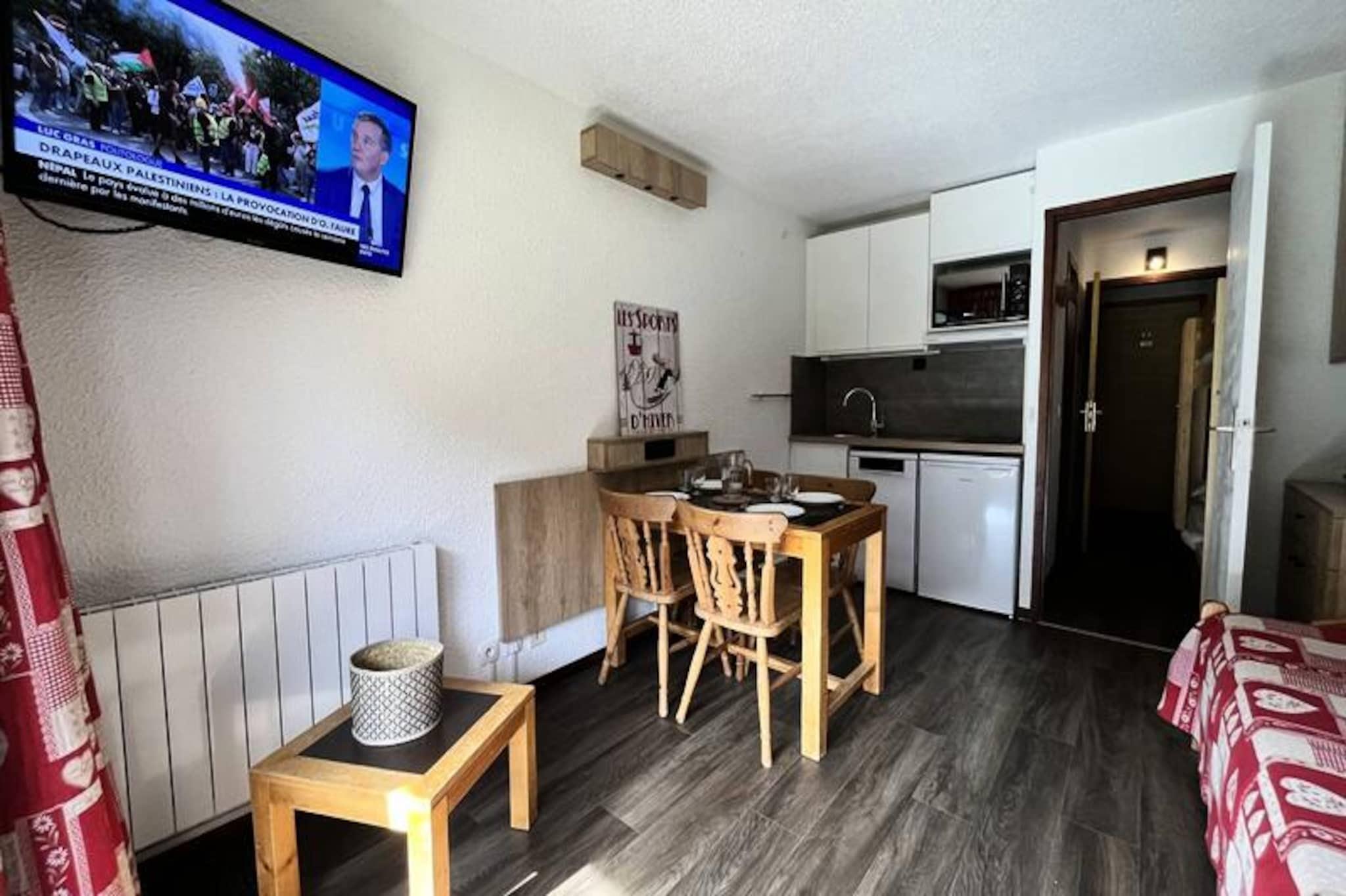 Højt over de fredfyldte skråninger i Méribel Mottaret tilbyder denne charmerende lejlighed i Lac Blanc-residensen en perfekt blanding af bekvemmelighed og alpin charme. Forestil dig at vågne op til den friske bjergluft og træde ud på din vestvendte balkon, hvor solen går ned over de majestætiske tinder i skiområdet Les 3 Vallées. Uanset om du er her for spændende skieventyr eller rolige sommervandreture, er dette hyggelige tilflugtssted designet til at gøre dit ophold uforglemmeligt. \n\nIndvendigt er lejligheden lys og funktionel med en stue med sovesofa, udtræksseng og et fjernsyn til afslappende aftener. Entréhallen indeholder et sæt køjesenge, ideelt til familier eller små grupper. Tekøkkenet er fuldt udstyret med keramisk kogeplade, ovn, opvaskemaskine og køleskab, hvilket gør det nemt at tilberede måltider efter en dag på pisterne. Yderligere faciliteter inkluderer et skirum, elevator og valgfrie tjenester såsom sengetøj, håndklæder og babyudstyr for ekstra bekvemmelighed. \n\nLac Blanc-residensen er perfekt beliggende direkte på pisterne og tilbyder ski-in/ski-out-adgang til det berømte område Les 3 Vallées. I nærheden finder du Hameau du Mottaret-kvarteret med dets minimarked, sportsbutikker, restauranter og barer. Den gratis Chalets-svævebane forbinder dig ubesværet til hjertet af Méribel Mottaret, hvilket sikrer, at du aldrig er langt fra begivenhedernes centrum. \n\nUanset om du søger spændende vintersport eller fredelige sommerferier, er denne lejlighed den ideelle base for at udforske de franske alpers skønhed. Lad bjergenes magi skabe minder, der vil vare hele livet.