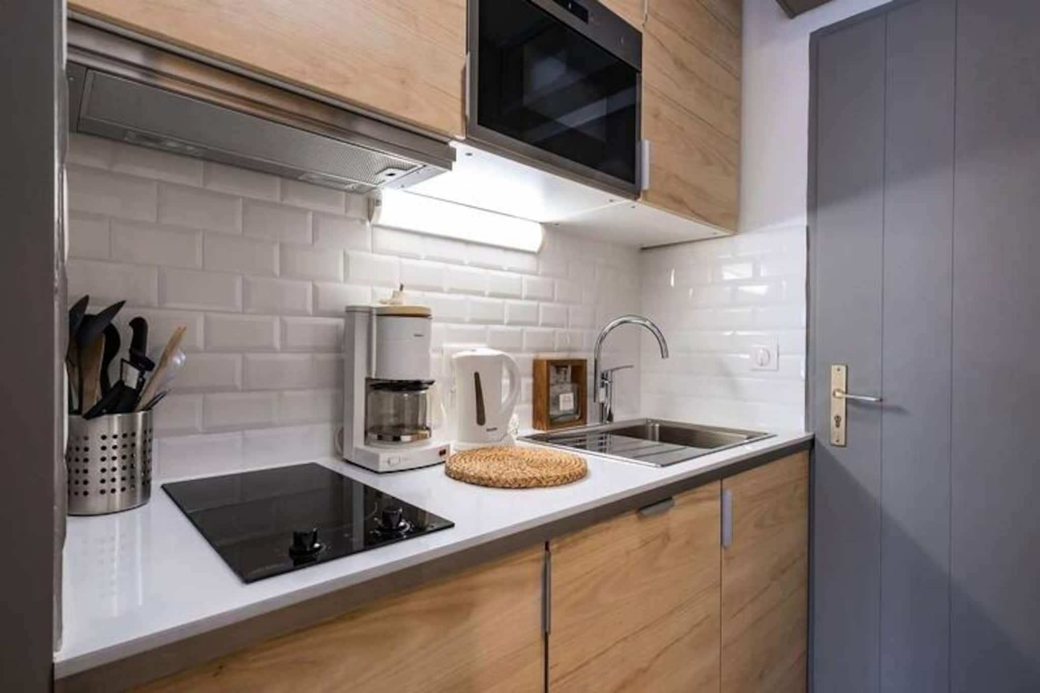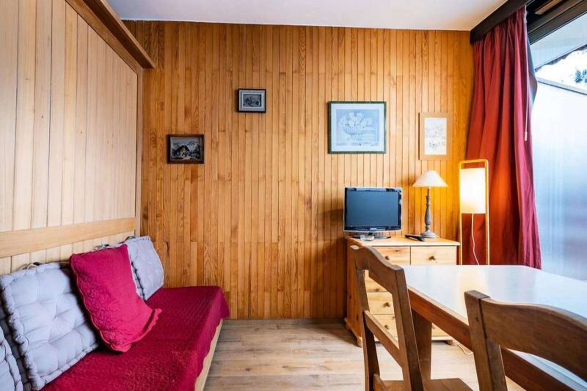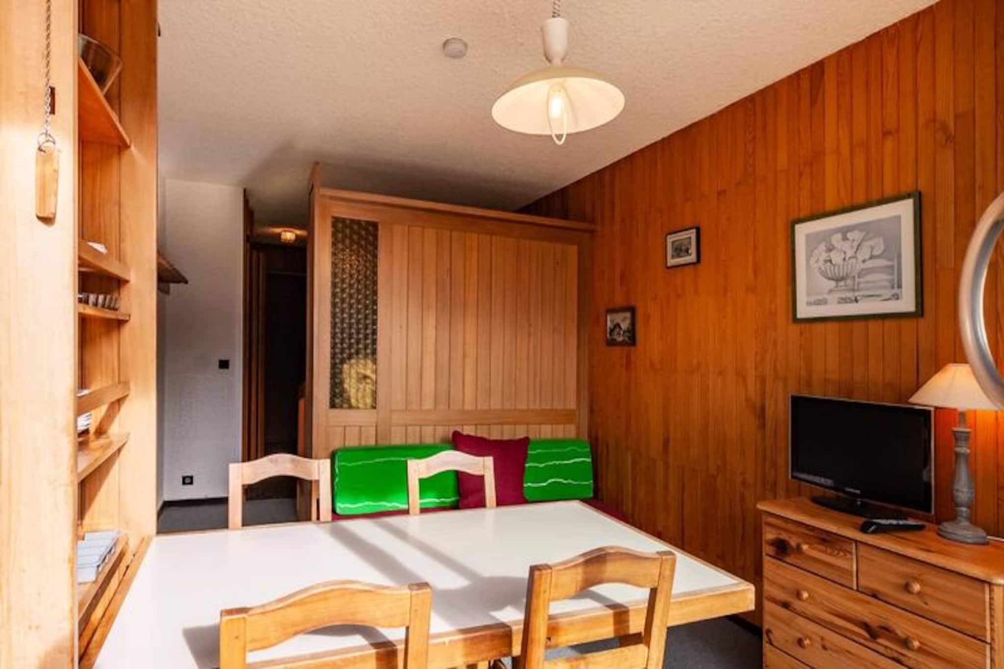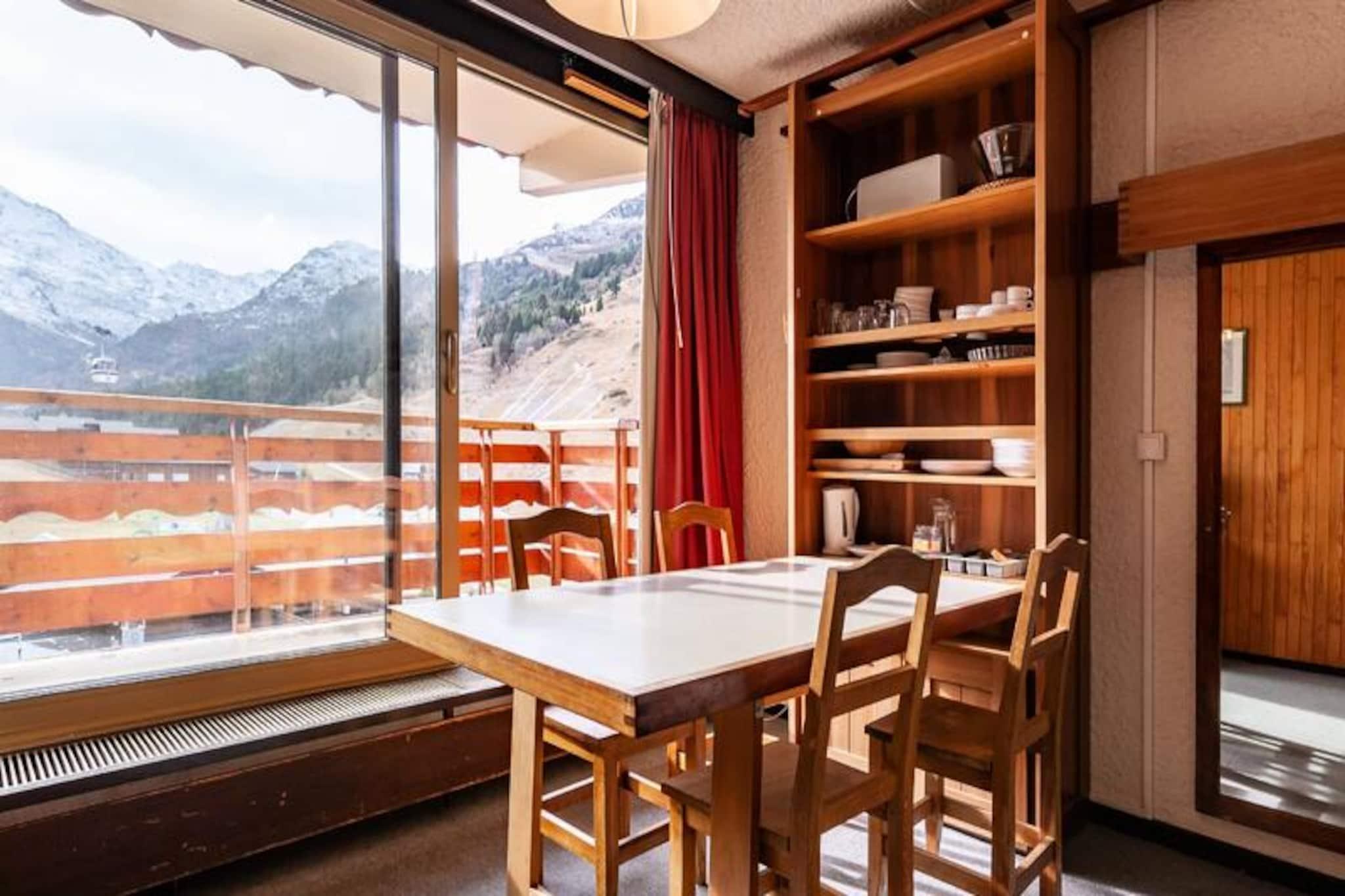 I hjertet af Méribel Mottaret tilbyder denne charmerende lejlighed på 5. sal i Le Ruitor-residensen et hyggeligt alpint tilflugtssted med uovertruffen bekvemmelighed. Forestil dig at vågne op til den friske bjergluft, træde ud på din private balkon og nyde den betagende udsigt over de omkringliggende tinder. Dette er din port til en af ??de mest berømte skisportssteder i de franske alper, hvor eventyr og afslapning smelter sammen. \n\nLejligheden er omhyggeligt designet til at maksimere komfort og funktionalitet. Stuen har en dobbeltseng, der kan skydes ind under en skillevæg, et sæt køjesenge og et fjernsyn, hvilket skaber et alsidigt rum til op til fire gæster. Tekøkkenet er fuldt udstyret med komfur, ovn, Nespresso-kaffemaskine, opvaskemaskine og køleskab, hvilket gør det nemt at tilberede måltider efter en dag på pisterne. Et badeværelse med toilet og adgang til skiboks og elevator fuldender faciliteterne og sikrer et problemfrit ophold. Bemærk venligst, at dette er en ikke-ryger ejendom, og kæledyr er ikke tilladt.\n\nTræd udenfor, og du vil befinder dig i Méribel Mottarets pulserende centrum. ESF-skiskolen, butikker, barer, restauranter og endda en biograf ligger alle kun få øjeblikke væk. Uanset om du er en erfaren skiløber eller nybegynder, gør nærheden til pisterne og skilifterne dette til en uovertruffen beliggenhed for vintersportsentusiaster. Om sommeren forvandles området til et paradis for vandrere og naturelskere med endeløse stier og fantastiske alpine landskaber.\n\nMed yderligere tjenester som leje af lagner og håndklæder, slutrengøring og babyudstyr tilgængeligt efter anmodning, vil dit ophold være lige så behageligt, som det er mindeværdigt. Uanset om du er her for spændingen ved skiløb eller roen i bjergene, er denne lejlighed den perfekte base for dit alpine eventyr.