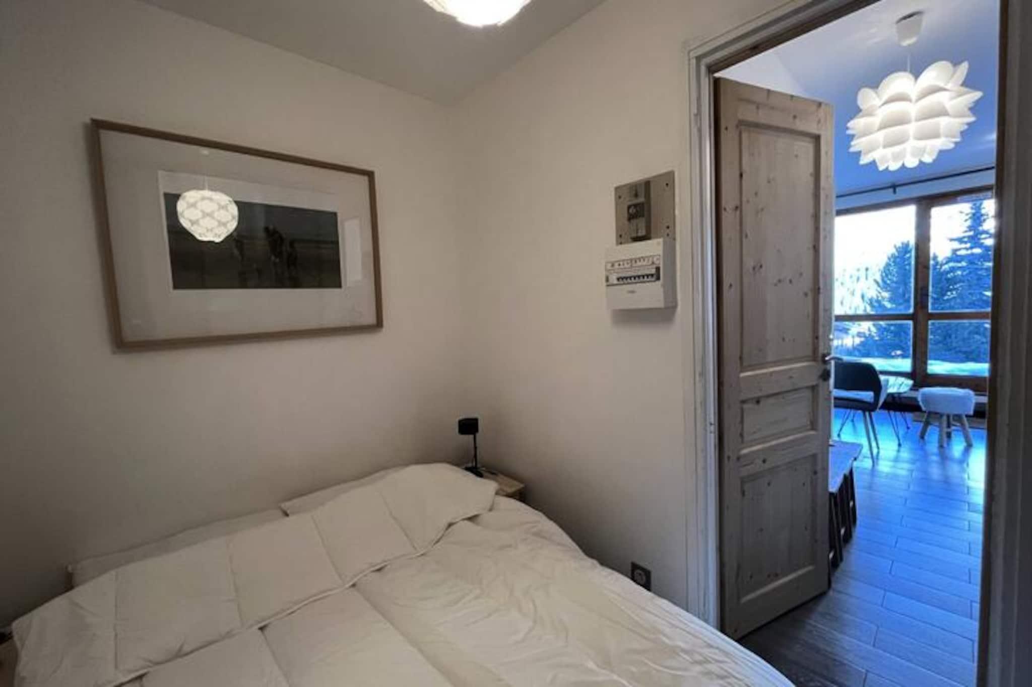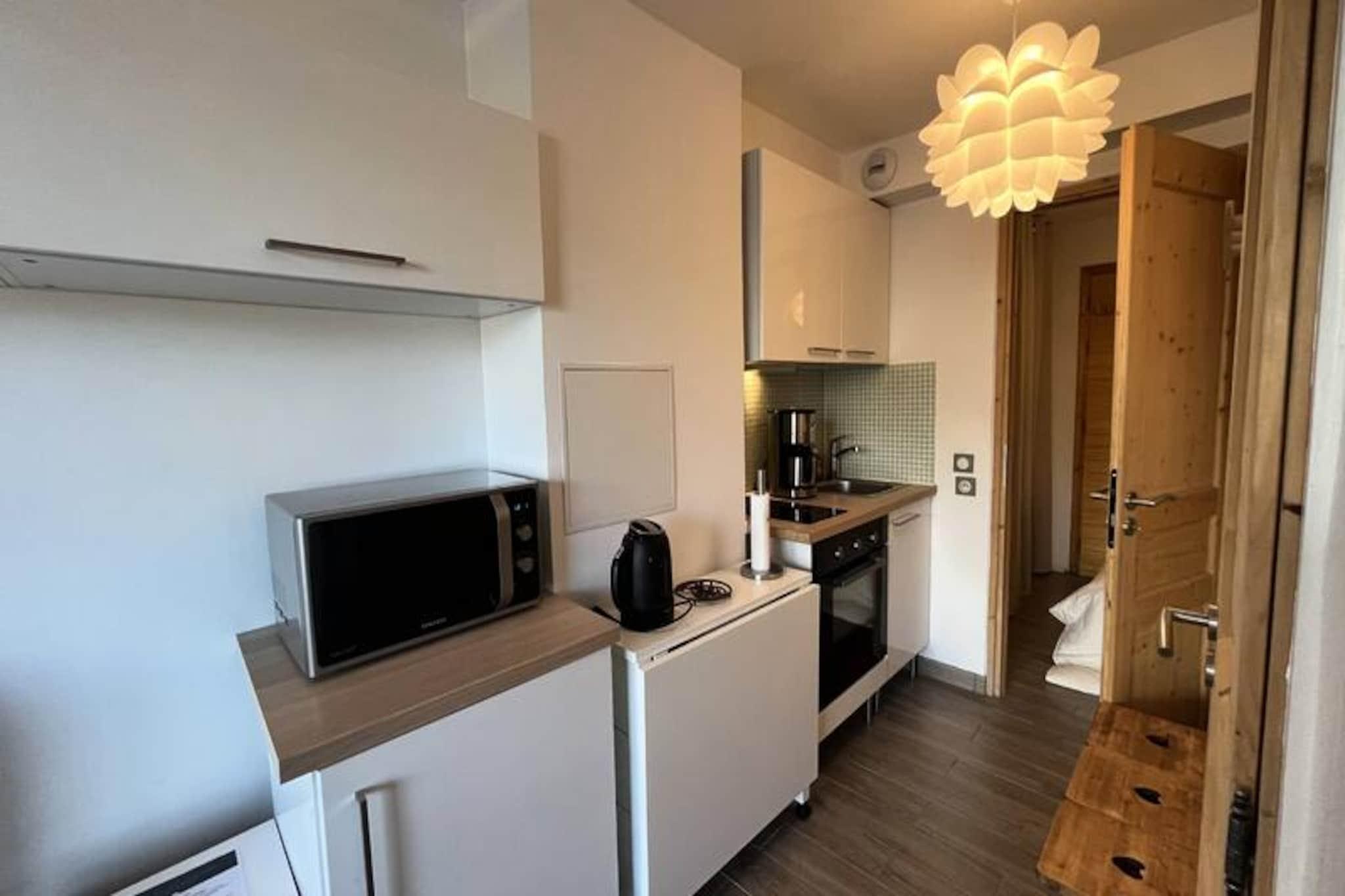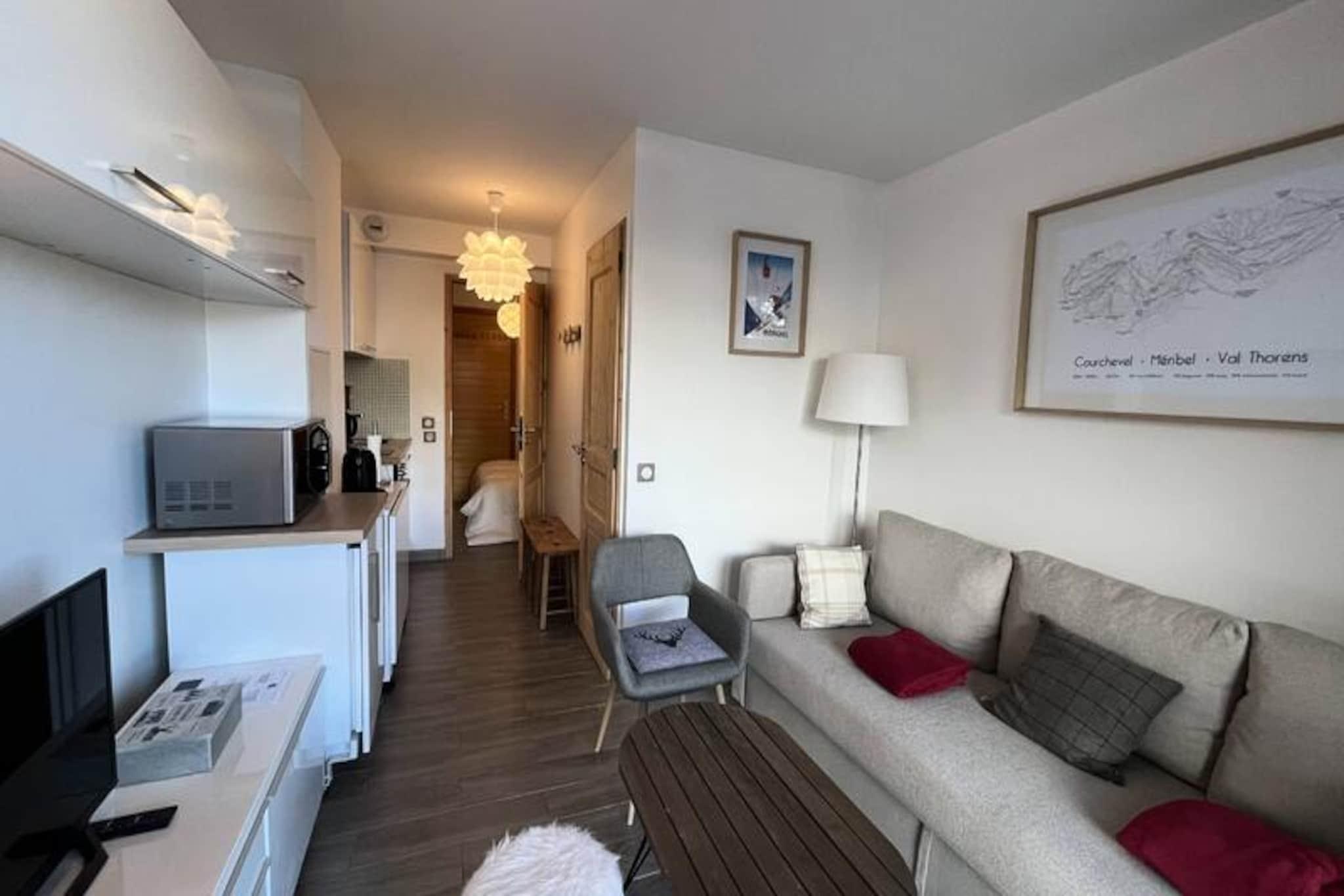 Denne charmerende lejlighed i Alpinéa-residensen ligger ved kanten af ??en uberørt alpinskråning og tilbyder det perfekte tilflugtssted for både vintersportsentusiaster og naturelskere. Beliggende kun 70 meter fra skiløjperne og 150 meter fra lokale butikker, kombinerer den bekvemmelighed med de franske alpers fredfyldte skønhed. Uanset om du er her for at grave dig gennem frisk puddersne eller nyde den fredelige bjergatmosfære, placerer denne ejendom dig lige i hjertet af det hele. Indenfor er lejligheden omhyggeligt designet til komfort og praktisk anvendelighed. Stuen har en hyggelig sovesofa og et fjernsyn, hvilket skaber et indbydende rum at slappe af efter en dag på pisterne. Det åbne køkken er udstyret med moderne bekvemmeligheder, herunder elektrisk kogeplade, opvaskemaskine og køleskab, hvilket gør det nemt at tilberede måltider. Soveværelset med dobbeltseng tilbyder et afslappende tilflugtssted, mens badeværelset sikrer, at alle fornødenheder er dækket. Yderligere tjenester såsom lagner, håndklæder og babyudstyr kan reserveres på forhånd for ekstra bekvemmelighed. Hameau du Mottaret-kvarteret er et skiløberparadis med direkte adgang til pisterne og en række nærliggende faciliteter. Fra minimarkeder og sportsbutikker til restauranter og barer er alt, hvad du behøver, inden for gåafstand. Chalets-svævebanen og de gratis shuttlebusser gør det nemt at udforske det bredere Méribel Mottaret-resort, hvilket bidrager til denne beliggenheds charme. Uanset om du søger spændende skieventyr eller rolige alpine flugter, tilbyder denne lejlighed den ideelle base for uforglemmelige minder i de franske alper.