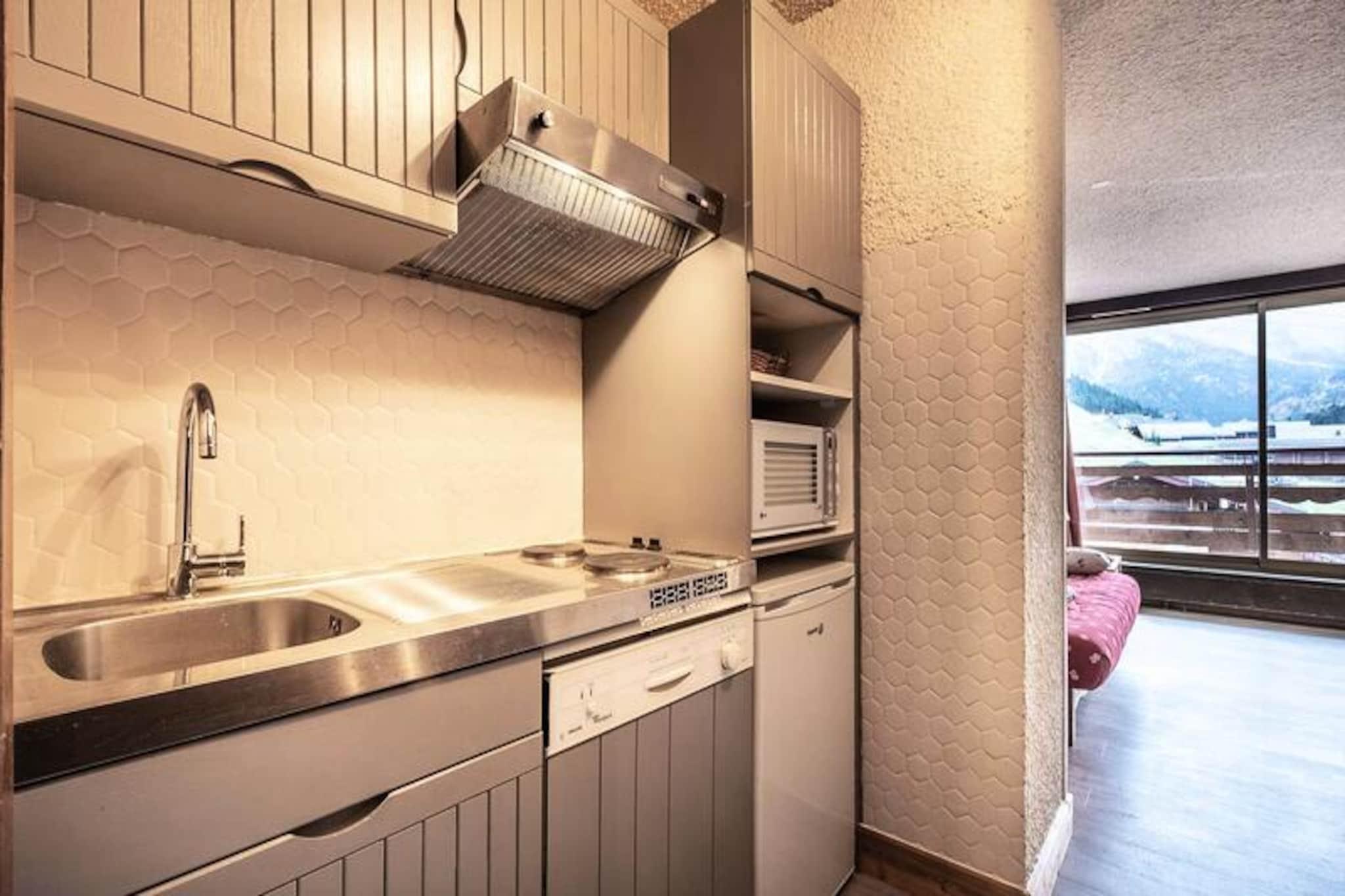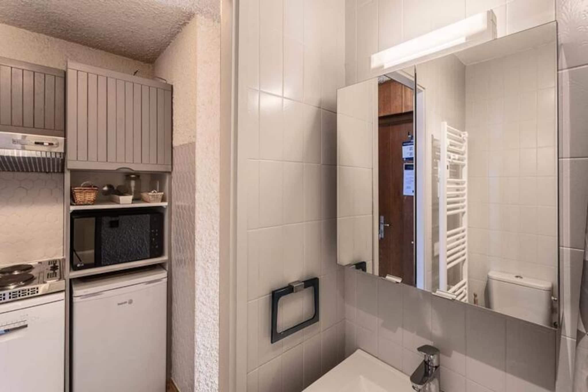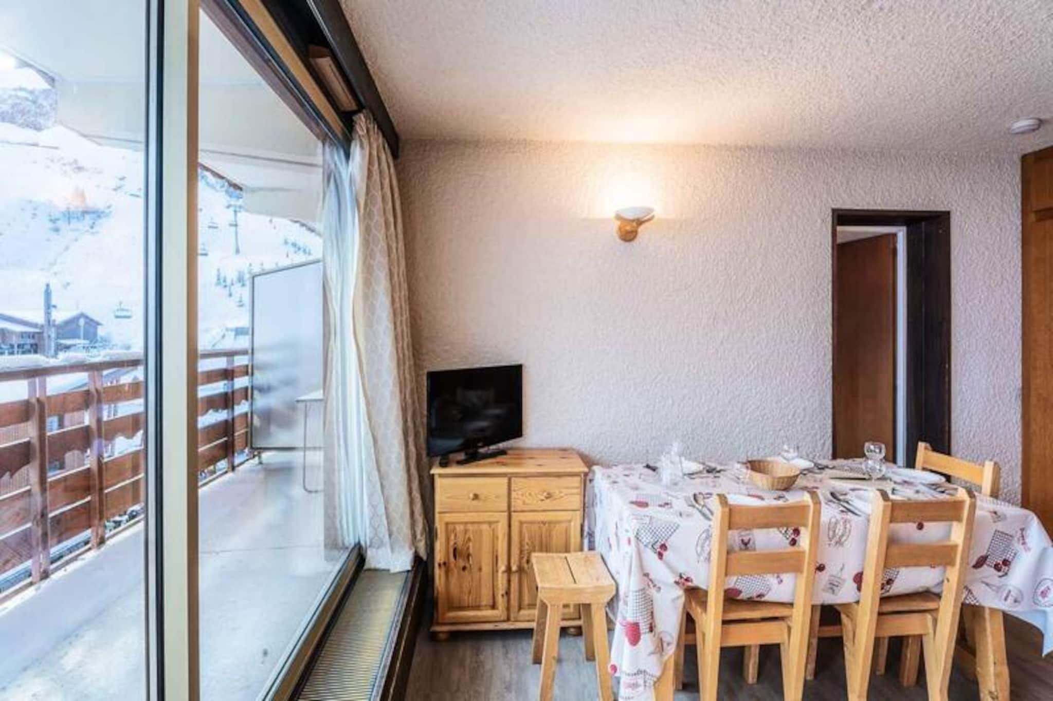 I hjertet af Méribel Mottaret, hvor charmen fra de franske alper møder moderne bekvemmeligheder, tilbyder denne hyggelige lejlighed et uforglemmeligt alpint tilflugtssted. Beliggende på tredje sal i den berømte Le Ruitor-residens, placerer den uovertrufne beliggenhed dig få skridt fra pisterne, butikkerne og det pulserende feriestedscentrum. Forestil dig at vågne op til den friske bjergluft og træde ud på din sydvendte balkon, hvor solen oplyser det betagende alpine landskab. Uanset om du er her for spændende skieventyr eller rolige sommervandreture, er dette den perfekte base for din bjergflugt. \n\nLejligheden er omhyggeligt designet til at rumme op til fem gæster og har en stue med en komfortabel sovesofa og et soveværelse med tre køjesenge. Tekøkkenet er fuldt udstyret med komfur, mikrobølgeovn, opvaskemaskine, elkedel, kaffemaskine, brødrister og køleskab, hvilket gør det nemt at tilberede måltider efter en dag med udforskning. Et badeværelse med toilet og et skiskab til dit udstyr bidrager til bekvemmeligheden. Residensen har også en elevator for nem adgang. Bemærk venligst, at lejligheden er røgfri, og kæledyr er ikke tilladt, hvilket sikrer et rent og fredeligt miljø for alle gæster.\n\nMéribel Mottarets feriestedscentrum ligger kun en kort gåtur væk og tilbyder en livlig atmosfære med skiskole, turistkontor, butikker, barer og restauranter. Uanset om du nyder afterskiing eller udforsker den lokale biograf, er alt hvad du behøver lige uden for døren. Om sommeren forvandles området til et paradis for friluftsentusiaster med naturskønne stier og aktiviteter, der fremviser Alpernes naturlige skønhed.\n\nVælg denne lejlighed for dens uovertrufne beliggenhed, hyggelige atmosfære og løftet om uforglemmelige minder i et af de mest maleriske alpine omgivelser. Uanset om du søger eventyr eller afslapning, har Méribel Mottaret det hele.