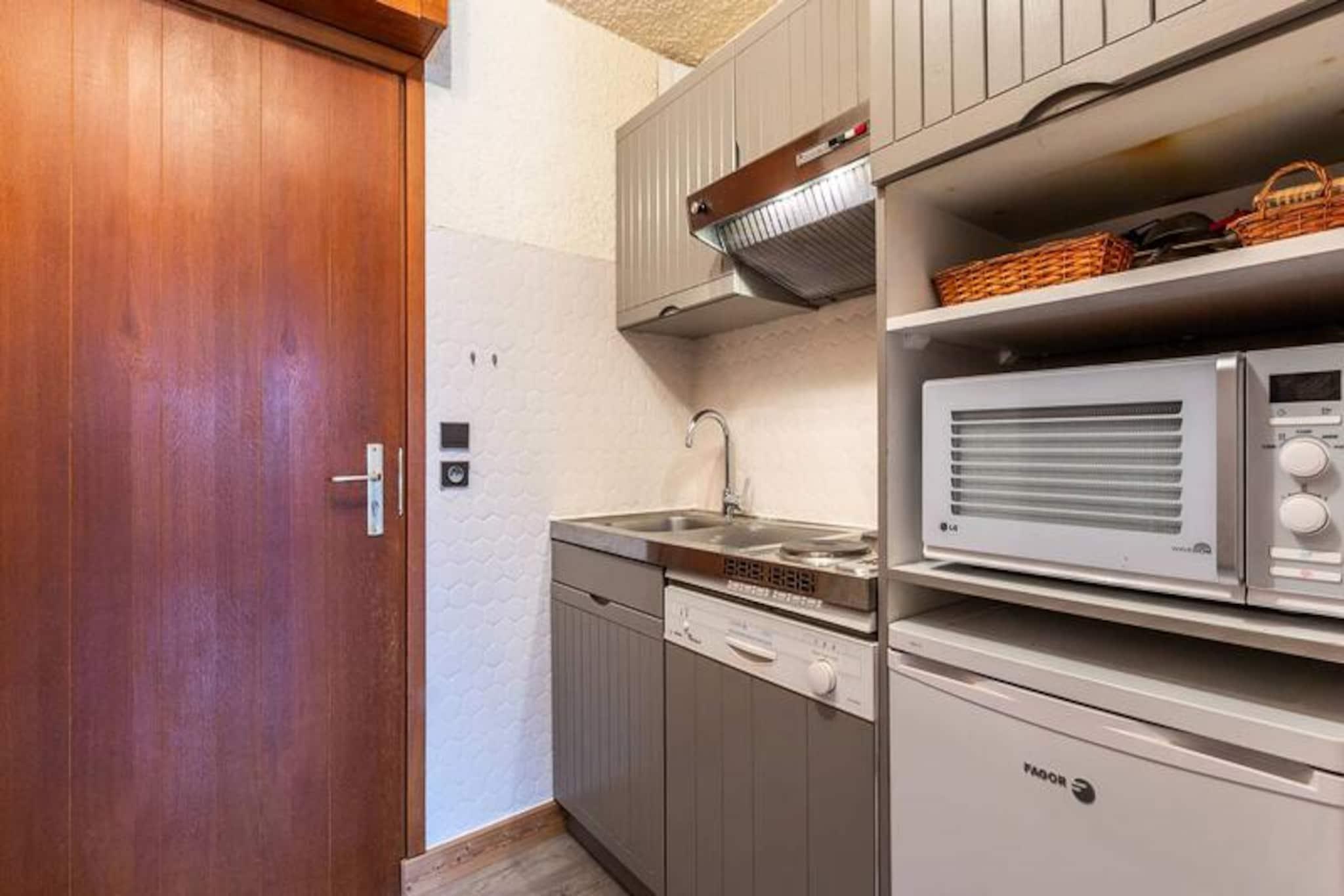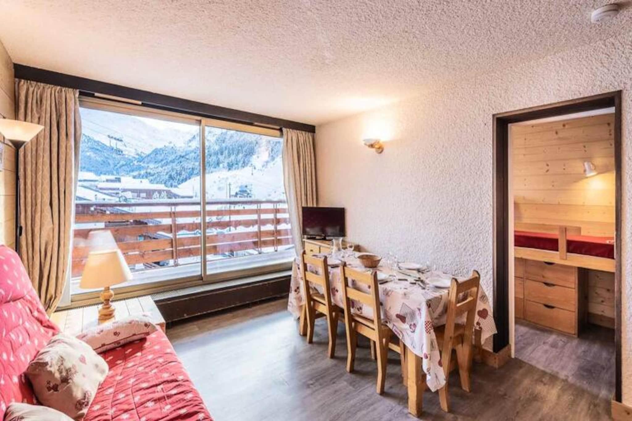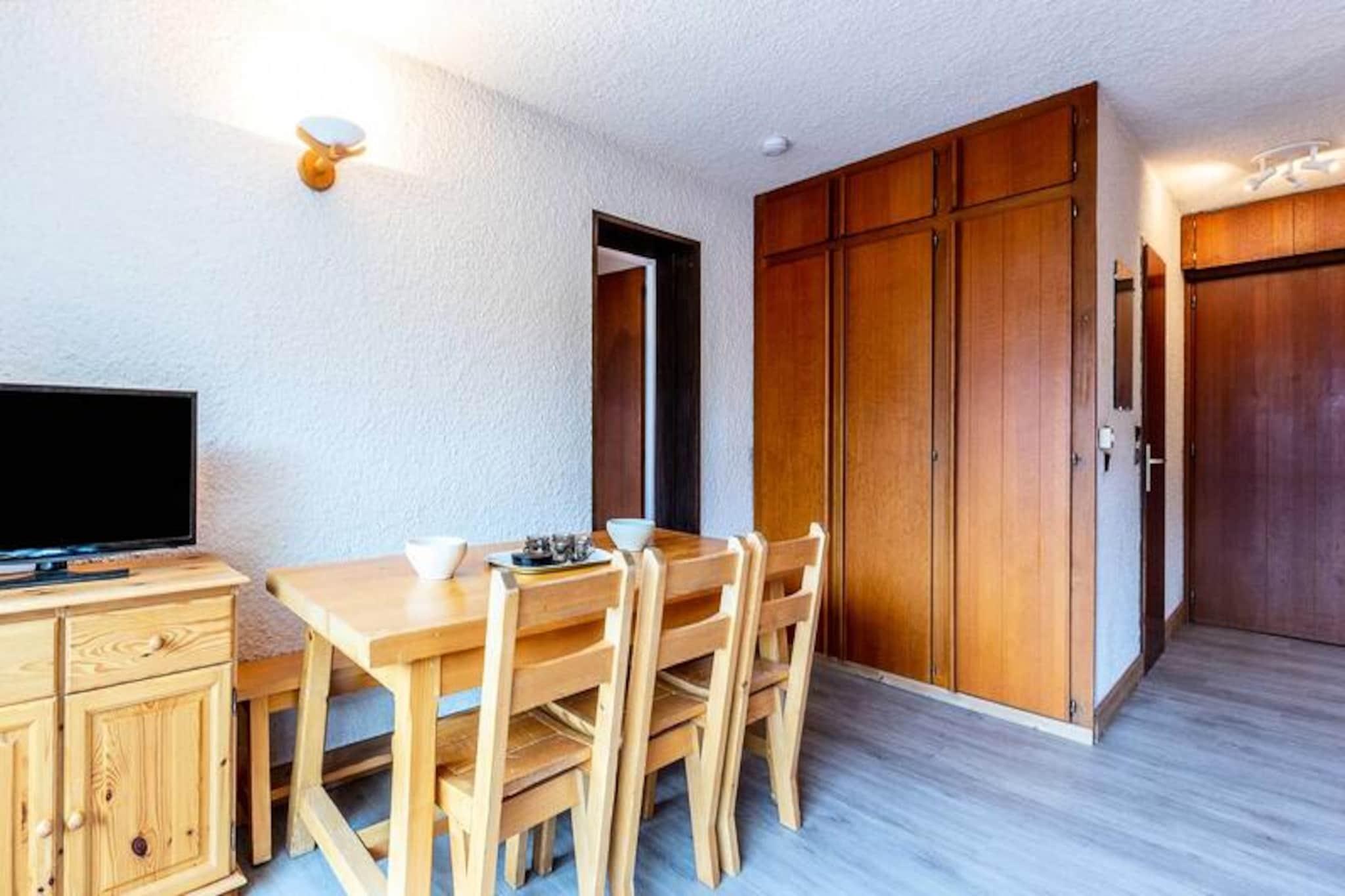 I hjertet af Méribel Mottaret, hvor charmen fra de franske alper møder moderne bekvemmeligheder, tilbyder denne hyggelige lejlighed et uforglemmeligt alpint tilflugtssted. Beliggende på tredje sal i den berømte Le Ruitor-residens, placerer den uovertrufne beliggenhed dig få skridt fra pisterne, butikkerne og det pulserende feriestedscentrum. Forestil dig at vågne op til den friske bjergluft og træde ud på din sydvendte balkon, hvor solen oplyser det betagende alpine landskab. Uanset om du er her for spændende skieventyr eller rolige sommervandreture, er dette den perfekte base for din bjergflugt. \n\nLejligheden er omhyggeligt designet til at rumme op til fem gæster og har en stue med en komfortabel sovesofa og et soveværelse med tre køjesenge. Tekøkkenet er fuldt udstyret med komfur, mikrobølgeovn, opvaskemaskine, elkedel, kaffemaskine, brødrister og køleskab, hvilket gør det nemt at tilberede måltider efter en dag med udforskning. Et badeværelse med toilet og et skiskab til dit udstyr bidrager til bekvemmeligheden. Residensen har også en elevator for nem adgang. Bemærk venligst, at lejligheden er røgfri, og kæledyr er ikke tilladt, hvilket sikrer et rent og fredeligt miljø for alle gæster.\n\nMéribel Mottarets feriestedscentrum ligger kun en kort gåtur væk og tilbyder en livlig atmosfære med skiskole, turistkontor, butikker, barer og restauranter. Uanset om du nyder afterskiing eller udforsker den lokale biograf, er alt hvad du behøver lige uden for døren. Om sommeren forvandles området til et paradis for friluftsentusiaster med naturskønne stier og aktiviteter, der fremviser Alpernes naturlige skønhed.\n\nVælg denne lejlighed for dens uovertrufne beliggenhed, hyggelige atmosfære og løftet om uforglemmelige minder i et af de mest maleriske alpine omgivelser. Uanset om du søger eventyr eller afslapning, har Méribel Mottaret det hele.