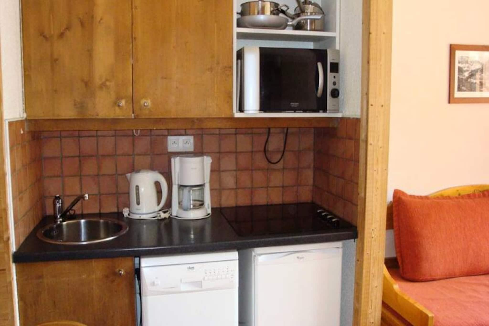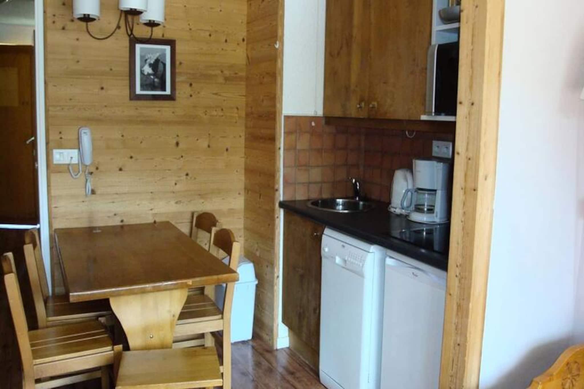 Omgivet af de franske alpers fortryllende skønhed tilbyder denne charmerende lejlighed i Méribel Mottaret et hyggeligt tilflugtssted for dine bjergeventyr. Vågn op til frisk alpeluft og løftet om spændende dage på pisterne, hvor Le Plan du Lac-residensen er perfekt placeret for både skientusiaster og naturelskere. Uanset om du er her for at kæmpe dig gennem frisk puddersne eller nyde rolige sommervandreture, er denne ejendom den ideelle base for uforglemmelige minder. \n\nIndvendigt er lejligheden omhyggeligt designet til at rumme op til seks gæster. Stuen har to sovesofaer og en udtræksseng, hvilket skaber et indbydende rum at slappe af efter en dag med udforskning. En sovealkove med køjesenge giver fleksibilitet for familier eller grupper. Tekøkkenet er fuldt udstyret med moderne bekvemmeligheder, herunder keramisk kogeplade, ovn, opvaskemaskine, køleskab, kaffemaskine og elkedel, hvilket sikrer, at du har alt, hvad du behøver for at tilberede solide måltider. Badeværelset er praktisk og komfortabelt, mens den private balkon inviterer dig til at nyde den omkringliggende udsigt. Yderligere bekvemmeligheder såsom elevator og skiboks forbedrer dit ophold, og valgfrie tjenester som sengetøj, håndklæder og babyudstyr kan reserveres på forhånd.\n\nResidensens førsteklasses beliggenhed betyder, at du kun er få skridt fra pisterne og lokale butikker, hvilket gør det nemt at få adgang til alt, hvad du behøver. Familier vil sætte pris på den nærliggende børnehave, mens den pulserende atmosfære i Méribel Mottaret tilbyder en blanding af afslapning og aktivitet. Om sommeren forvandles området til et paradis for friluftsentusiaster med stier, festivaler og betagende udsigter, der venter på at blive udforsket.\n\nVælg denne dejlige lejlighed for en problemfri blanding af komfort, bekvemmelighed og alpin charme, der sikrer, at din ferie i de franske alper bliver intet mindre end ekstraordinær.