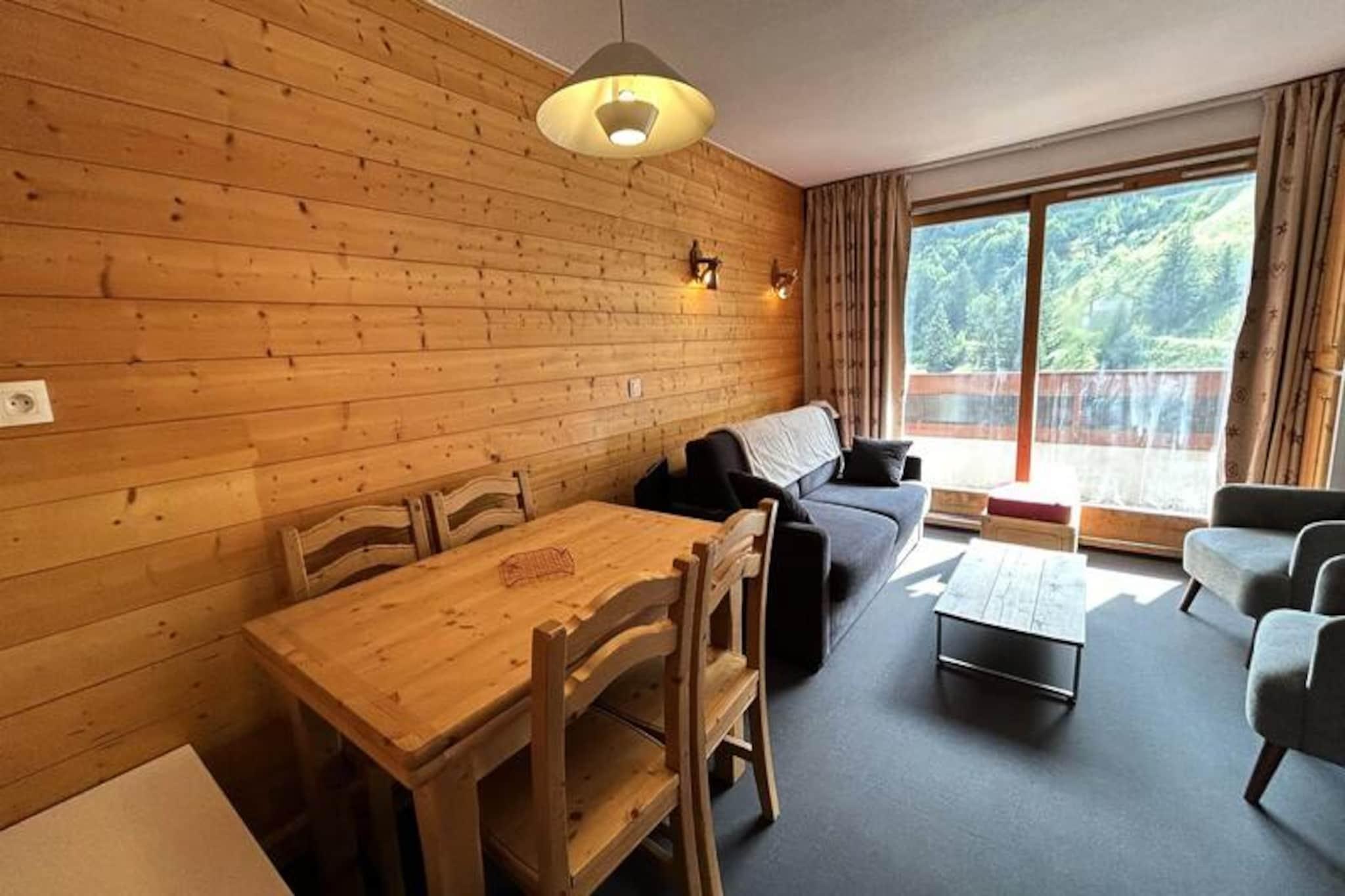 I den charmerende landsby Méribel Mottaret tilbyder denne dejlige lejlighed et hyggeligt tilflugtssted for din alpine ferie. Beliggende på første sal i Le Plan du Lac-residensen, kan den prale af en uovertruffen beliggenhed kun få skridt fra pisterne og lokale butikker, hvilket sikrer bekvemmelighed og bekvemmelighed under hele dit ophold. Den vestvendte balkon inviterer dig til at slappe af med en fantastisk udsigt over de omkringliggende bjerge, mens solen går ned over toppene. \n\nIndvendigt er lejligheden omhyggeligt designet til at rumme op til seks gæster. Stuen har en komfortabel sovesofa og en udtræksseng, perfekt til afslappende aftener efter en dag på pisterne. Soveværelset har en dobbeltseng, mens en separat sovekabine også tilbyder en dobbeltseng, hvilket giver privatliv og komfort for alle. Tekøkkenet er fuldt udstyret med moderne apparater, herunder keramisk kogeplade, kombiovn, opvaskemaskine, køleskab, Nespresso-kaffemaskine og brødrister, hvilket gør det nemt at tilberede solide måltider. To badeværelser, det ene med bruser og toilet, bidrager til bekvemmeligheden. Lejligheden er røgfri og kæledyrsfri, hvilket sikrer et rent og behageligt miljø for alle gæster. \n\nLe Plan du Lac-residensen forbedrer dit ophold med praktiske faciliteter såsom en elevator og et skirum, der gør det nemt at opbevare dit udstyr. Familier vil sætte pris på den nærliggende børnehave, mens yderligere tjenester som sengetøj, håndklæder og babyudstyr kan bookes på forhånd. For ekstra bekvemmelighed anbefales det at reservere en parkeringsplads for ugen. \n\nUanset om du er her for at stå på ski, snowboarde eller blot nyde den rolige alpine atmosfære, er denne lejlighed den perfekte base for at udforske Méribel Mottarets skønhed. Med sin førsteklasses beliggenhed og komfortable faciliteter lover den en uforglemmelig bjergferie.