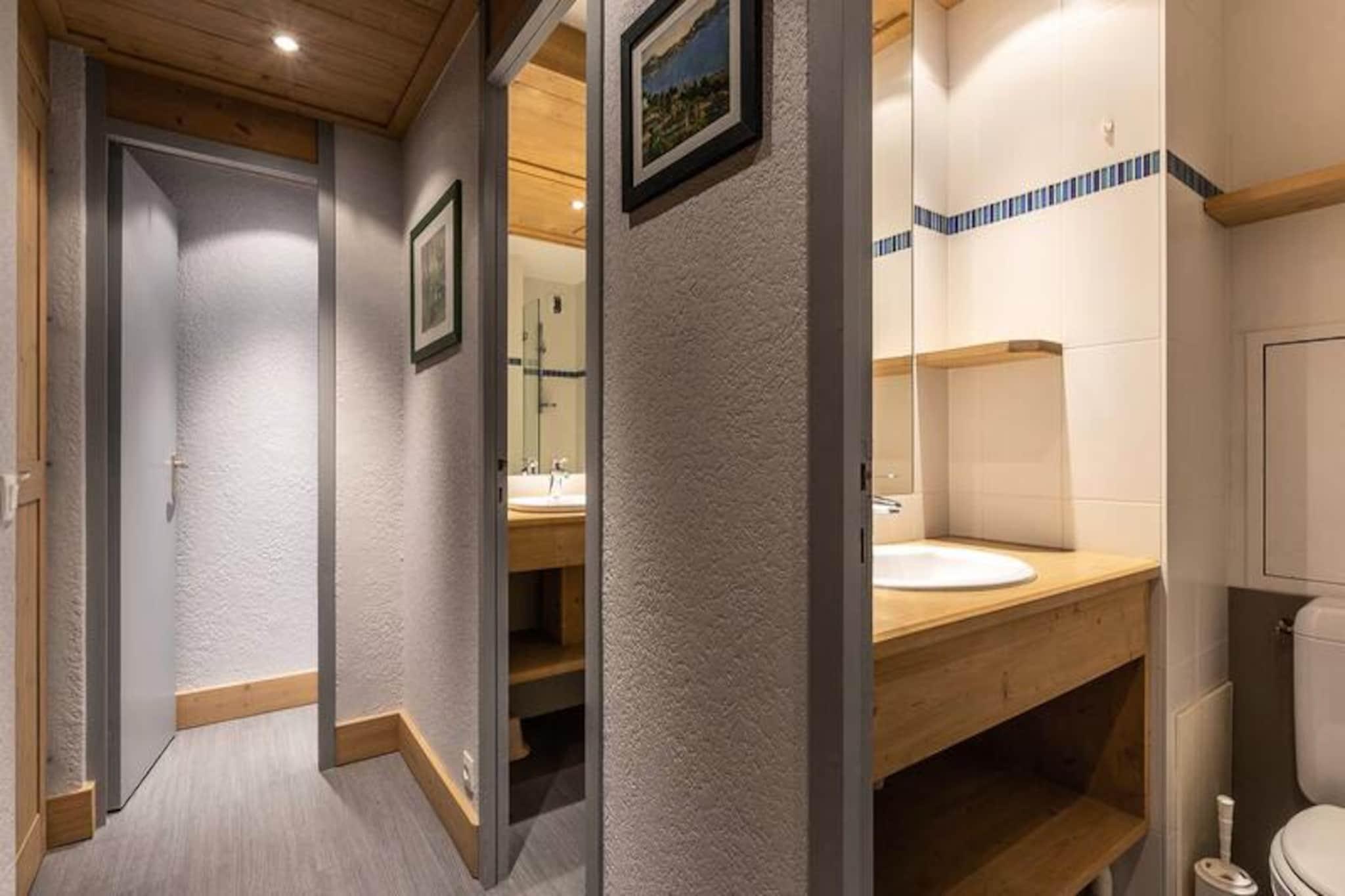 Højt over den fortryllende alpelandsby Méribel Mottaret tilbyder denne indbydende lejlighed en ski-in, ski-out-oplevelse, der placerer dig direkte på pisterne. Forestil dig at vågne op til den friske bjergluft, træde ud på din private balkon og kigge på de snedækkede tinder, inden du begiver dig ud på en dag med spændende eventyr. Arpasson-residensen, beliggende i Laitelet-distriktet, kombinerer bekvemmelighed og charme med nem adgang til Hameau-indkøbscentret og det pulserende hjerte af feriestedet via Chalets-svævebanen eller gratis Méribus-shuttlebusser. Uanset om du er her for vintersport eller sommervandreture, er denne ejendom din port til de franske alpers skønhed. Indenfor er lejligheden omhyggeligt designet til at rumme op til seks gæster. Det første soveværelse har to enkeltsenge, mens soveværelset i hytten tilbyder hyggelige køjesenge. Stuen er et alsidigt rum med en sovesofa og ekstra sovemuligheder, der sikrer komfort for familier eller vennegrupper. Et fuldt udstyret køkken venter, komplet med induktionskogeplade, opvaskemaskine, ovn, mikrobølgeovn og kaffemaskine - perfekt til at tilberede måltider efter en dag på pisterne. Moderne bekvemmeligheder som fjernsyn, skiboks og elevator forbedrer dit ophold, mens det separate badeværelse og toilet giver ekstra bekvemmelighed. Bemærk venligst, at dette er en ikke-ryger, kæledyrsfri lejlighed. Hameau du Mottaret-kvarteret er et skiløberparadis med boliger, der tilbyder problemfri adgang til pisterne. I nærheden finder du alt, hvad du behøver for en ubesværet ferie: et minimarked, en sportsbutik, restauranter og barer. Om sommeren forvandles regionen til et paradis for friluftsentusiaster med vandrestier, mountainbikeruter og betagende udsigter. Uanset om du søger adrenalinpumpende eventyr eller rolige alpine øjeblikke, er denne lejlighed den perfekte base for din Méribel-ferie.