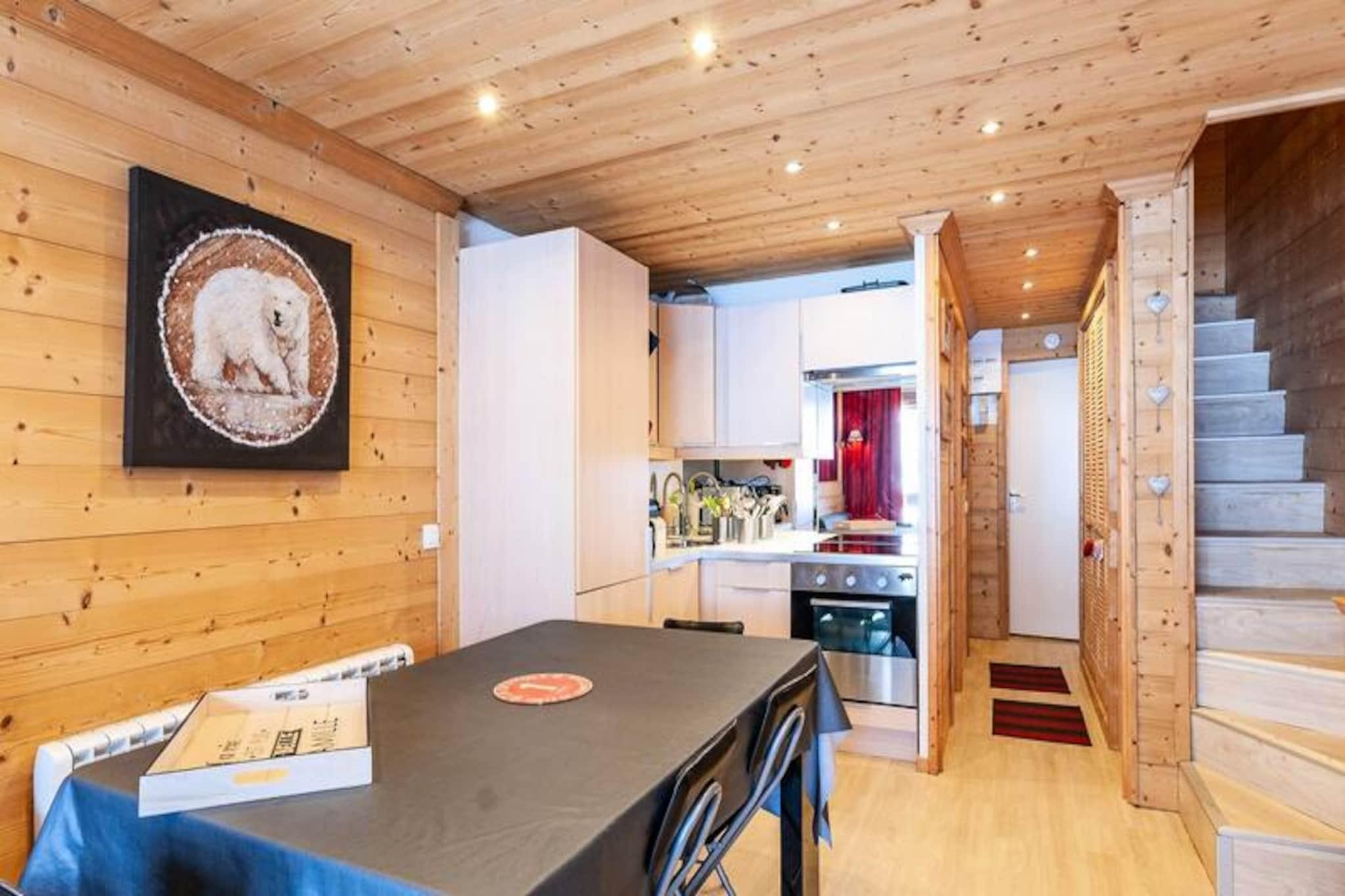 Et betagende alpint tilflugtssted venter dig i hjertet af Méribel Mottaret, hvor Arpasson 075-lejligheden tilbyder en uovertruffen ski-in, ski-out-oplevelse. Med sin sydvendte balkon med udsigt over pisterne og den majestætiske Mont Vallon er denne totalrenoverede lejlighed på 60 m² et paradis for op til otte gæster, der søger både komfort og eventyr i de franske alper. Forestil dig at vågne op til den friske bjergluft og træde direkte ud på de uberørte pister lige uden for din dør. \n\nLejlighedens gennemtænkte planløsning sikrer et hyggeligt og funktionelt ophold. I stueetagen er der et soveværelse med to køjesenge til fire personer, samt et moderne badeværelse og et separat toilet. Det åbne køkken, udstyret med keramisk kogeplade, ovn, mikrobølgeovn, opvaskemaskine og Nespresso-kaffemaskine, flyder problemfrit over i en lys og indbydende opholdsstue. Ovenpå er der et soveværelse på loftet med en dobbeltseng, et brusebadeværelse med toilet og en hems med tv-område og sovesofa til to personer, der giver ekstra plads og privatliv. Hver eneste detalje, fra den sydvendte balkon til skiboksen og elevatoren, er designet med din bekvemmelighed i tankerne.\n\nArpasson-residensen ligger i Laitelet-distriktet og er perfekt placeret for skiløbere med direkte adgang til pisterne og nærhed til Hameau-indkøbscentret. Uanset om du køber udstyr i minimarkedet, lejer udstyr i sportsbutikken eller nyder et måltid på en lokal restaurant, er alt hvad du behøver inden for rækkevidde. Den gratis Méribus-shuttle eller Chalets-svævebanen forbinder dig ubesværet med Méribel Mottarets pulserende centrum, hvilket gør dit ophold endnu nemmere.\n\nUanset om du er her for at grave dig gennem frisk puddersne, udforske naturskønne stier eller blot nyde den alpine charme, tilbyder Arpasson 075-lejligheden den perfekte base for en uforglemmelig bjergferie. Omfavn Méribels magi og skab minder, der varer hele livet.