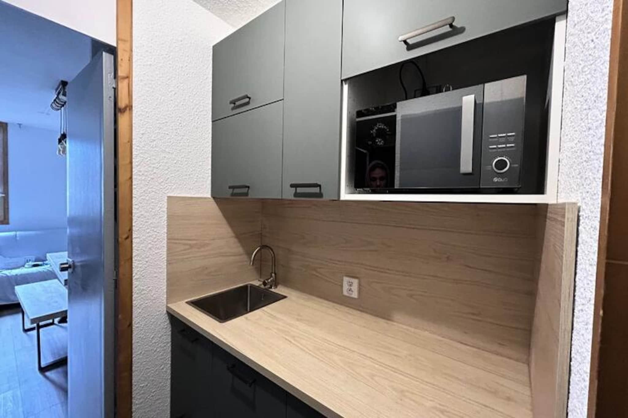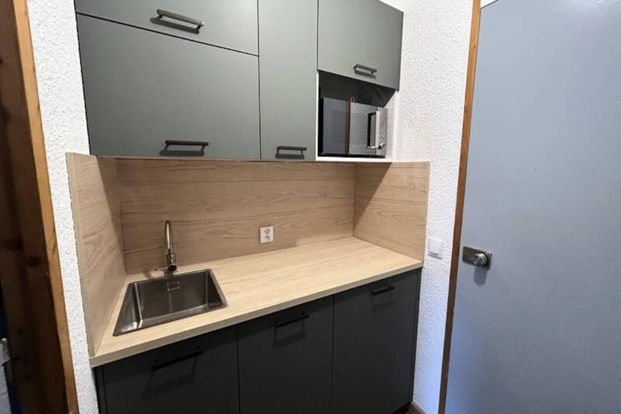 Højt over de maleriske skråninger i Méribel Mottaret inviterer denne charmerende lejlighed dig til at opleve magien i de franske alper i enhver sæson. Med sin førsteklasses beliggenhed i Laitelet-distriktet tilbyder boligen direkte adgang til skiløjperne og ligger kun få skridt fra Hameau-indkøbscentret, hvilket sikrer bekvemmelighed og eventyr lige ved hånden. Forestil dig at vågne op til frisk alpeluft, nippe til din morgenkaffe på balkonen og gå direkte ud for at udforske de snedækkede stier eller de pulserende sommerlandskaber. Arpasson-boligen kombinerer spændingen ved bjerglivet med hjemmets komfort. \n\nIndvendigt er lejligheden omhyggeligt designet til at rumme op til fire gæster. Entréhallen har hyggelige køjesenge, mens stuen tilbyder en komfortabel sovesofa og et tv til afslappende aftener. Det fuldt udstyrede køkken har moderne bekvemmeligheder såsom opvaskemaskine, elektrisk kogeplade, mikrobølgeovn/grill, køleskab og kaffemaskine, hvilket gør madlavning til en leg. Et separat badeværelse og toilet sikrer privatliv og bekvemmelighed. Yderligere funktioner som et skiskab, elevatoradgang og valgfrie tjenester såsom sengetøj, håndklæder og babyudstyr forbedrer dit ophold. Denne ikke-ryger lejlighed er perfekt til par, familier eller små grupper, der søger et roligt tilflugtssted. \n\nKvarteret Hameau du Mottaret er et skiløberparadis med boliger, der tilbyder nem adgang til pisterne, og et udvalg af butikker, restauranter og barer i nærheden. Den gratis Chalets-svævebane og Méribus-shuttle forbinder dig ubesværet til feriestedets centrum, hvor du kan nyde afterskiing-aktiviteter eller udforske lokale attraktioner. Uanset om du glider ned ad uberørte pister om vinteren eller vandrer gennem frodige stier om sommeren, tilbyder denne beliggenhed uendelige muligheder for eventyr. \n\nVælg dette alpine paradis til din næste ferie, og skab uforglemmelige minder omgivet af skønheden i Méribel Mottarets majestætiske tinder.