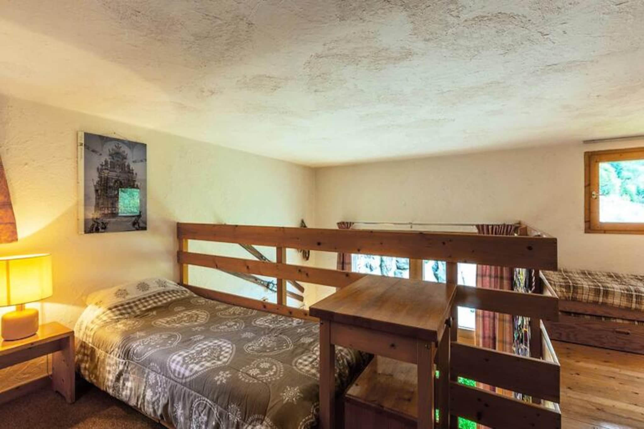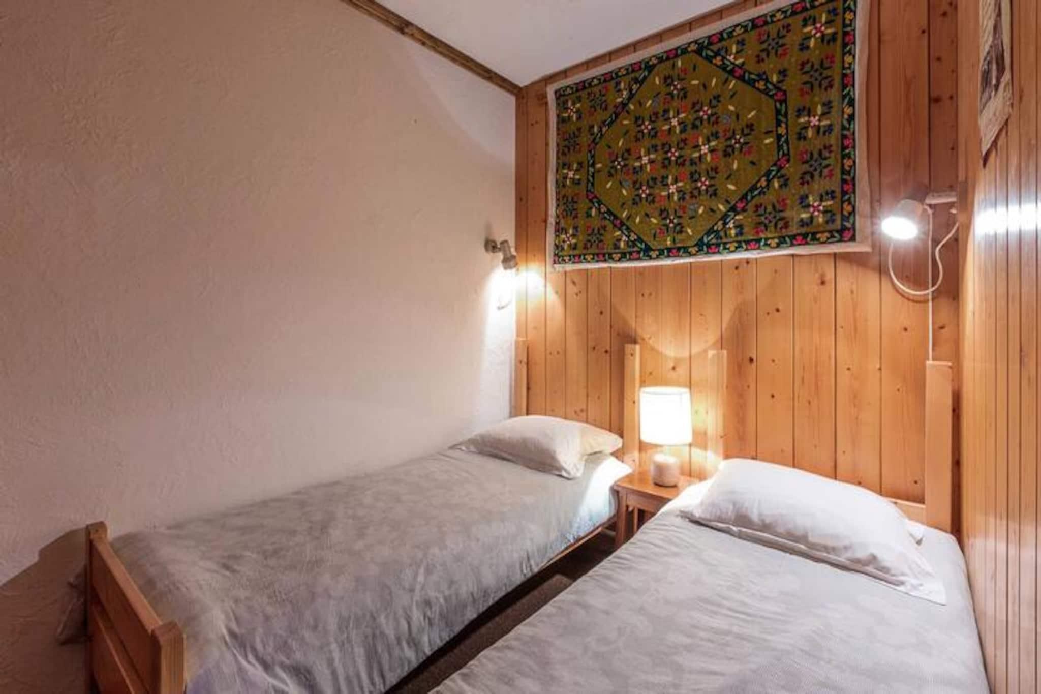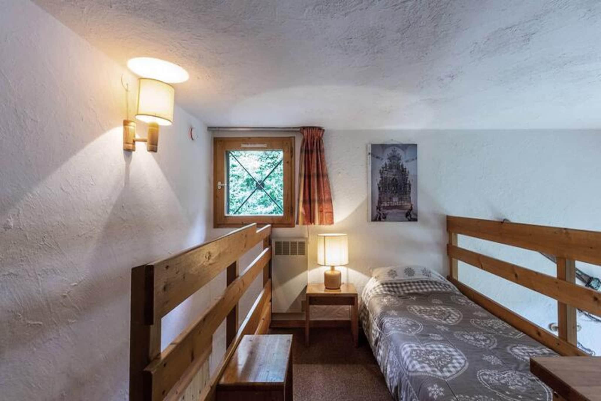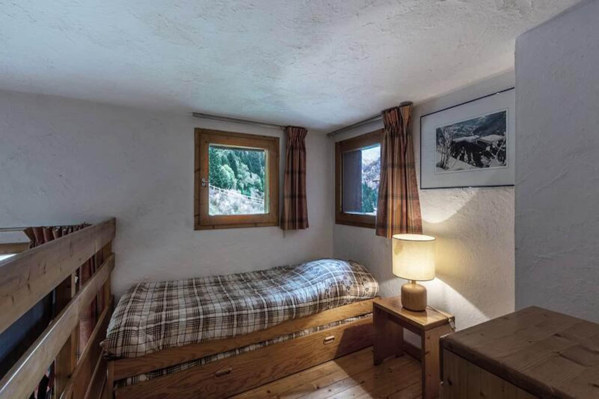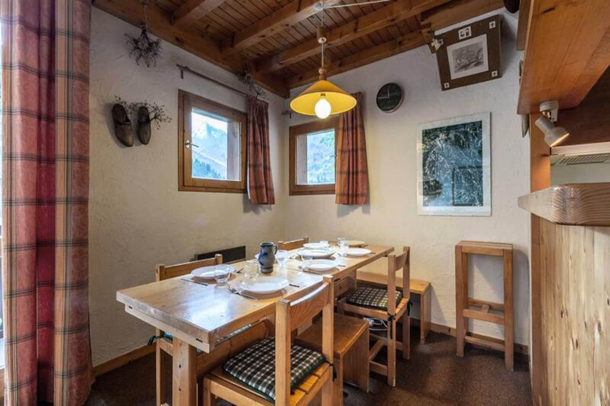 I de fredfyldte alpine omgivelser i Méribel Mottaret tilbyder denne charmerende duplexlejlighed et hyggeligt tilflugtssted for bjergentusiaster. Med sit varme interiør og gennemtænkte design er det den perfekte base for familier og grupper, der søger en uforglemmelig ferie. Beliggende i det fredelige Le Châtelet-kvarter, er boligen kun en kort gåtur fra pisterne, butikkerne og den maleriske Tueda-sø, hvilket gør den ideel til både vintersport og sommereventyr. \n\nLejligheden har komfortabel plads til op til otte gæster fordelt på to etager. Stueetagen har en indbydende stue med to sovesofaer, et tv og en dvd-afspiller, der åbner ud til en privat terrasse, hvor du kan nyde den friske bjergluft. Det åbne køkken er fuldt udstyret med moderne apparater, herunder elektrisk kogeplade, ovn, mikrobølgeovn, opvaskemaskine og kaffemaskine, hvilket sikrer, at du har alt, hvad du behøver for at tilberede solide måltider efter en dag på pisterne. Ovenpå finder du en mezzanin med to enkeltsenge, et soveværelse på loftet med køjesenge og et soveværelse på loftet med to enkeltsenge. Yderligere faciliteter inkluderer et skirum, sikker garage, privat Wi-Fi og bekvemmeligheden ved valgfrie tjenester som sengetøj og slutrengøring.\n\nUd over lejlighedens komfort er beliggenheden et paradis for friluftsentusiaster. Om vinteren kan du nyde direkte adgang til pisterne og udforske det vidtstrakte skiområde Les Trois Vallées. Den nærliggende Tueda-sø er en favorit til sneskovandring og langrend. Om sommeren forvandles området til et paradis for vandrere og naturentusiaster med stier, der fører gennem fantastiske alpine landskaber.\n\nUanset om du søger spændende eventyr eller rolige øjeblikke i naturen, tilbyder denne lejlighed i Méribel Mottaret en perfekt blanding af komfort, bekvemmelighed og betagende omgivelser.