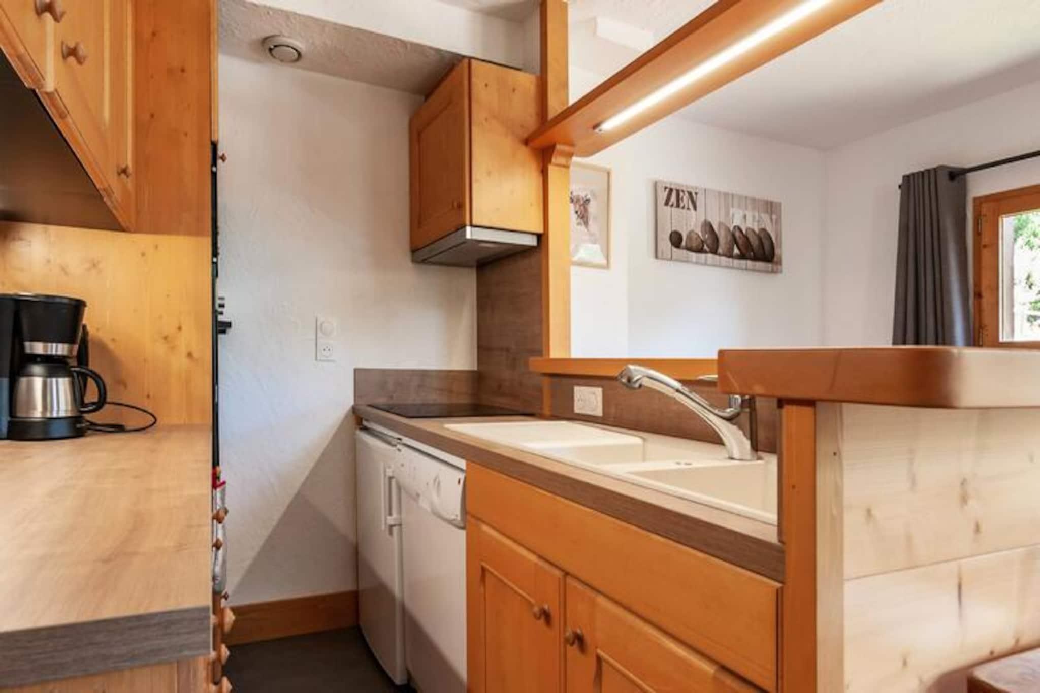 På bredden af ??den fredfyldte Tueda-sø inviterer denne charmerende alpine lejlighed dig til at opleve magien i Méribel Mottaret. Med sine rolige omgivelser og nærhed til pisterne er det det perfekte tilflugtssted for både sneelskere og naturelskere. Forestil dig at vågne op til frisk bjergluft og den blide lyd af sne, der knaser under fødderne, klar til at begive dig ud på en dag med eventyr i hjertet af skisportsstedet Les Trois Vallées. Uanset om du er her for vintersport eller sommervandreture, tilbyder denne ejendom en indgang til uforglemmelige alpine oplevelser. \n\nIndvendigt er lejligheden omhyggeligt designet til at rumme op til otte gæster fordelt på sine hyggelige soveværelser og mezzanin-områder. Det største soveværelse har en komfortabel dobbeltseng, mens soveværelseshytten og mezzaninen tilbyder fleksible sovemuligheder for familier eller grupper. Køkkenet er fuldt udstyret med moderne apparater, herunder ovn, mikrobølgeovn, opvaskemaskine og kaffemaskine, hvilket sikrer, at du har alt, hvad du behøver for at tilberede solide måltider efter en dag udendørs. Yderligere faciliteter såsom et skiskab og en sikker garage forbedrer dit ophold, mens valgfrie tjenester som Wi-Fi, sengetøj og rengøring kan arrangeres for ekstra bekvemmelighed. \n\nResidensen Le Gaillard er ideelt beliggende kun få minutter fra pisterne og centrum af Mottaret. Det er også en kort gåtur fra Tueda-søen, et malerisk sted til sneskovandring og langrend om vinteren eller fredelige gåture om sommeren. Det rolige kvarter Le Châtelet tilbyder en perfekt blanding af privatliv og tilgængelighed, med butikker og restauranter i nærheden for at fuldende din ferieoplevelse. \n\nUanset om du søger spændende skiløjper, naturskønne stier eller blot en hyggelig bjergflugt, er denne lejlighed den ideelle base for dine eventyr i Méribel Mottaret. Lad Alpernes skønhed og charmen ved denne bolig skabe minder, du vil værdsætte for evigt.