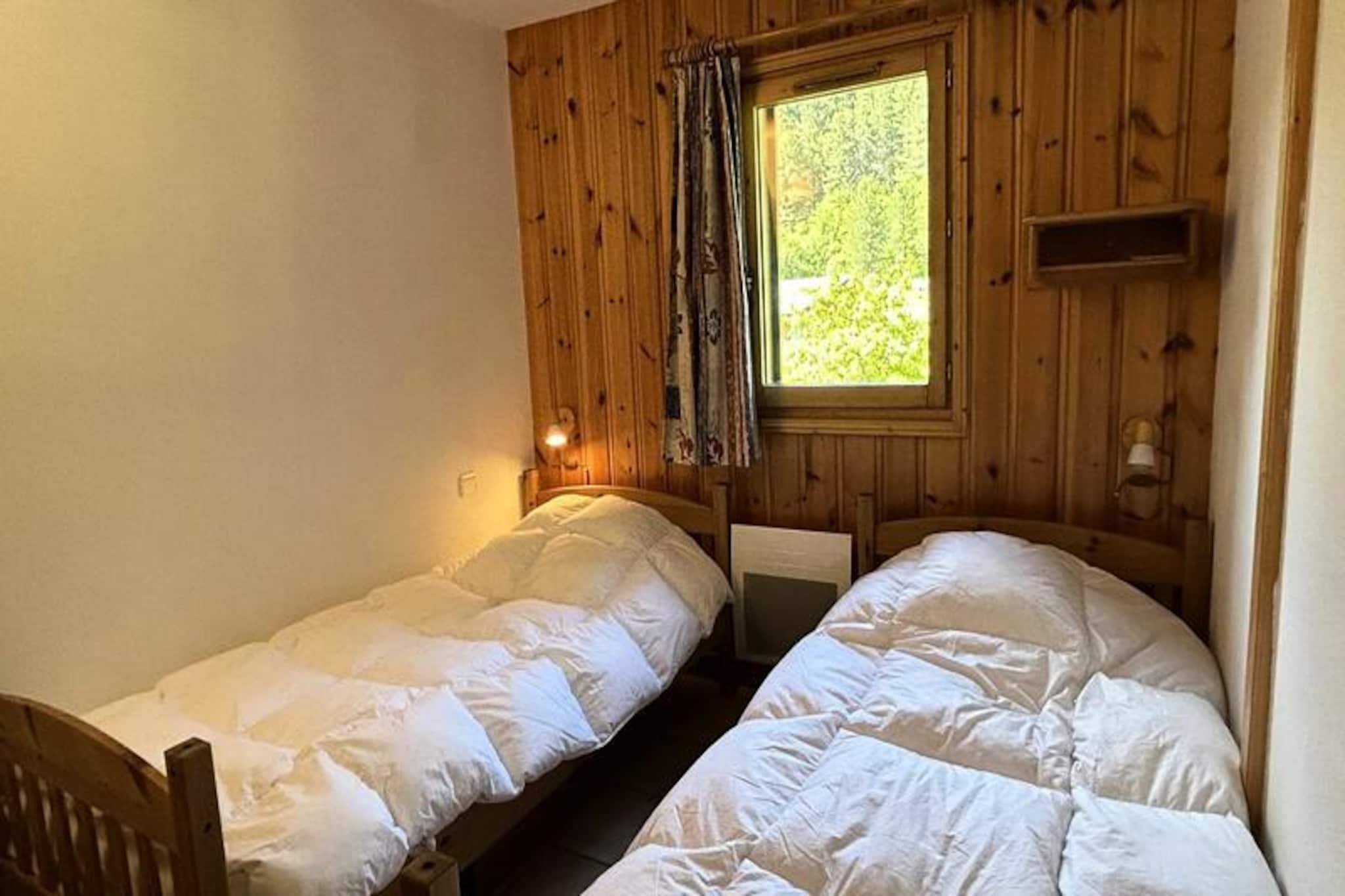 I det rolige og maleriske kvarter Le Chatelet i Méribel Mottaret tilbyder denne charmerende lejlighed et roligt alpint tilflugtssted med moderne bekvemmeligheder. Omgivet af betagende udsigt over bjergene og kun en kort gåtur fra pisterne og skilifterne, er det den perfekte base for både vintersportsentusiaster og naturelskere. Nærheden til Tueda-søen tilføjer et ekstra lag af charme, hvilket gør det til et ideelt sted for fredelige vandreture, sneskovandring eller langrend. \n\nLejligheden er designet til op til fire gæster og har en hyggelig stue med et tv, der åbner ud til et fuldt udstyret køkken med opvaskemaskine, vaskemaskine, filterkaffemaskine og Nespresso-maskine. De to soveværelser tilbyder rigelig opbevaringsplads med skabe, det ene med en dobbeltseng og det andet med to enkeltsenge. Et badeværelse med badekar og et separat toilet sikrer bekvemmelighed, mens den store balkon inviterer dig til at nyde det fantastiske alpine landskab. Yderligere faciliteter inkluderer en privat, aflåselig garage, der sikrer både sikkerhed og bekvemmelighed under dit ophold. \n\nLejligheden er en del af den moderne Les Alpages-residens, en samling af fem uafhængige hytter kendt for deres fredelige atmosfære og fremragende beliggenhed. De nærmeste butikker ligger kun 200 meter væk, hvilket giver nem adgang til de vigtigste fornødenheder, samtidig med at områdets ro bevares. Uanset om du er på pisterne eller udforsker de fredfyldte stier omkring Tueda-søen, tilbyder denne residens en perfekt blanding af aktivitet og afslapning. \n\nMed Méribel-mærket og valgfrie tjenester som sengelinned, slutrengøring og babyudstyr sikrer denne lejlighed et problemfrit og mindeværdigt ophold i hjertet af de franske alper. Oplev magien ved Méribel Mottaret og skab varige minder i denne idylliske bjergferie.