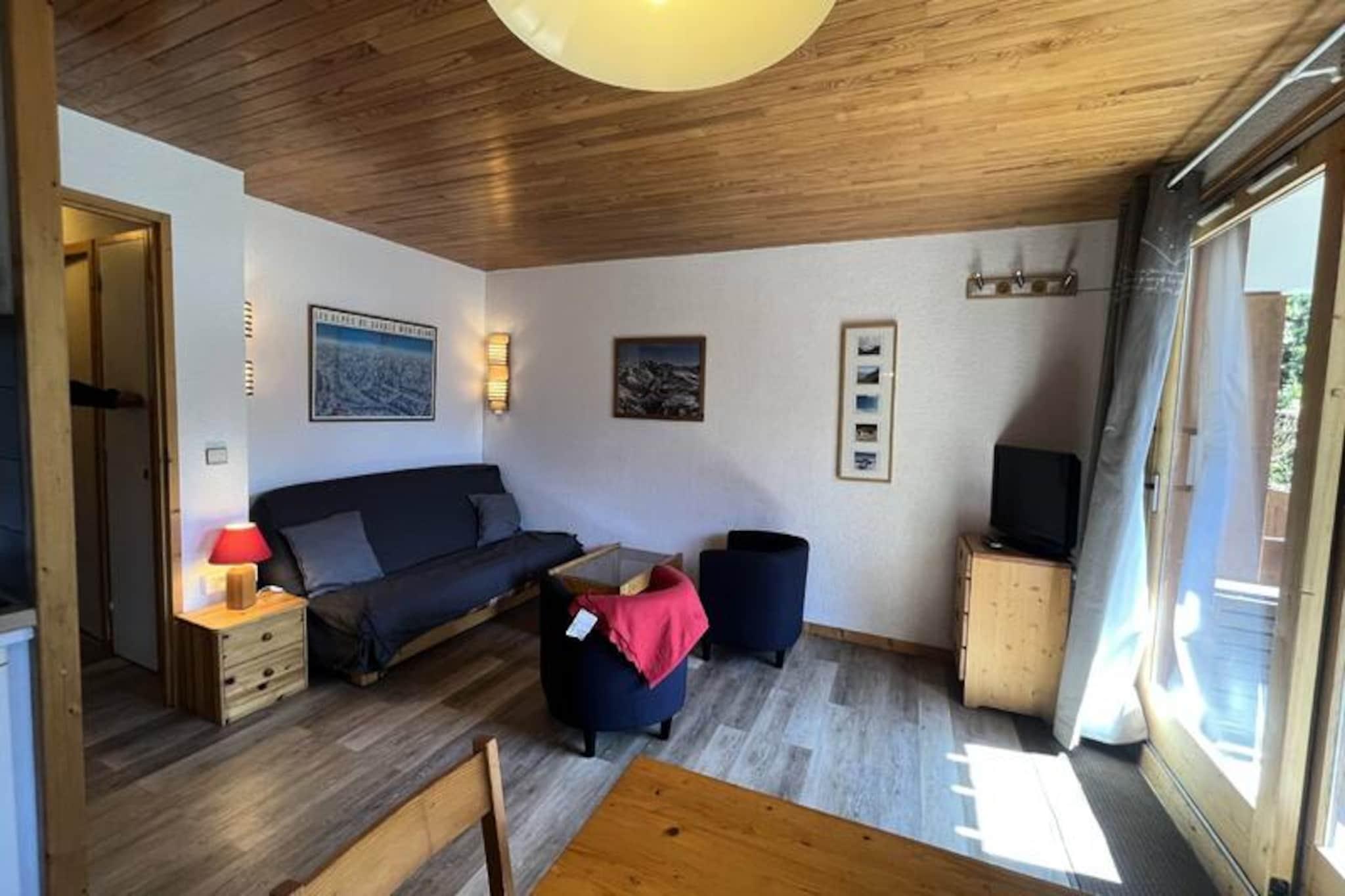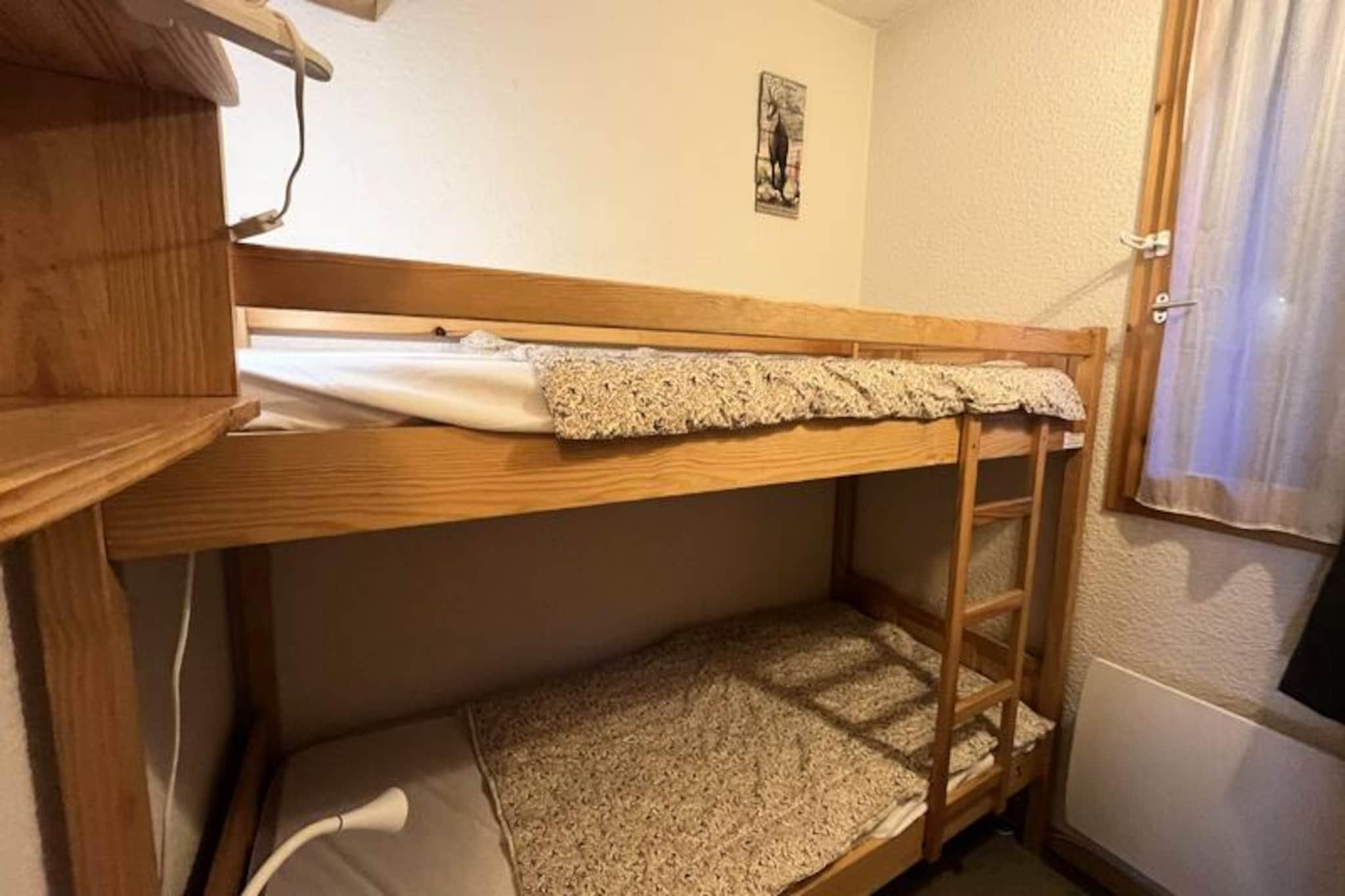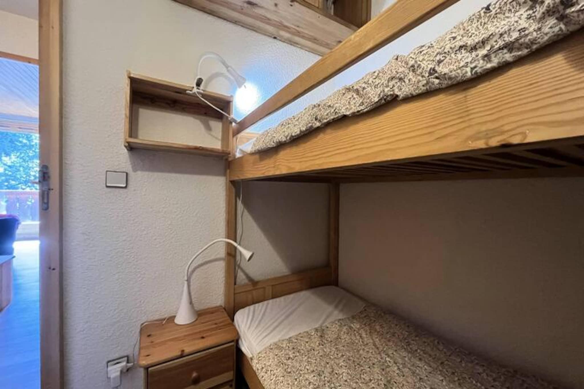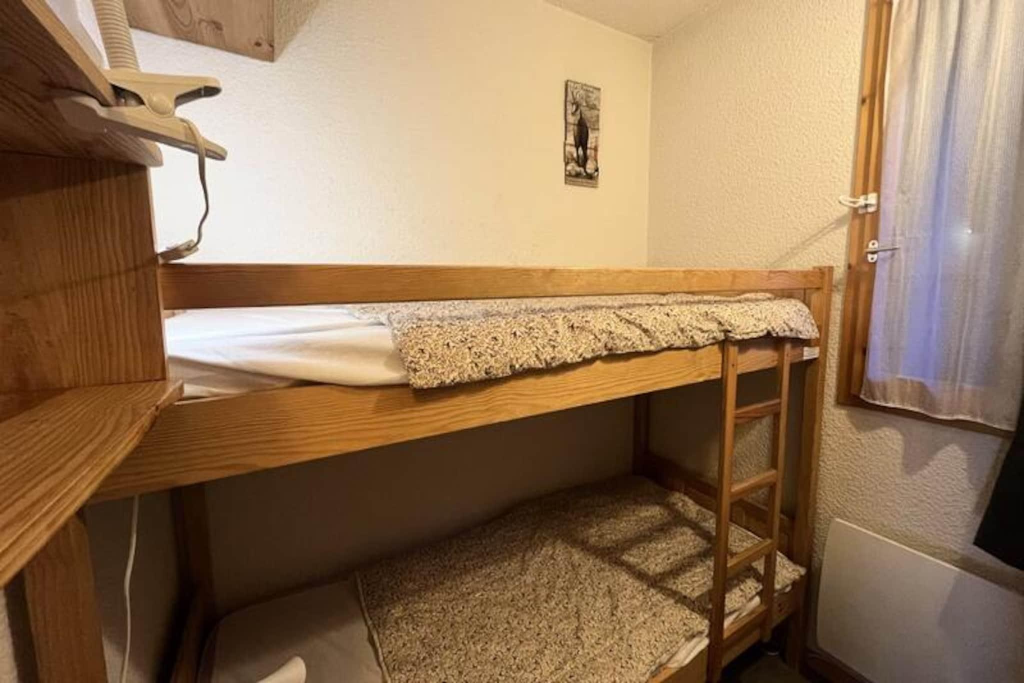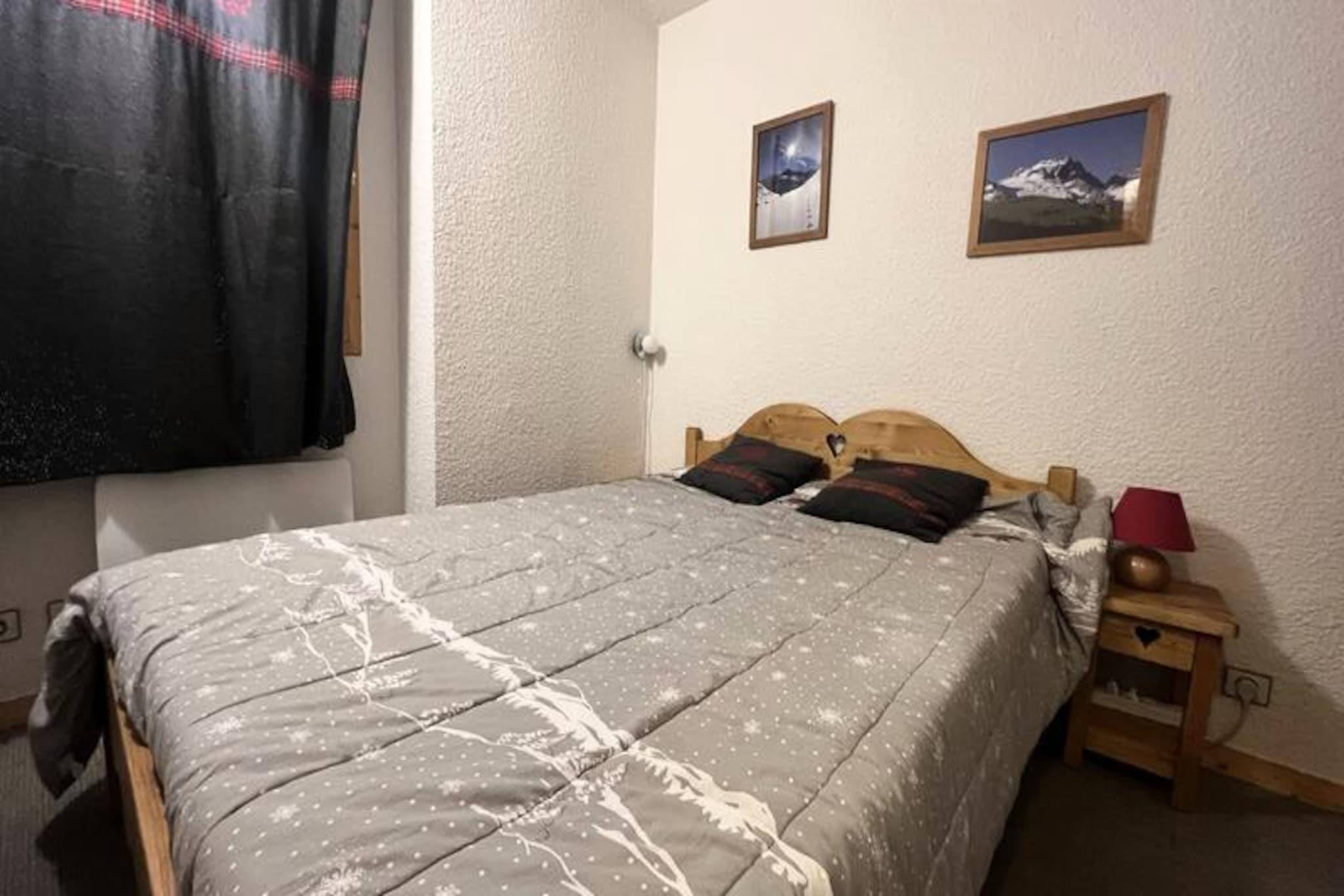 Højt over den maleriske dal Méribel Mottaret tilbyder denne charmerende lejlighed et roligt tilflugtssted omgivet af de franske alpers uberørte skønhed. Forestil dig at vågne op til den friske bjergluft og træde ud på din sydvendte balkon for at nyde den betagende udsigt over snedækkede tinder og frodige alpine landskaber. Uanset om du er her for at stå på ski på de verdensberømte pister eller blot slappe af i rolige omgivelser, er denne ejendom din port til uforglemmelige alpine eventyr. \n\nIndenfor er lejligheden omhyggeligt designet til komfort og bekvemmelighed. Stuen har en hyggelig sovesofa og et tv, perfekt til afslapning efter en dag med udforskning. Et privat soveværelse med en dobbeltseng og et værelse i hyttestil med køjesenge giver afslappende sovepladser til op til seks gæster. Det åbne køkken er fuldt udstyret med moderne apparater, herunder opvaskemaskine, vaskemaskine, køleskab og mikrobølgeovn, hvilket gør det nemt at tilberede måltider og snacks. Et separat badeværelse og toilet sikrer privatliv, mens privat Wi-Fi holder dig forbundet under hele dit ophold. \n\nResidensen Le Sérac ligger i det rolige Le Châtelet-kvarter, kun få skridt fra pisterne og inden for 500 meter fra butikker og børnepasningsfaciliteter. Kvarteret er forbundet med feriestedets centrum via en bekvem kabelbane, og parkeringspladser kan reserveres for at gøre dit ophold endnu nemmere. Om vinteren kan du nyde direkte adgang til nogle af de bedste skiløbsruter i regionen, mens sommeren forvandler området til et paradis for vandreture, cykling og naturture. \n\nUanset om du søger spændende udendørsaktiviteter eller fredelige øjeblikke i bjergene, kombinerer denne lejlighed komfort, tilgængelighed og charmen ved Méribel Mottaret for en uforglemmelig ferieoplevelse.