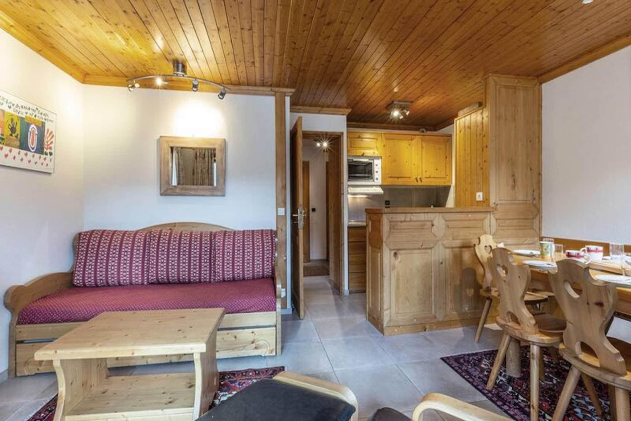 Højt over de fredfyldte skråninger i Méribel Mottaret inviterer denne charmerende lejlighed dig til at opleve magien i de franske alper. Med en betagende udsigt over Tueda-søen og Mont Vallon føles hvert øjeblik her som et postkort, der kommer til live. Uanset om du søger spændende skieventyr eller rolige alpine flugter, tilbyder denne bolig den perfekte balance mellem komfort og bekvemmelighed. Forestil dig at vågne op til frisk bjergluft og træde direkte ud på Aigle-pisten for ubesværet adgang til ESF-mødestedet og Méribels verdensklasse skiområde. \n\nIndvendigt er lejligheden omhyggeligt designet til at rumme op til otte gæster. Stuen har en hyggelig sovesofa og en udtræksseng, suppleret med et tv og en dvd-afspiller til afslappede aftener. Soveværelset har to enkeltsenge skubbet sammen, mens kahytten har køjesenge til tre. Et fuldt udstyret tekøkken inkluderer keramisk kogeplade, ovn, mikrobølgeovn, opvaskemaskine og mere - ideelt til at tilberede solide måltider efter en dag på pisterne. Moderne faciliteter som Wi-Fi, balkon, skiboks og elevator sikrer et problemfrit ophold. Lejligheden har også et badeværelse, et brusebad og et separat toilet for ekstra bekvemmelighed.\n\nBeliggende i det nye boligkvarter Le Châtelet er boligen forbundet med feriestedets centrum og butikkerne via en kabelbane, hvilket gør det nemt at udforske Méribels livlige tilbud. For ekstra bekvemmelighed kan parkeringspladser reserveres på forhånd. Om sommeren forvandles området til et paradis for vandrere og naturelskere, med stier, der fører til den uberørte skønhed ved Tueda-søen og videre.\n\nUanset om du besøger stedet for vintersport eller sommerro, lover denne lejlighed et uforglemmeligt alpint tilflugtssted i en af ??Frankrigs mest elskede bjergdestinationer.