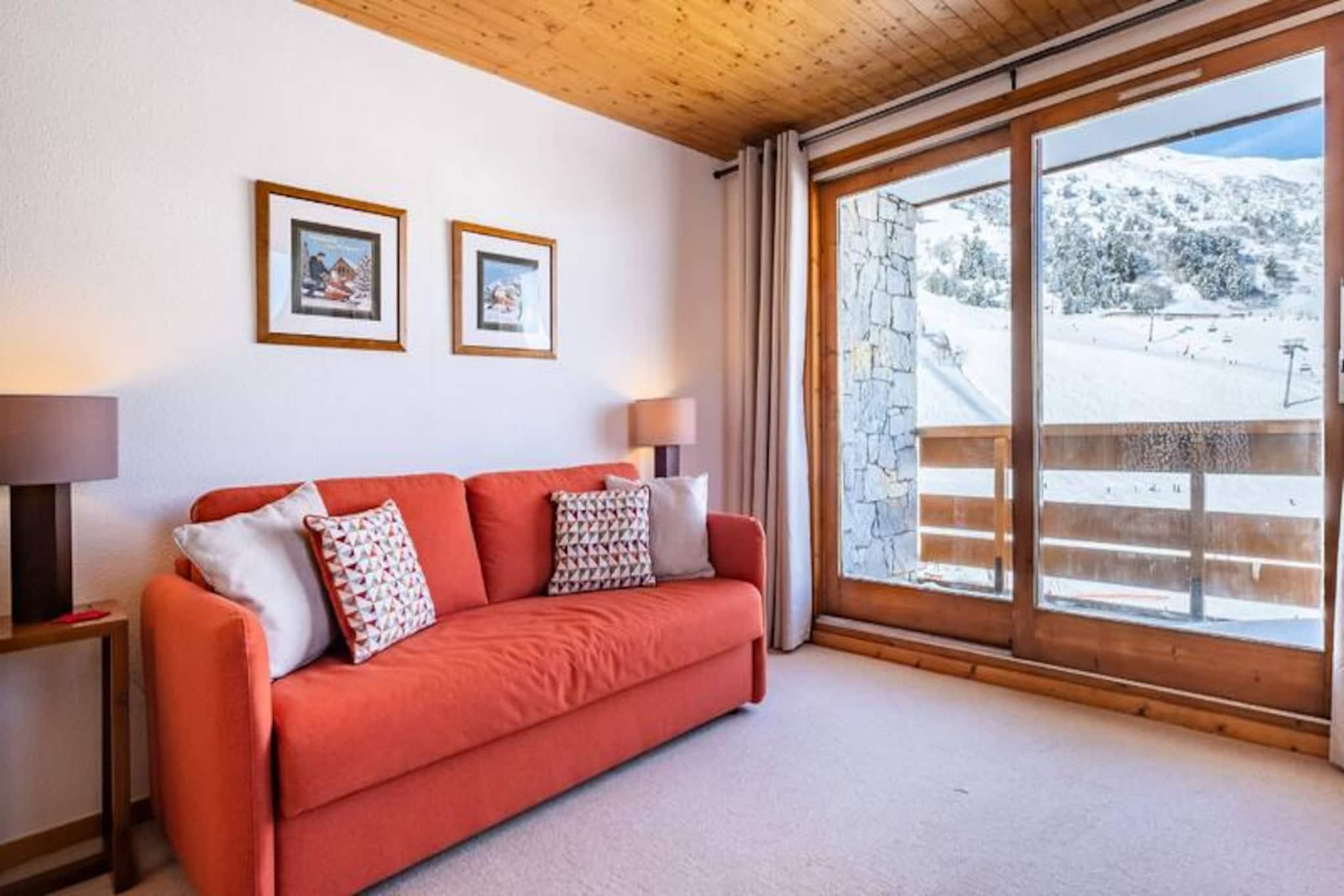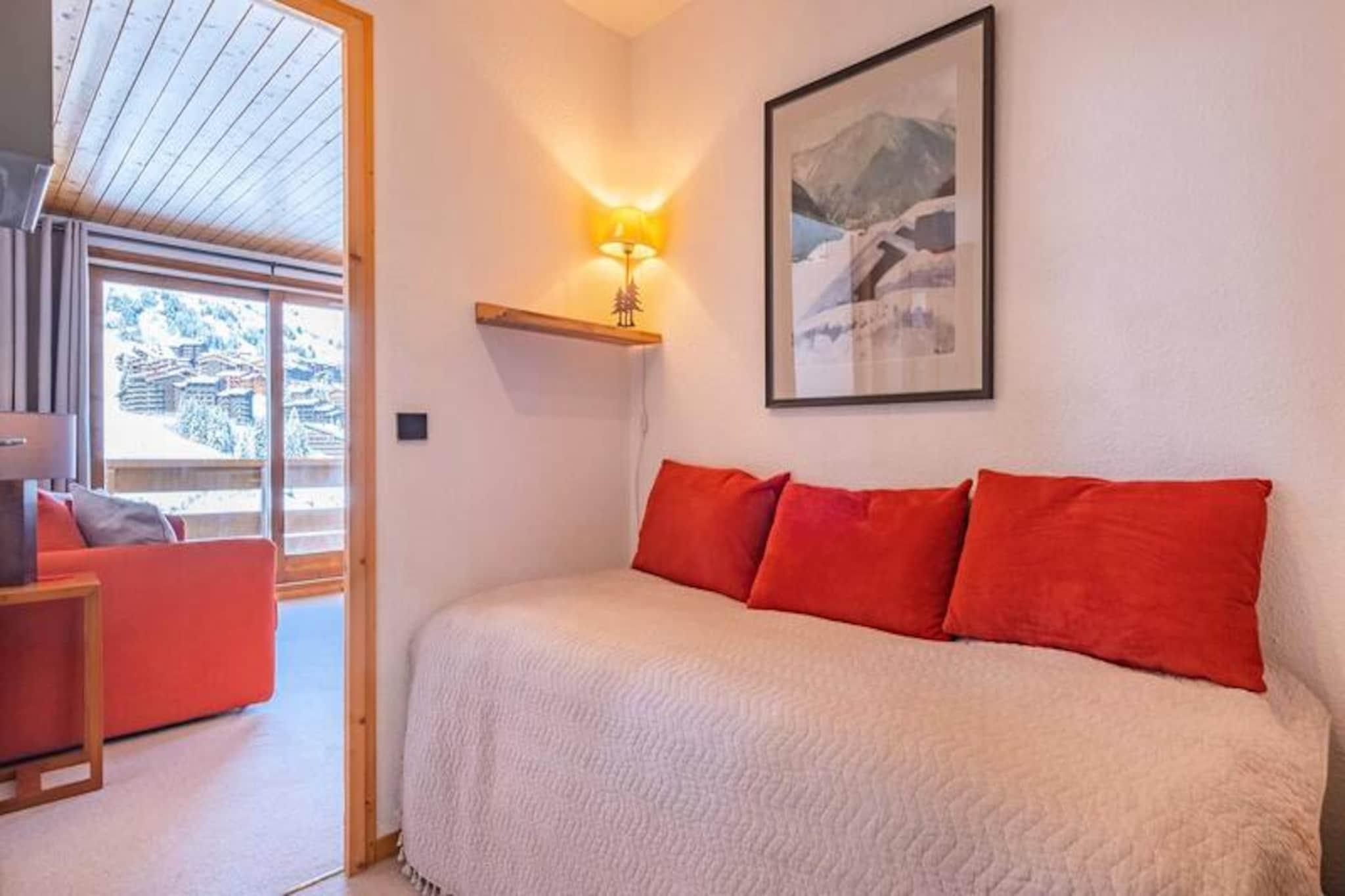 Denne hyggelige lejlighed, der ligger højt over den charmerende landsby Méribel Mottaret, tilbyder en rolig alpin oase med direkte adgang til Aigle-pisten. Forestil dig at vågne op til en betagende udsigt over Tueda-søen og Mont Vallon, træde ud på uberørt sne og stå på ski direkte til ESF-mødestedet uden at gå glip af noget. Uanset om du søger spændende vintereventyr eller rolige sommervandreture, placerer denne bolig dig i hjertet af de franske alpers naturlige skønhed og spænding. \n\nIndvendigt er lejligheden omhyggeligt designet til komfort og praktisk anvendelighed. Stuen har en sovesofa til to, mens det åbne køkken er udstyret med en mini-opvaskemaskine, elektrisk komfur og ovn, hvilket gør madlavning til en leg. En enkeltseng i entréen giver fleksibilitet, og badeværelset har badekar og separat toilet for nemheds skyld. For større grupper kan lejligheden lejes sammen med den tilstødende toværelses lejlighed med plads til op til syv gæster. Yderligere tjenester såsom lagner, håndklæder og babyudstyr kan arrangeres på forhånd for at sikre et problemfrit ophold. \n\nResidensen Les Plattières er ideelt beliggende i Le Châtelet-kvarteret, et moderne boligområde forbundet med feriestedets centrum og butikker via en kabelbane. Den høje beliggenhed tilbyder en fantastisk udsigt og nem adgang til lokale faciliteter, mens en nærliggende parkeringsplads sikrer stressfri ankomst og afgang. \n\nUanset om du snor dig gennem pudrede pister om vinteren eller udforsker frodige stier om sommeren, er denne lejlighed den perfekte base for uforglemmelige alpine eventyr. Lad det majestætiske landskab og den varme atmosfære i Méribel Mottaret skabe varige minder for dig og dine kære.