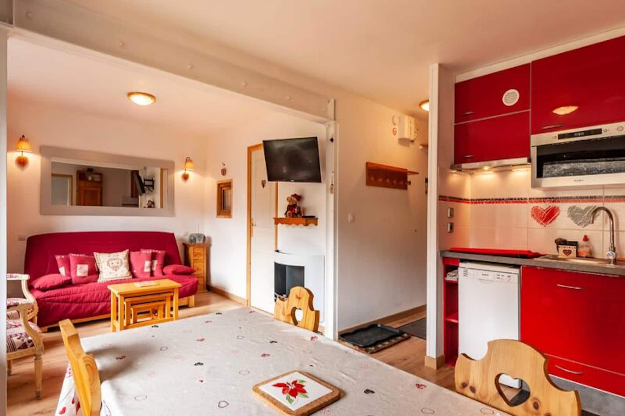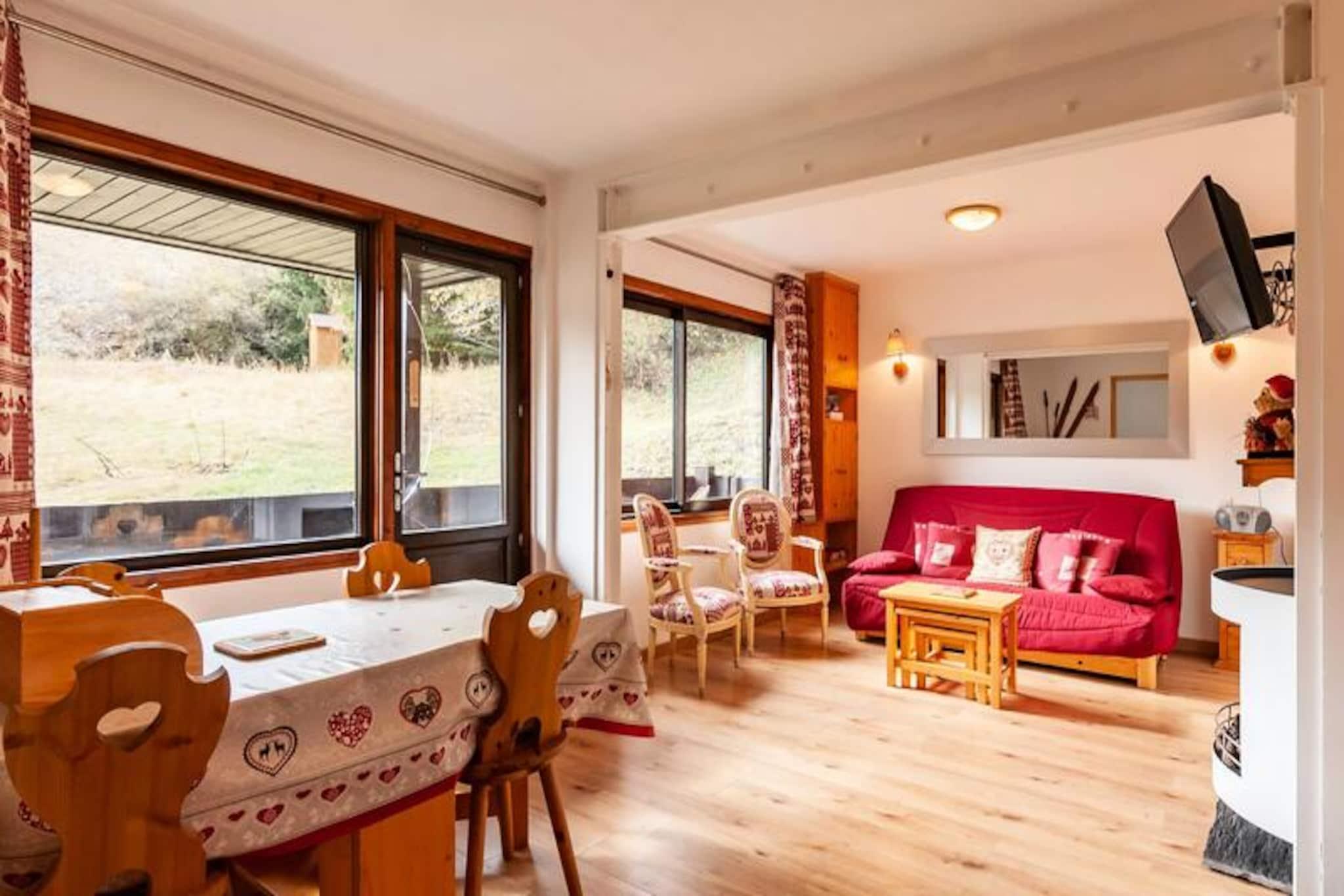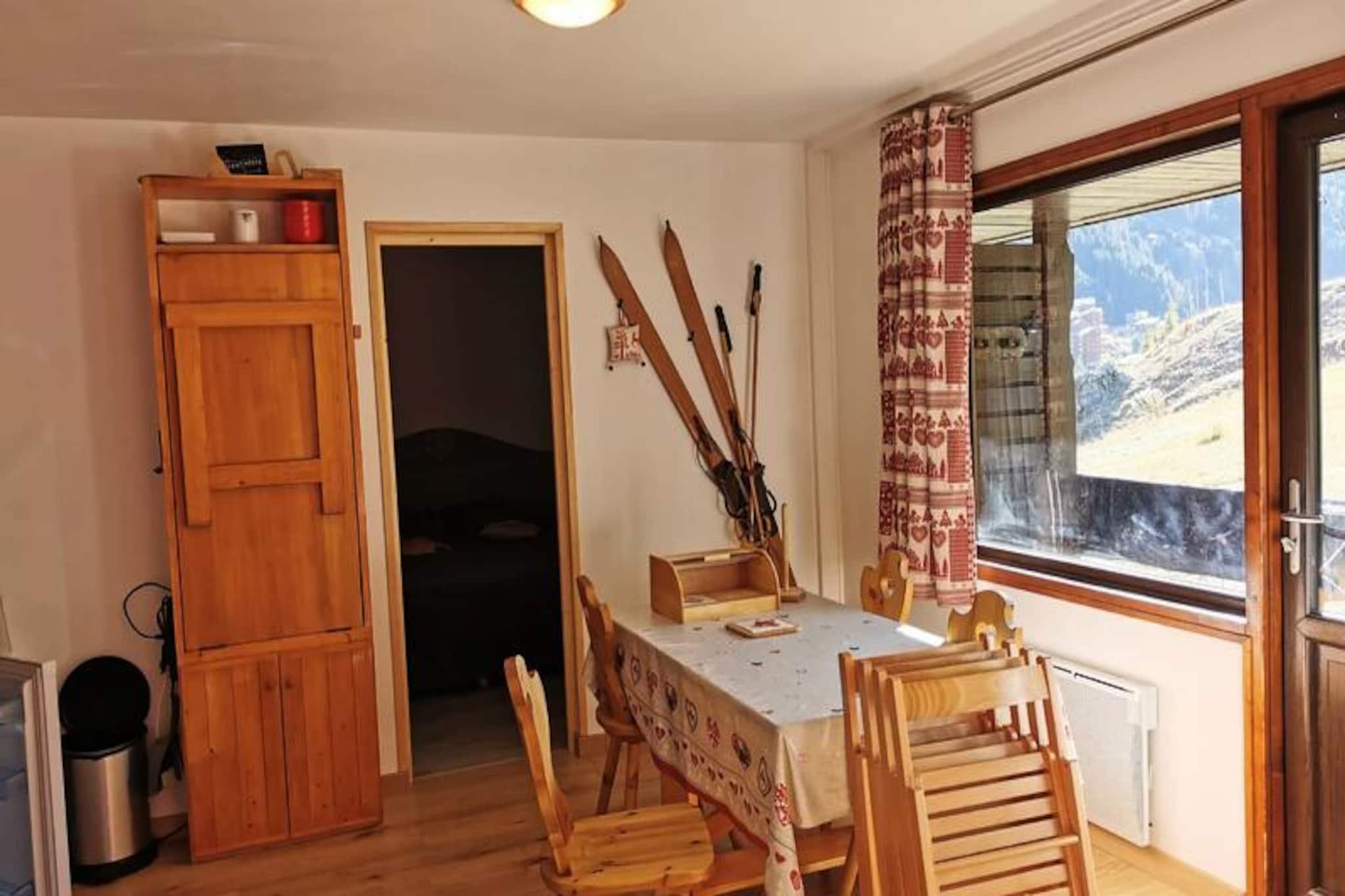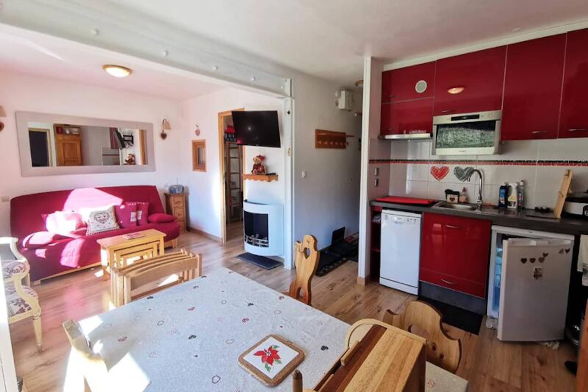 Beliggende i det fredfyldte, nedre Mottaret-område i Méribel, tilbyder denne charmerende lejlighed en problemfri ski-in/ski-out-oplevelse, hvilket gør den til en drømmedestination for vintersportsentusiaster. Forestil dig at vågne op til den friske alpine luft, træde ud på din private balkon og kigge på de snedækkede pister, der strækker sig foran dig. Med direkte adgang til pisterne begynder dit eventyr i det øjeblik, du træder udenfor, mens den nærliggende Roc de Tougne-residens sikrer ro væk fra det travle feriestedscentrum, men kun en kort gåtur fra alle dets faciliteter. \n\nIndenfor kombinerer lejligheden moderne komfort med alpin charme. Den lyse stue har en hyggelig sovesofa, lænestole og et tv, hvilket skaber et indbydende rum at slappe af efter en dag på pisterne. Det fuldt udstyrede åbne køkken inviterer dig til at tilberede solide måltider, mens master-suiten tilbyder fleksibilitet med sin sovesofa, eget badeværelse og privat balkon til øjeblikke med fred. Et separat bjerghjørne med køjesenge, et påklædningsværelse og en skistøvletørrer sikrer praktisk anvendelighed for familier eller grupper. Yderligere bekvemmeligheder inkluderer et brusebad, sikre skibokse og ikke-rygerregler for at garantere et behageligt ophold. \n\nRoc de Tougne-residensen er ideelt beliggende kun fem minutter fra feriestedets centrum, hvor du finder ESF-skiskolen, turistkontoret og en række butikker, barer og restauranter. Uanset om du søger afterskiing eller en rolig aften derhjemme, er alt inden for rækkevidde. Méribel Mottarets pulserende atmosfære kombineret med denne lejligheds førsteklasses beliggenhed og gennemtænkte faciliteter lover en uforglemmelig alpeferie. Book nu for at opleve magien i de franske alper på første hånd.