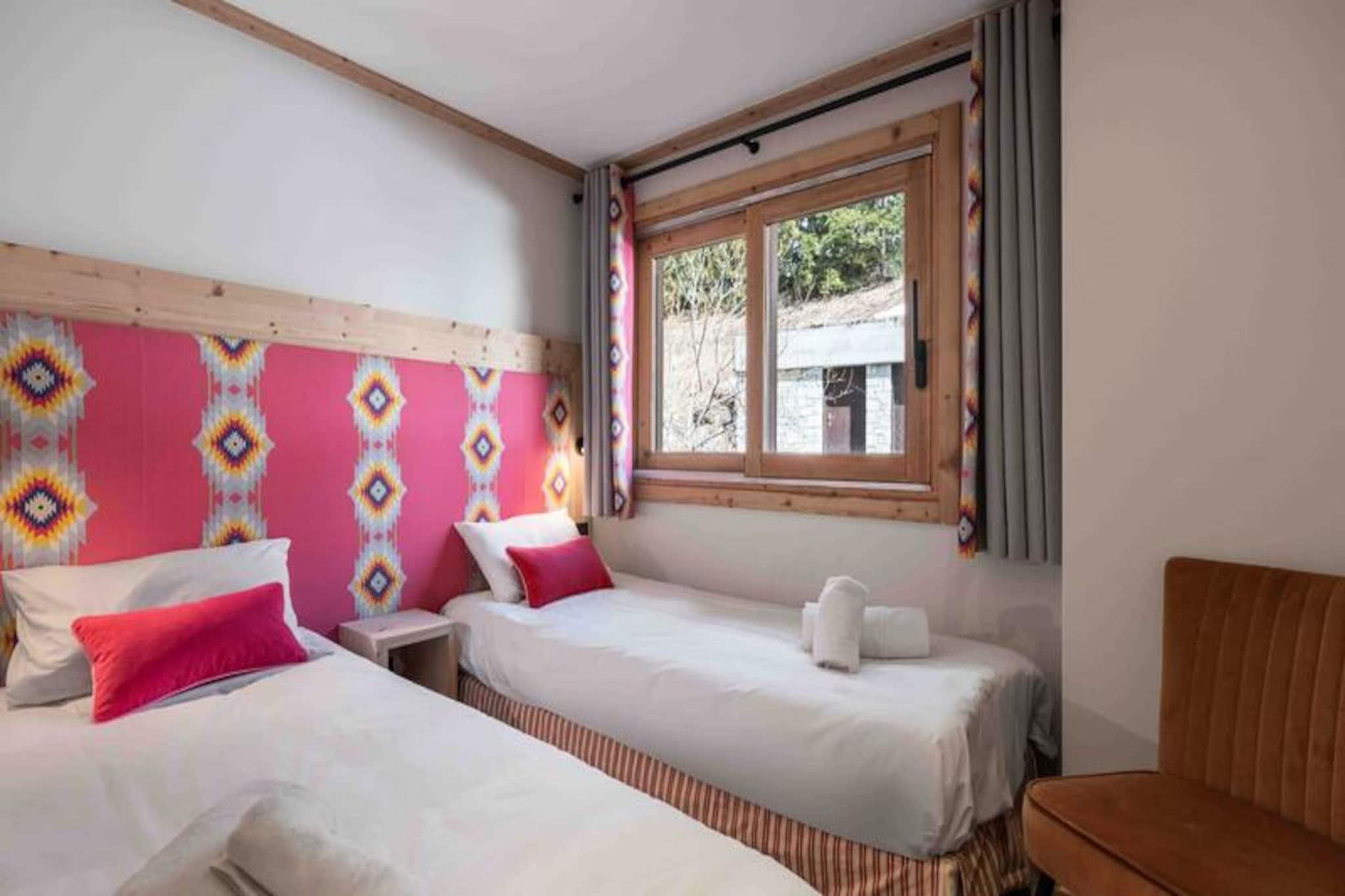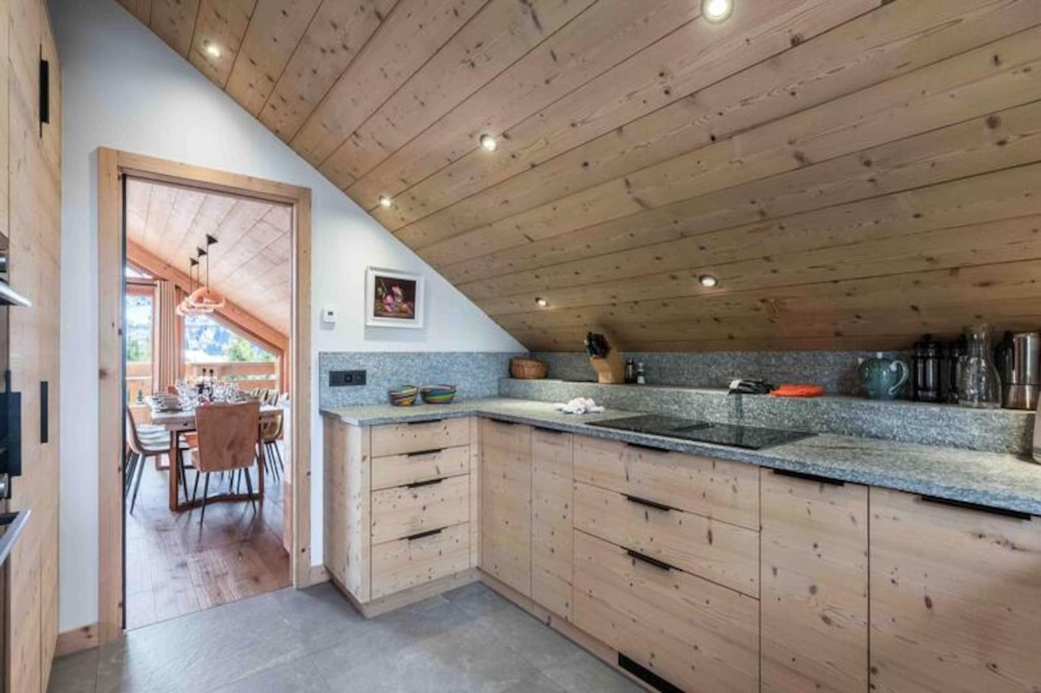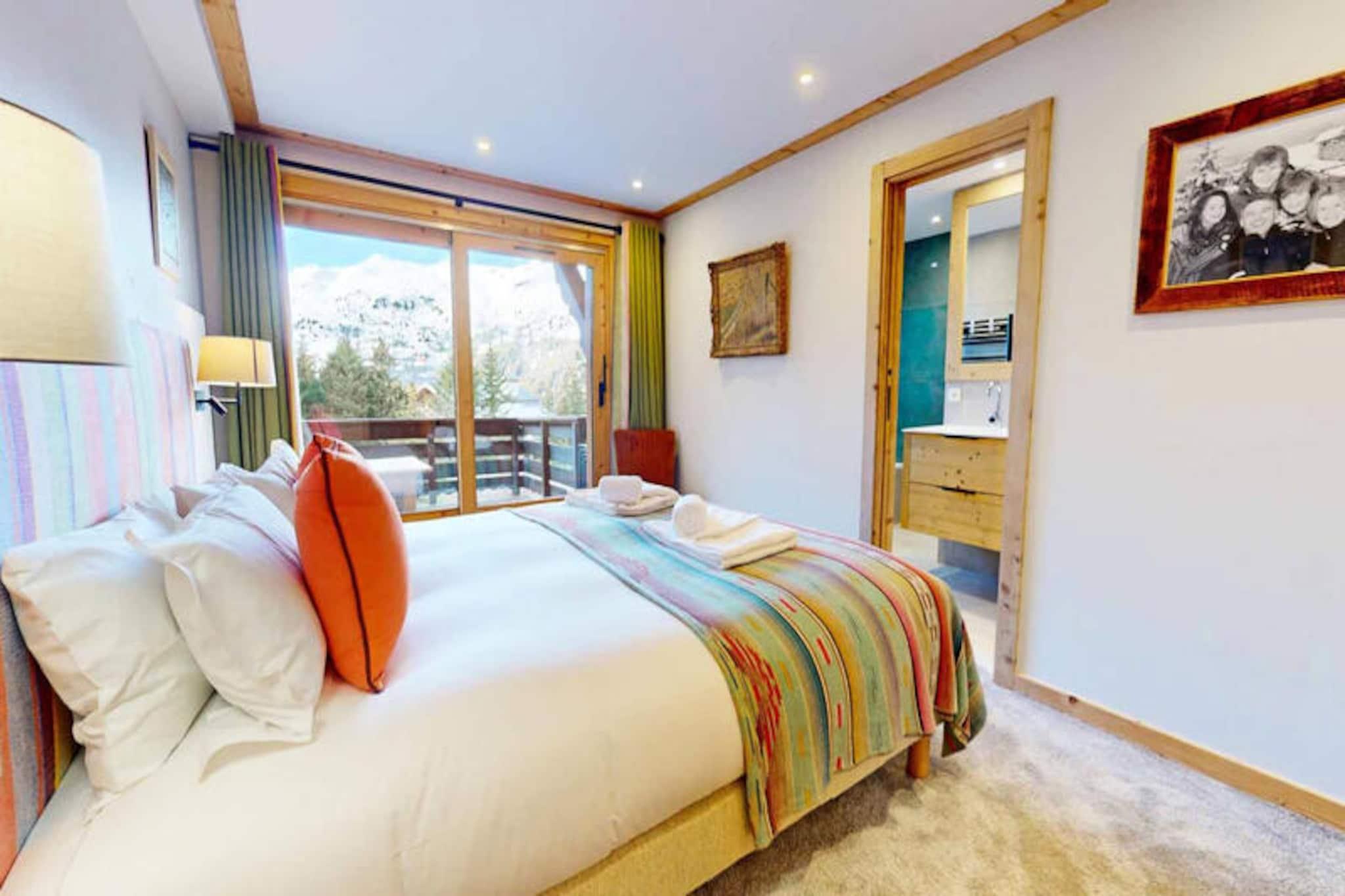 Højt over den charmerende landsby Méribel, i det fredfyldte Belvédère-distrikt, ligger den udsøgte Chanteclair A-lejlighed. Dette fredelige tilflugtssted tilbyder en perfekt blanding af alpin luksus og bekvemmelighed, ideelt for familier eller grupper, der søger en rolig flugt, mens de bor tæt på hjertet af begivenhederne. Med pisterne kun få skridt væk og Rhodos-svævebanens mellemstation blot 80 meter fra din dør, begynder dine bjergeventyr i det øjeblik, du træder udenfor. Den omkringliggende udsigt over snedækkede tinder og uberørte skove skaber en magisk baggrund for dit ophold. Denne sydvendte duplex, der strækker sig over imponerende 190 m², er omhyggeligt designet til at rumme op til otte gæster i uovertruffen komfort. Første sal har fire smukt indrettede soveværelser med eget badeværelse, der hver især tilbyder luksuriøst sengetøj og private badeværelser. To af soveværelserne åbner ud til balkoner, der inviterer dig til at nyde den friske bjergluft. Anden sal er et afslapningsparadis med en rummelig opholdsstue centreret omkring en hyggelig pejs, perfekt til at slappe af efter en dag på pisterne. Det fuldt udstyrede køkken, komplet med vinkøler og moderne apparater, gør det nemt at tilberede mindeværdige måltider til deling med dine kære. Træd ud på den solbeskinnede terrasse, og lad den betagende alpine udsigt betage dig. Belvédère-kvarteret byder på en fredelig atmosfære, men er alligevel bekvemt tæt på Méribels butikker, restauranter og Rond-Point-området, hvor skiskoler og børnehaver er let tilgængelige. En lille shuttlebus betjener området, selvom mange gæster foretrækker bekvemmeligheden ved at gå eller køre. Efter en dag med skiløb eller udforskning kan du vende tilbage til dit private skirum med en støvletørrer, så du er klar til endnu en dag med eventyr. Med sin exceptionelle beliggenhed, luksuriøse faciliteter og varme alpine charme lover Chanteclair A en uforglemmelig bjergferie. Uanset om du er her for at grave dig gennem frisk puddersne eller blot slappe af ved pejsen, tilbyder denne bolig de perfekte rammer for kære minder i hjertet af de franske alper.