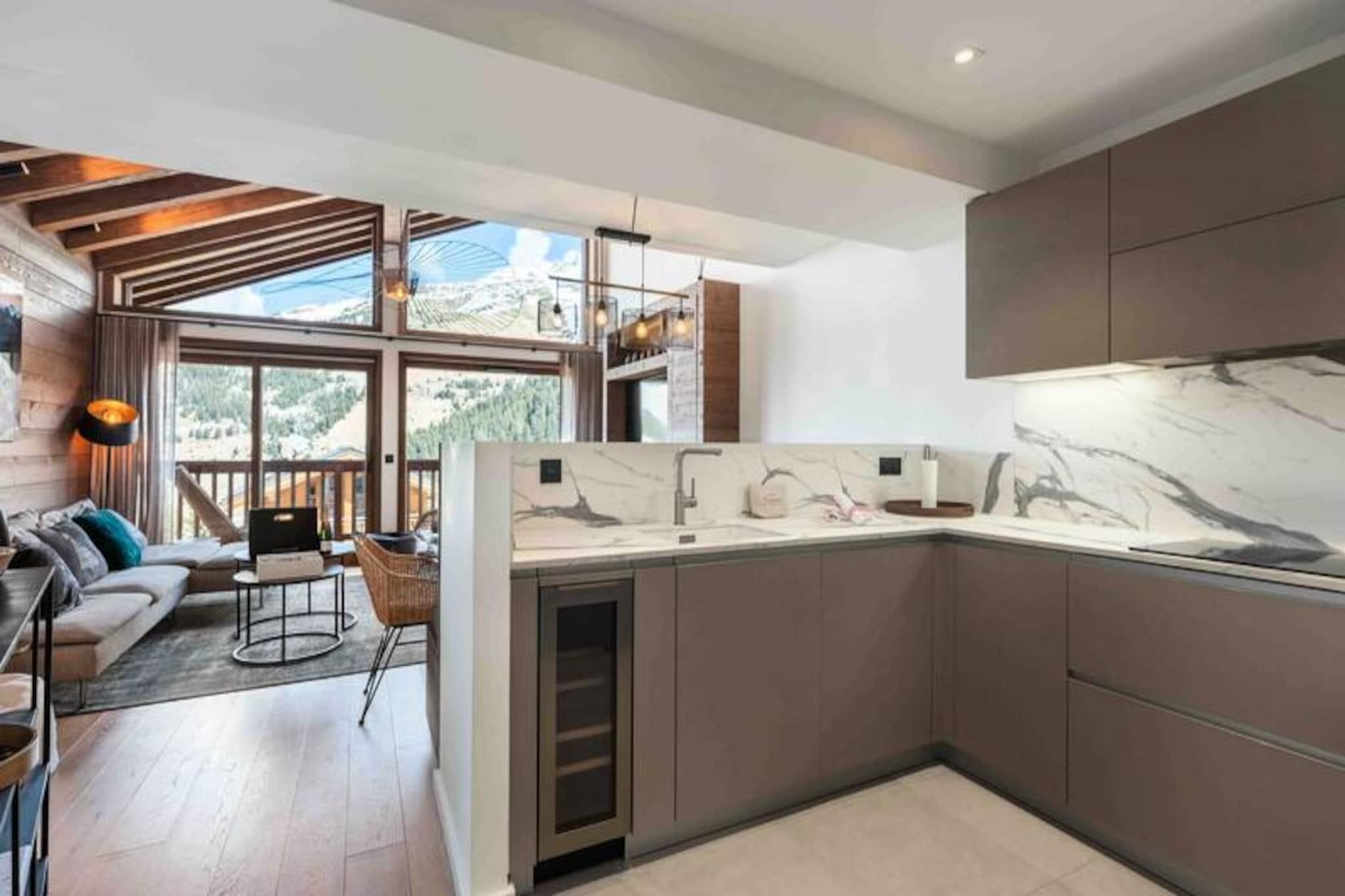Højt over den maleriske Méribel-dal tilbyder denne elegante lejlighed på 80 m² i Méribel-Mottaret et roligt alpint tilflugtssted med uovertruffen adgang til pisterne. Forestil dig at vågne op til panoramaudsigt over snedækkede tinder fra din sydvendte balkon, indånde den friske bjergluft og træde ind i en verden af ??eventyr kun 200 meter væk. Uanset om du er her for spændingen ved skiløb eller naturens ro, kombinerer denne bolig perfekt moderne komfort med charmen ved de franske alper. Indenfor er lejligheden omhyggeligt designet til at rumme op til seks gæster. Det åbne køkken er fuldt udstyret med high-end apparater, herunder en Nespresso-maskine og en vinkælder, hvilket gør det til en fornøjelse at tilberede måltider efter en dag på pisterne. Stuen med sin hyggelige sofa og fjernsyn åbner ud til balkonen og tilbyder et perfekt sted at slappe af. Soveværelserne er afslapningssteder med bløde dobbeltsenge, eget badeværelse og endda balkonadgang til en privat flugt. Et kahytrum med køjesenge tilføjer et legende præg, ideelt for familier med børn. Yderligere faciliteter som et skirum med støvletørrer, Wi-Fi og overdækket parkering sikrer et problemfrit ophold. Ud over lejligheden er Méribel-Mottaret en indgangsport til uendelige alpine aktiviteter.