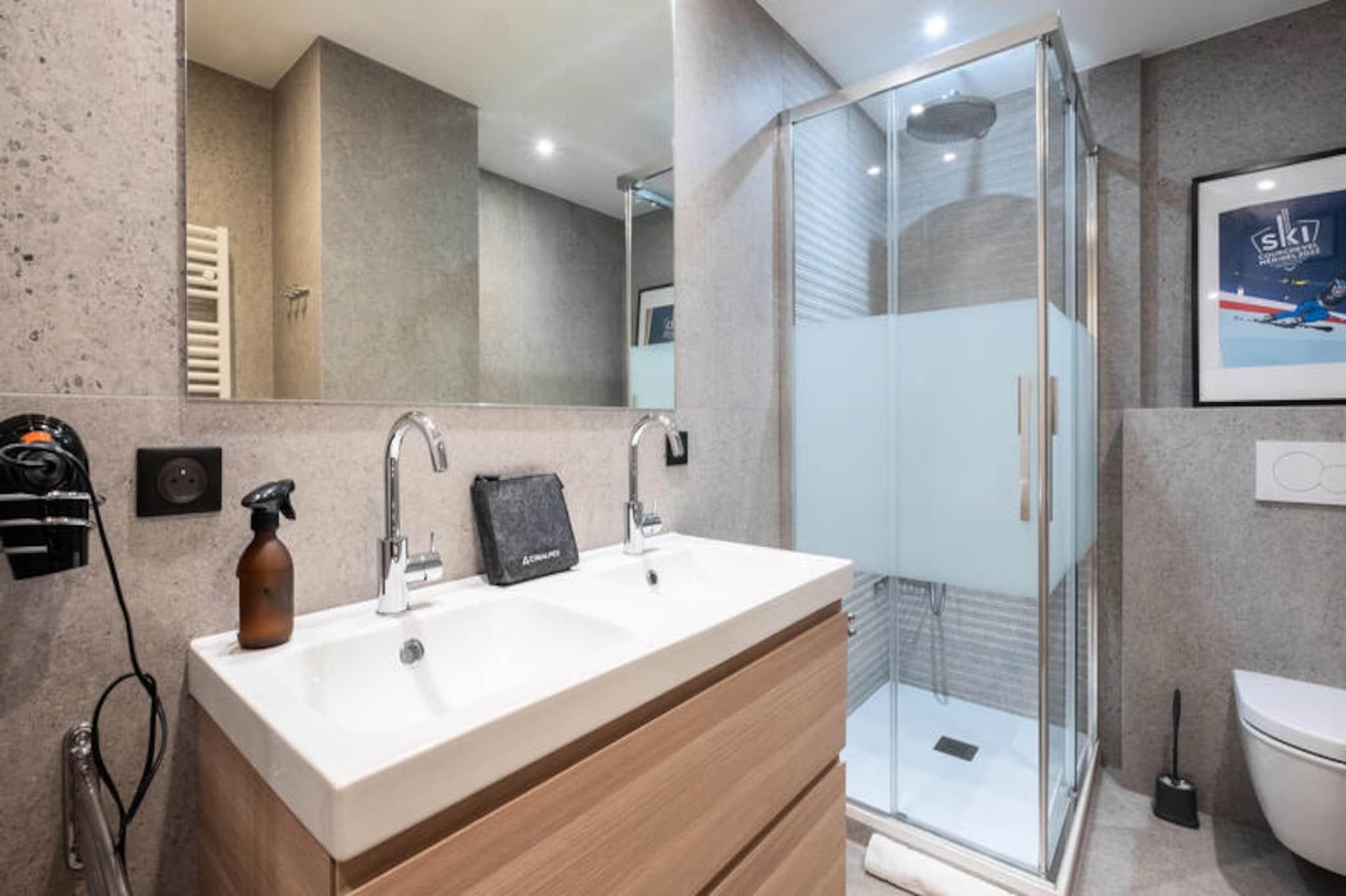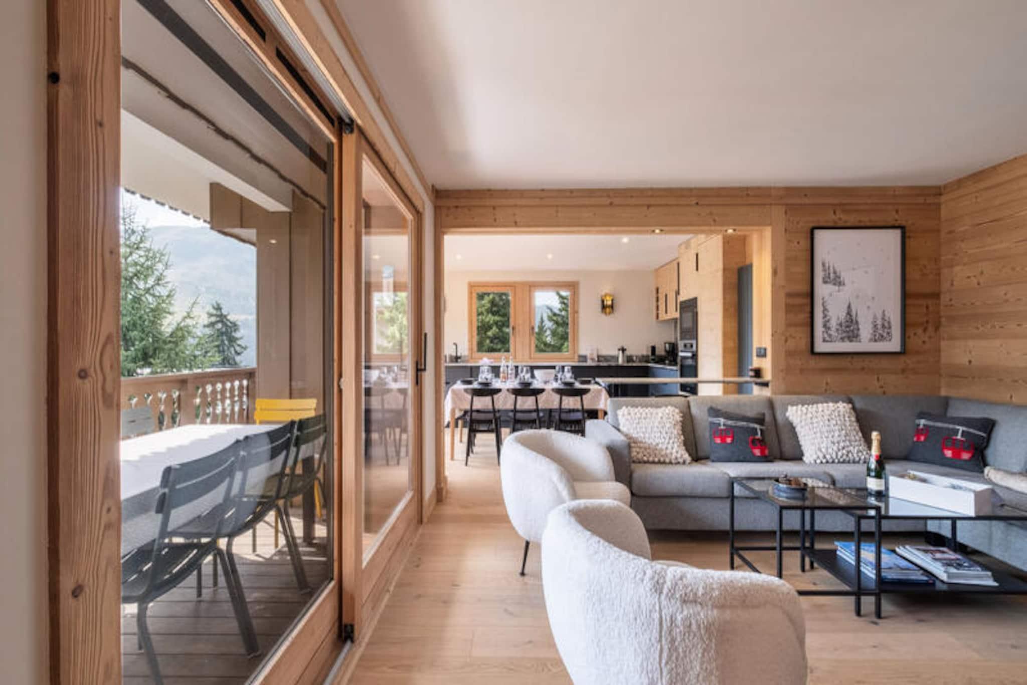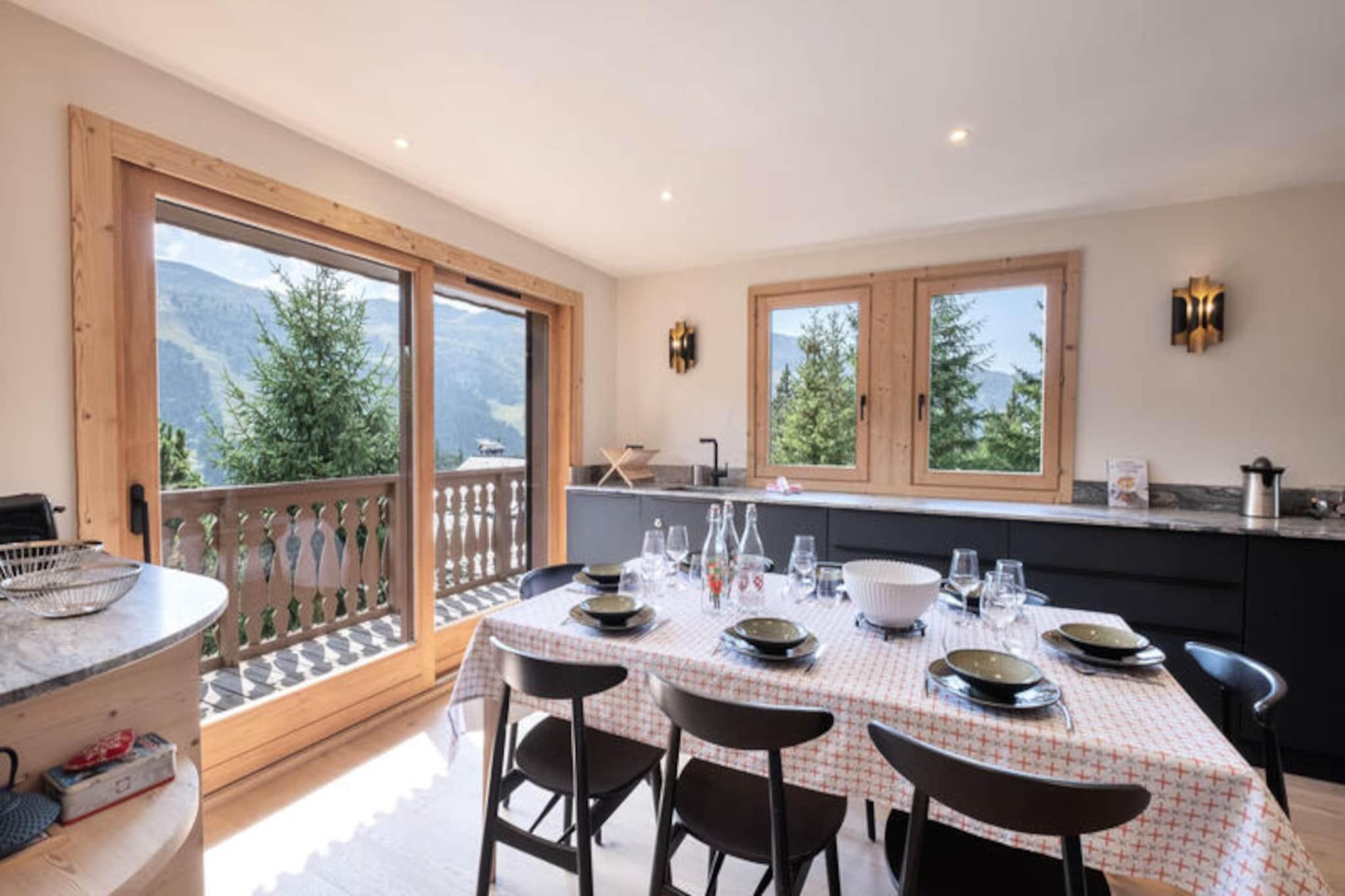 Midt i den fredfyldte charme i Méribels Belvédère-distrikt tilbyder denne lysende lejlighed på 110 m² i Ours Brun-residensen et enestående alpint tilflugtssted. Omgivet af majestætiske grantræer og kun få skridt fra pisterne kombinerer den ro med bekvemmeligheden ved ski-in/ski-out-adgang. Her kan familier og grupper fordybe sig i de franske alpers skønhed, mens de nyder nærheden til skiskolen og børneområdet ved Rond-Point, kun en kort gåtur væk. De fredelige omgivelser suppleres af områdets tilgængelighed, uanset om det er til fods, i bil eller med den lokale shuttle-service. Indvendigt sikrer lejlighedens gennemtænkte planløsning både komfort og stil. Den rummelige stue, badet i naturligt lys, har en hyggelig pejs, en sydvendt balkon og et fuldt udstyret køkken med moderne apparater, herunder en Nespresso-maskine, induktionskogeplade og opvaskemaskine. Fire indbydende soveværelser tilbyder fleksible sovearrangementer: to med luksuriøse dobbeltsenge, et med to enkeltsenge og en master suite med eget brusebad og tv. Yderligere faciliteter inkluderer et separat badeværelse, et brusebad med toilet og en vaskemaskine med tørretumbler, hvilket sikrer et problemfrit ophold for op til otte gæster. Ud over lejligheden venter Méribels livlige tilbud. Fra charmerende butikker og restauranter til spændende skiløjper og afterski-aktiviteter, imødekommer regionen enhver rejsendes ønsker. Om sommeren forvandles landskabet til et paradis for vandreture, cykling og naturudforskning. Med sin idylliske beliggenhed, moderne komfort og uovertrufne adgang til pisterne er denne bolig det perfekte valg til at skabe dyrebare alpine minder året rundt.