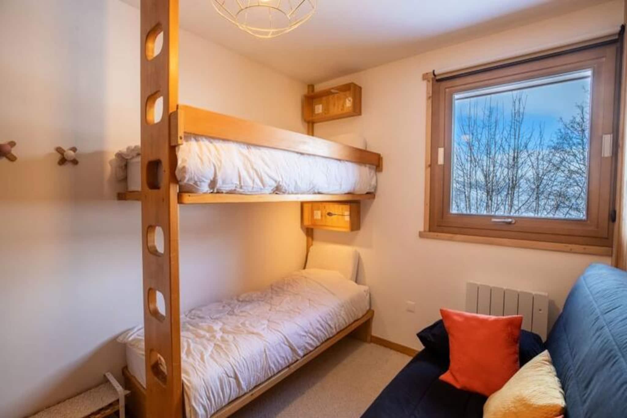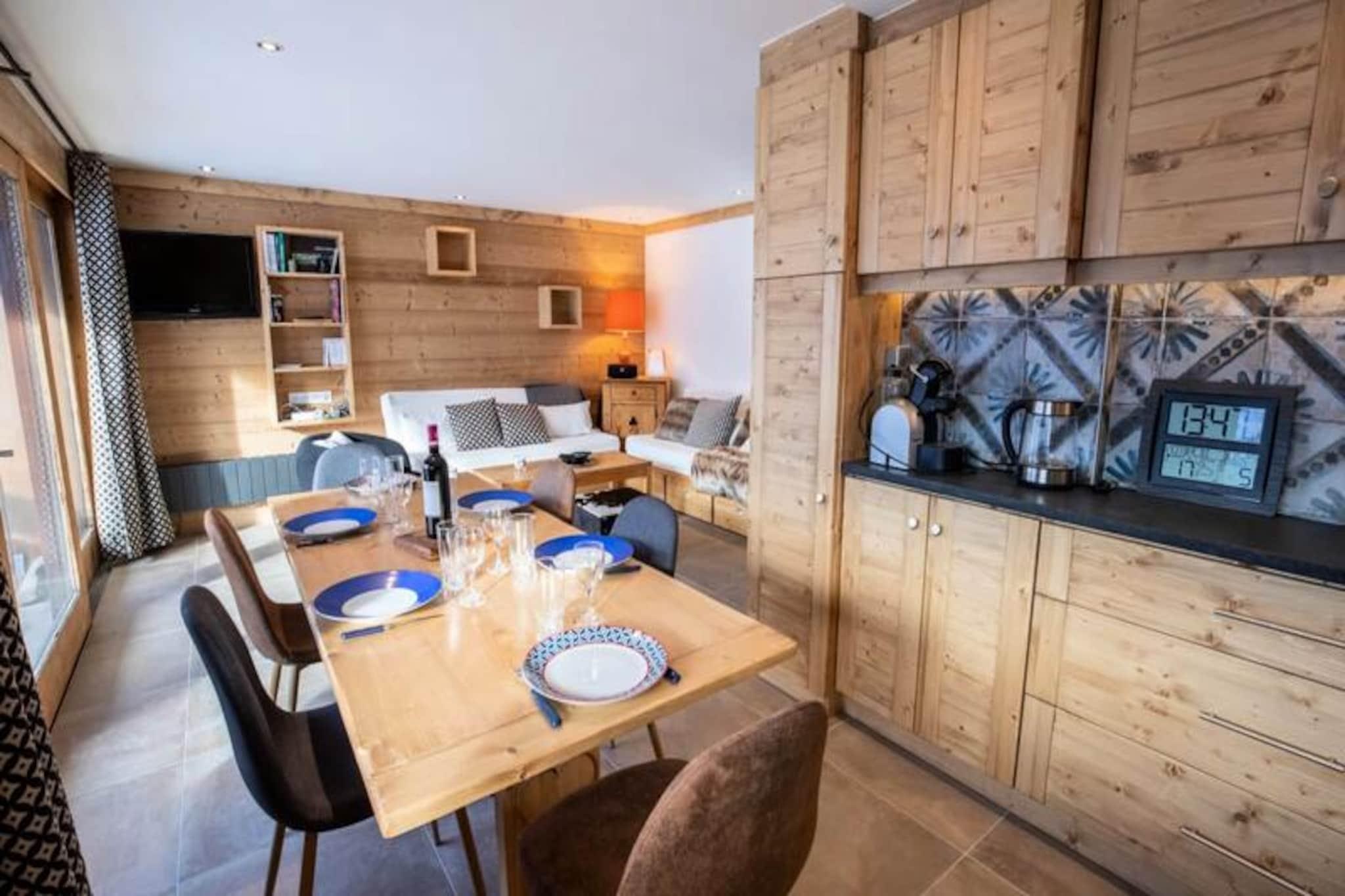 Forestil dig at vågne op til den friske alpeluft og træde ud til en betagende udsigt over bjergene, kun 50 meter fra Morel-stoleliften i hjertet af Méribel. Denne smukt renoverede lejlighed i Les 3 Marches-residensen tilbyder den perfekte blanding af komfort og bekvemmelighed til din bjergferie. Uanset om du er her for at slentre gennem de uberørte skråninger i Les Trois Vallées eller blot slappe af i rolige alpine omgivelser, lover denne ejendom et uforglemmeligt ophold. Lejligheden er designet til at rumme op til seks gæster og har to hyggelige soveværelser: et med en luksuriøs dobbeltseng og eget brusebad og et andet med charmerende køjesenge. Den rummelige stue med sovesofa inviterer dig til at slappe af efter en dag med eventyr. Et andet badeværelse med badekar sikrer ekstra komfort, mens det fuldt udstyrede køkken - med brødrister, elkedel, opvaskemaskine, kaffemaskine og endda et raclette- og fondue-sæt - gør det nemt at tilberede solide måltider til deling med dine kære. Privat parkering lige foran residensen øger bekvemmeligheden. Beliggende i det populære Morel-område har du hurtig adgang til pisterne og en kort 5-10 minutters gåtur til Méribels pulserende centrum. Hulotte-pisten giver dig mulighed for at stå på ski direkte tilbage til Morel-stoleliften, mens nærliggende faciliteter inkluderer et Sherpa-supermarked, berømte restauranter som Alti 16 og Tsaretta Spice samt en skishop. Gratis shuttle-service forbinder dig ubesværet med resten af ??feriestedet, så du kan udforske alt, hvad de 3 dale har at byde på. Uanset om du er tiltrukket af spændingen ved skiløb, Méribels charme eller komforten i et veludstyret bjergparadis, er denne lejlighed din indgang til en ekstraordinær alpin ferie. Lad magien i de franske alper skabe minder for livet.