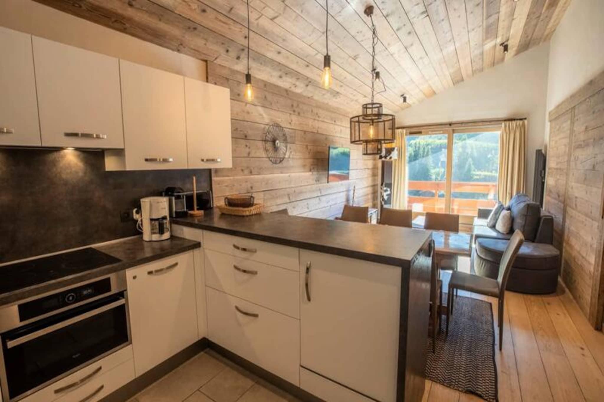 Højt over den fortryllende Méribel Mottaret tilbyder denne fantastiske penthouselejlighed et uovertruffent alpint tilflugtssted for op til otte gæster. Badet i sollys og omgivet af betagende bjergudsigt kombinerer denne luksuriøse duplex Alpernes rustikke charme med moderne elegance og skaber uforglemmelige rammer for din skiferie. Beliggende kun få skridt fra pisterne i Châtelet-distriktet er det den perfekte base for at udforske det verdensberømte skiområde Les Trois Vallées. Indvendigt kan lejligheden prale af et fuldstændig renoveret interiør med elegante detaljer og gennemtænkt design. Det åbne køkken, udstyret med topmoderne apparater, flyder problemfrit ind i en rummelig opholdsstue med højt til loftet og et stort karnapvindue, der oversvømmer rummet med naturligt lys. En anden stue, som kan omdannes til et soveværelse med en blød 160 cm sovesofa, tilbyder ekstra komfort og fleksibilitet. Soveværelset med en luksuriøs 160 cm seng åbner ud til en sydvendt terrasse, hvor du kan nyde panoramaudsigten over bjergene. Yderligere sovepladser inkluderer et hyggeligt køjesengsværelse og et soveværelse på mezzaninen med eget badeværelse, komplet med spabad. Et andet badeværelse med bruser og separat toilet sikrer bekvemmelighed for alle gæster. Efter en dag på pisterne kan du slappe af i spaen eller nyde et måltid tilberedt med de medfølgende raclette- og fondue-sæt. Moderne faciliteter såsom Wi-Fi, privat garage, skiboks og vaskemaskine sikrer et problemfrit ophold. Yderligere tjenester, herunder levering af liftkort, rabatter på leje af udstyr og muligheder for privat kok, er tilgængelige for at forbedre din oplevelse. Lejligheden ligger mindre end 100 meter fra pisterne og tilbyder uovertruffen adgang til ski ind/ski ud. Et minimarked ved foden af ??bygningen tilbyder frisk bagværk og fornødenheder, mens nærliggende restauranter langs pisterne inviterer dig til at nyde lokale smagsoplevelser. Den gratis shuttlebus, der stopper lige udenfor, gør det nemt at udforske dalen. Uanset om du er her for spændingen ved skiløb eller roen i bjergene, lover denne penthouselejlighed en virkelig magisk ferie.