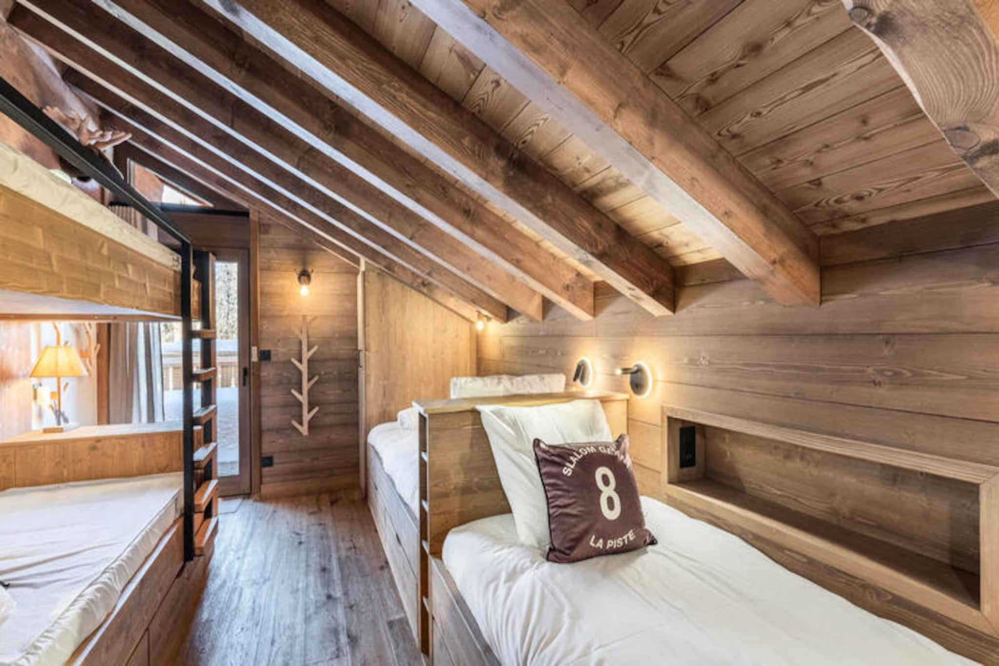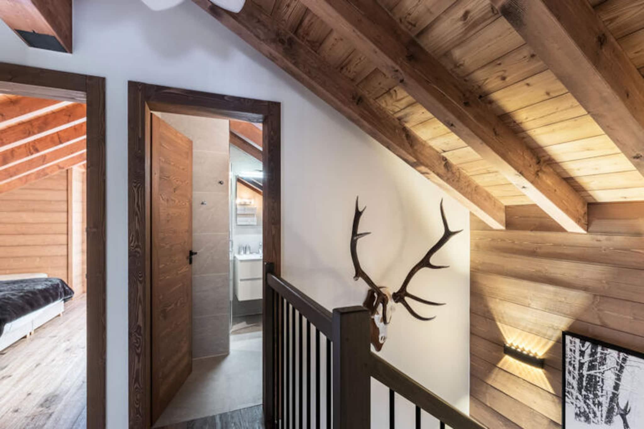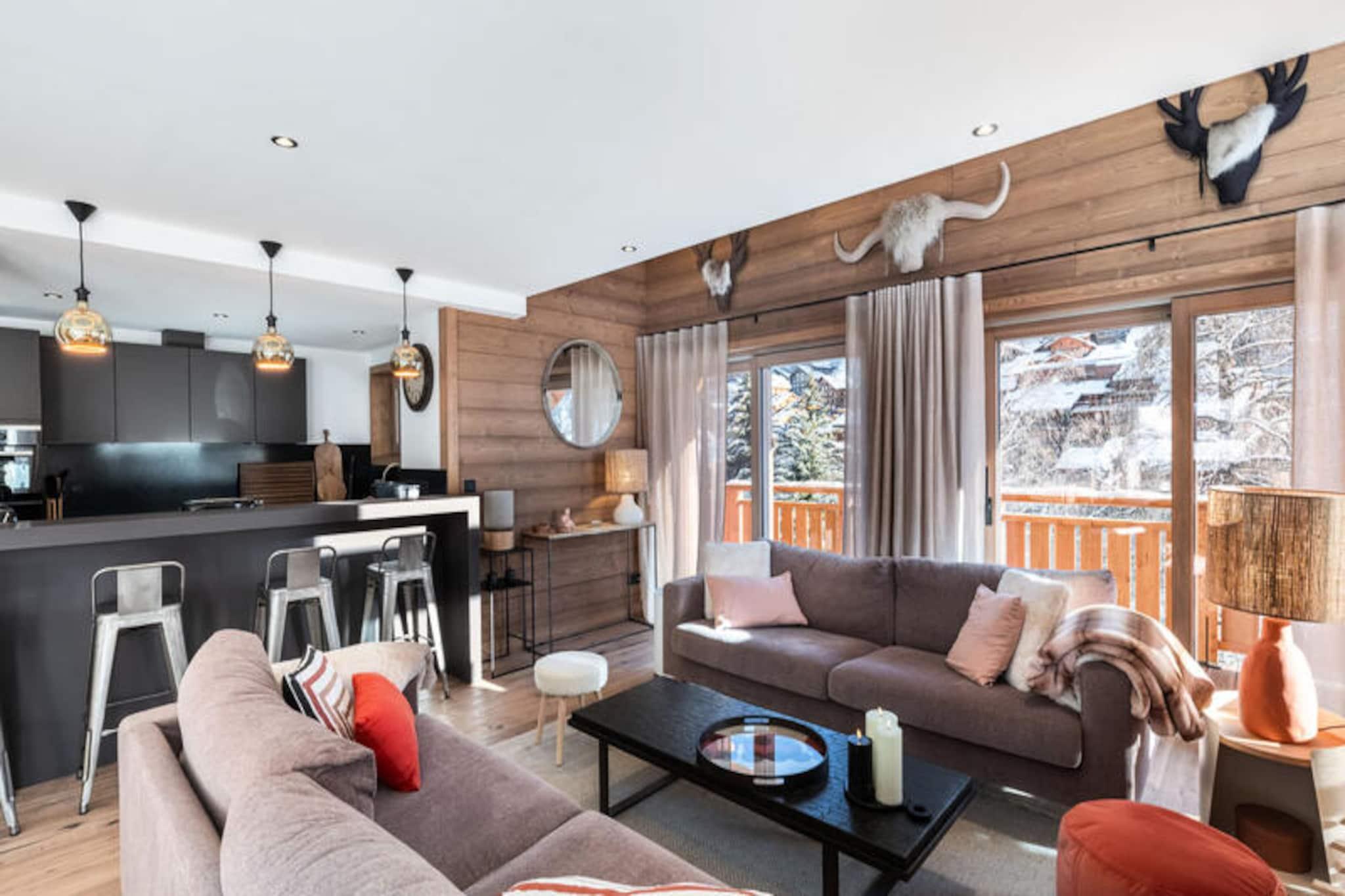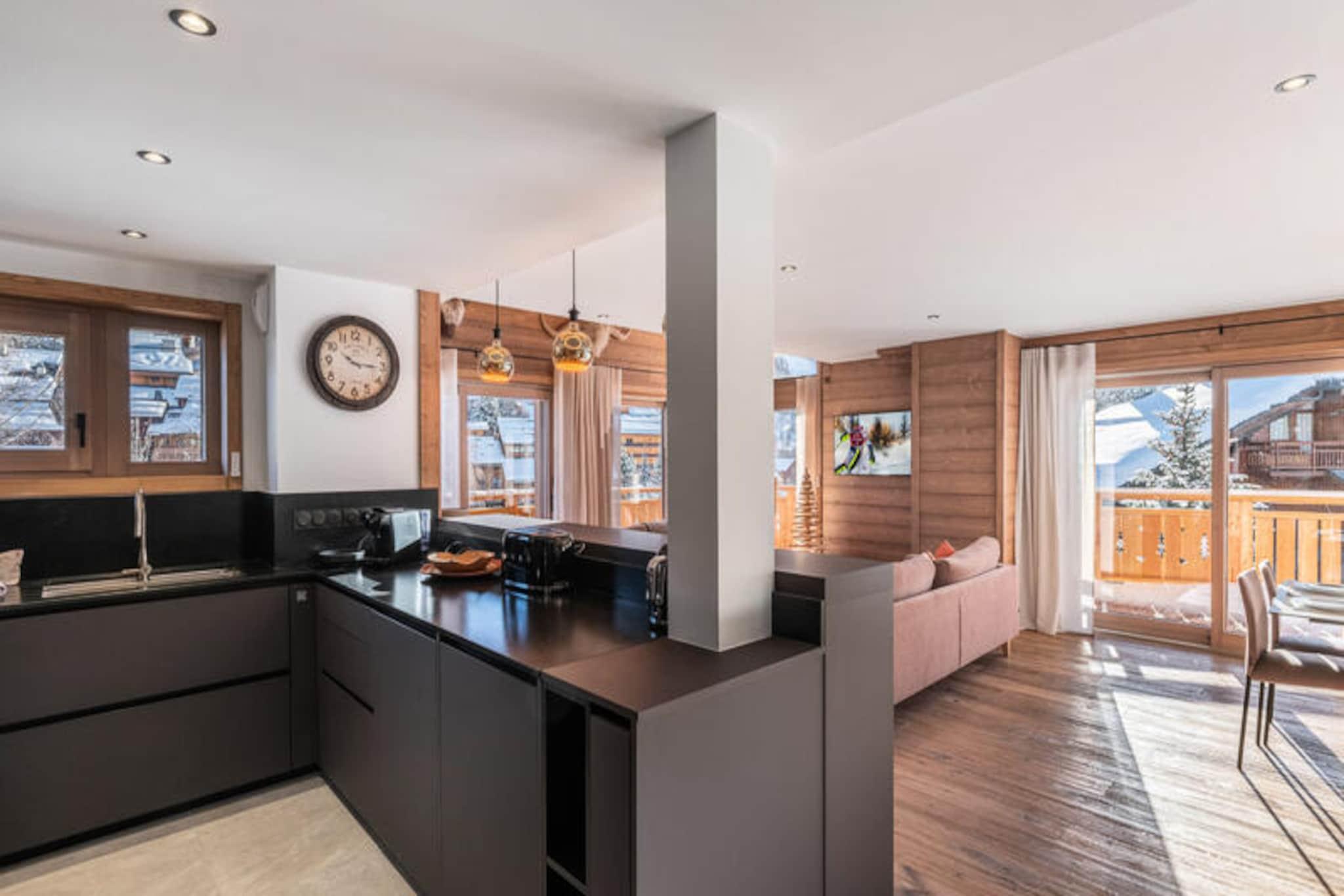 I hjertet af Méribels charmerende Dou du Pont-område tilbyder denne elegante duplexlejlighed et luksuriøst alpint tilflugtssted for familier og grupper. Med sin sydøstvendte orientering er ejendommen badet i naturligt lys og tilbyder en fantastisk udsigt over de omkringliggende tinder. Kun en kort gåtur fra byens centrum og kun 200 meter fra den gratis shuttle-stoppested kombinerer denne beliggenhed bekvemmelighed med ro, hvilket gør den til en ideel base for at udforske skiområdet Les Trois Vallées. Lejligheden strækker sig over to etager og er på 145 m² og har komfortabel plads til op til 8 voksne og 4 børn. Første sal har en rummelig åben stue, spisestue og køkkenal med et hyggeligt tv-hjørne og en balkon udstyret med havemøbler - perfekt til at slappe af efter en dag på pisterne. To dobbeltværelser med eget badeværelse på denne etage sikrer privatliv og komfort. Ovenpå finder du to soveværelser med to enkeltsenge, det ene med privat balkon, og en charmerende sovesal med køjesenge og enkeltsenge, ideel til yngre gæster. Moderne faciliteter såsom støvletørrer, vaskeri og en lukket garage med et skistativ bidrager til bekvemmeligheden under dit ophold. Méribels pulserende bymidte ligger kun få minutter væk og tilbyder en dejlig blanding af butikker, restauranter og afterski-muligheder. Den gratis shuttle-service sikrer nem adgang til de omfattende skilifte og pister i den verdensberømte Les Trois Vallées. Om sommeren forvandles området til et paradis for vandreture, mountainbiking og naturudforskning med betagende alpine landskaber på alle sider. Uanset om du søger spændende vintereventyr eller en rolig sommerferie, lover denne smukt designede duplex et uforglemmeligt ophold i hjertet af de franske alper.
