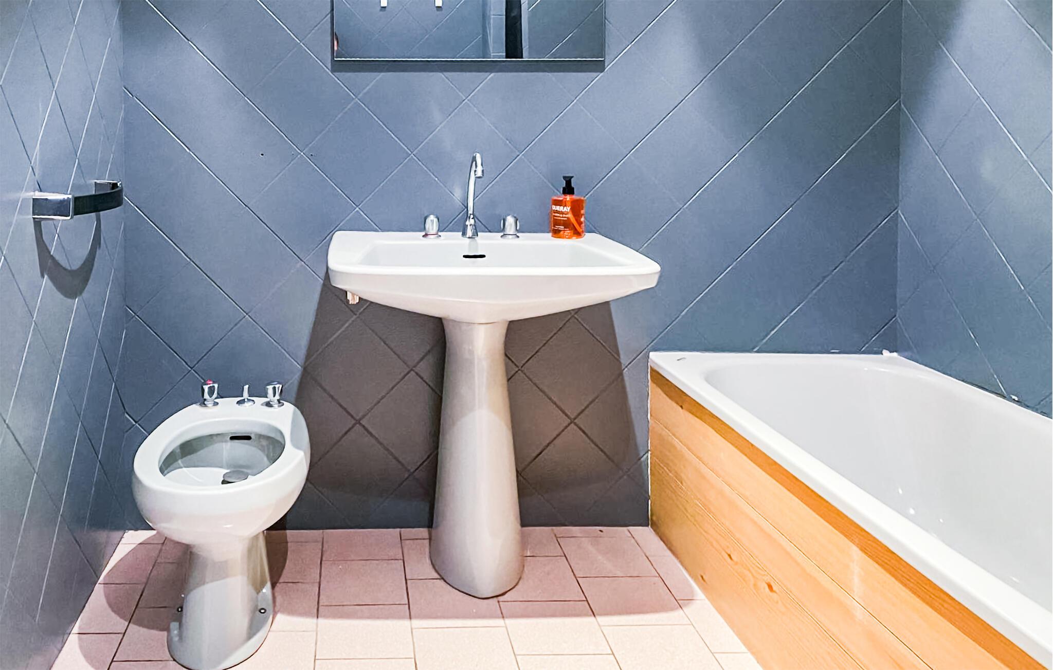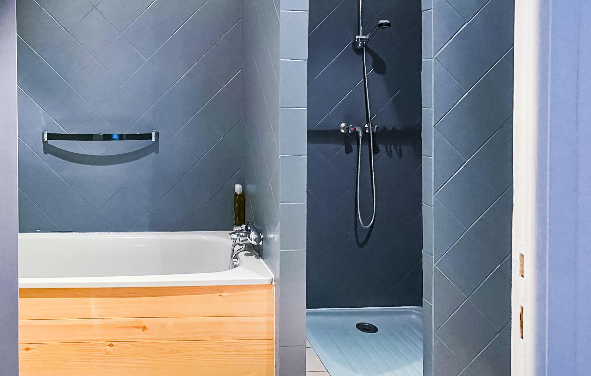 Badeværelse (nr. 1) - Varmt og koldt vand. Bruser og badekar