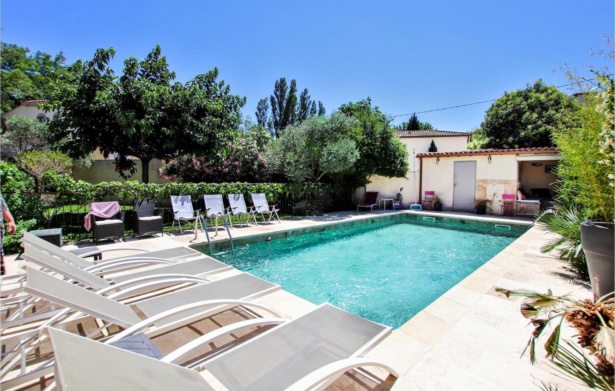 Til denne skønne villa i sognet Angles hører der en privat pool, et poolhouse og en dejlig have med legeredskaber til børn i høj kvalitet. I kan vælge mellem flere terasser, hvor I kan nyde solen, eller opsøg den dejlige skygge i det overdækkede og ligeledes møblerede udeområde. Den rummelige opholdsstue har et åbent køkken der åbner mod den store, overdækkede terasse og haven. På 1. sal ligger der 3 soveværelser samt et rart badeværelse. Angles er en gammel bjerglandsby fra det 14. århundrede, der er kendt for sin gotisk kirke og Tour des Mascs. Gå en tur gennem Villeneuve, som får sit middelalder-flair af et gammelt abbedi og fortet Saint-André. I den skønne by Avignon kan I se det tidligere pavepalads og den ødelagte bro. Opdag den skønne natur på gåben, på cyklen eller på en hest. Der er 18-hul golfbaner i både Avignon (10 km) og Baux-de-Provence (25 km). Hvert soveværelse har et individuel justerbar klimaanlæg.Tilbring en uforglemmelig ferie i Gard i dette feriehus.