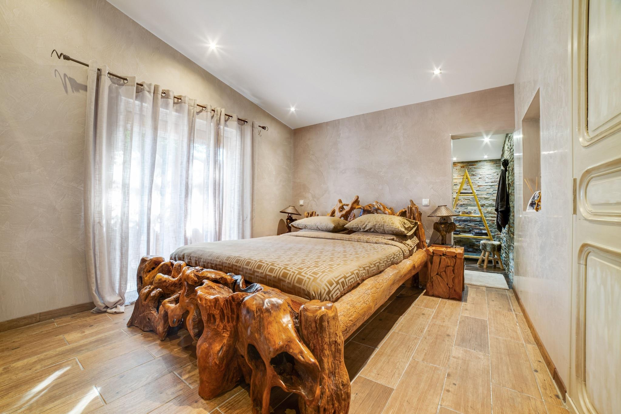 Denne smukke naturstensvilla nær Les Arcs-sur-Argens tilbyder en rummelig stue, et fuldt udstyret åbent køkken og et dejligt soveværelse med eget badeværelse. Huset er færdigt med smag og stil, hvilket skaber en varm og indbydende atmosfære. Les Arcs-sur-Argens er en charmerende landsby med et middelalderligt centrum. Blot 5 km fra autoroute kan du nemt udforske nærliggende attraktioner. Nyd en forfriskende morgensvømning ved Sainte-Maxime-stranden (29 km), og tag derefter færgen til Saint-Tropez (43 km) for en lækker frokost. Gå ikke glip af Maison des Vins i Les Arcs, hvor du kan prøve et bredt udvalg af regionale vine. Villaen har en stor lukket have med privat swimmingpool, perfekt til at slappe af og nyde solen. Dette rolige tilflugtssted lover et fredeligt og mindeværdigt ophold i Provence.