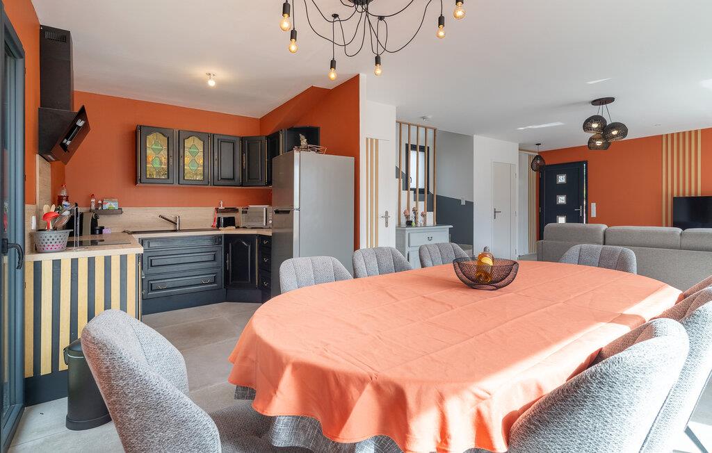 Dette moderne feriehus lægger op til harmoniske dage i sine lyse og smagfulde værelser. Tilbered kulinariske lækkerier i det rummelige køkken og nyd måltiderne i den stilfulde spiseplads. Slap af i den hyggelige stue med en god bog eller en spilleaften.