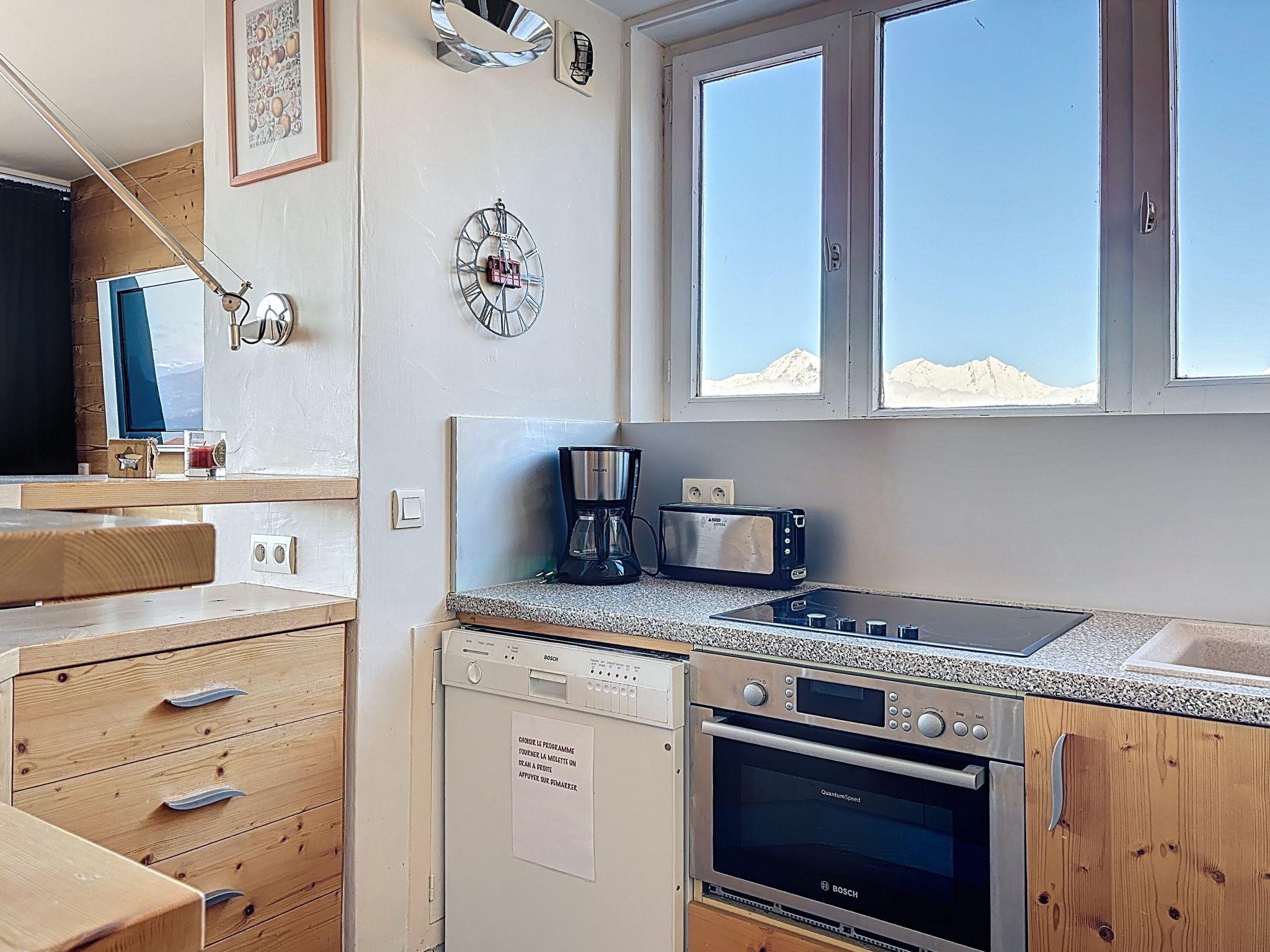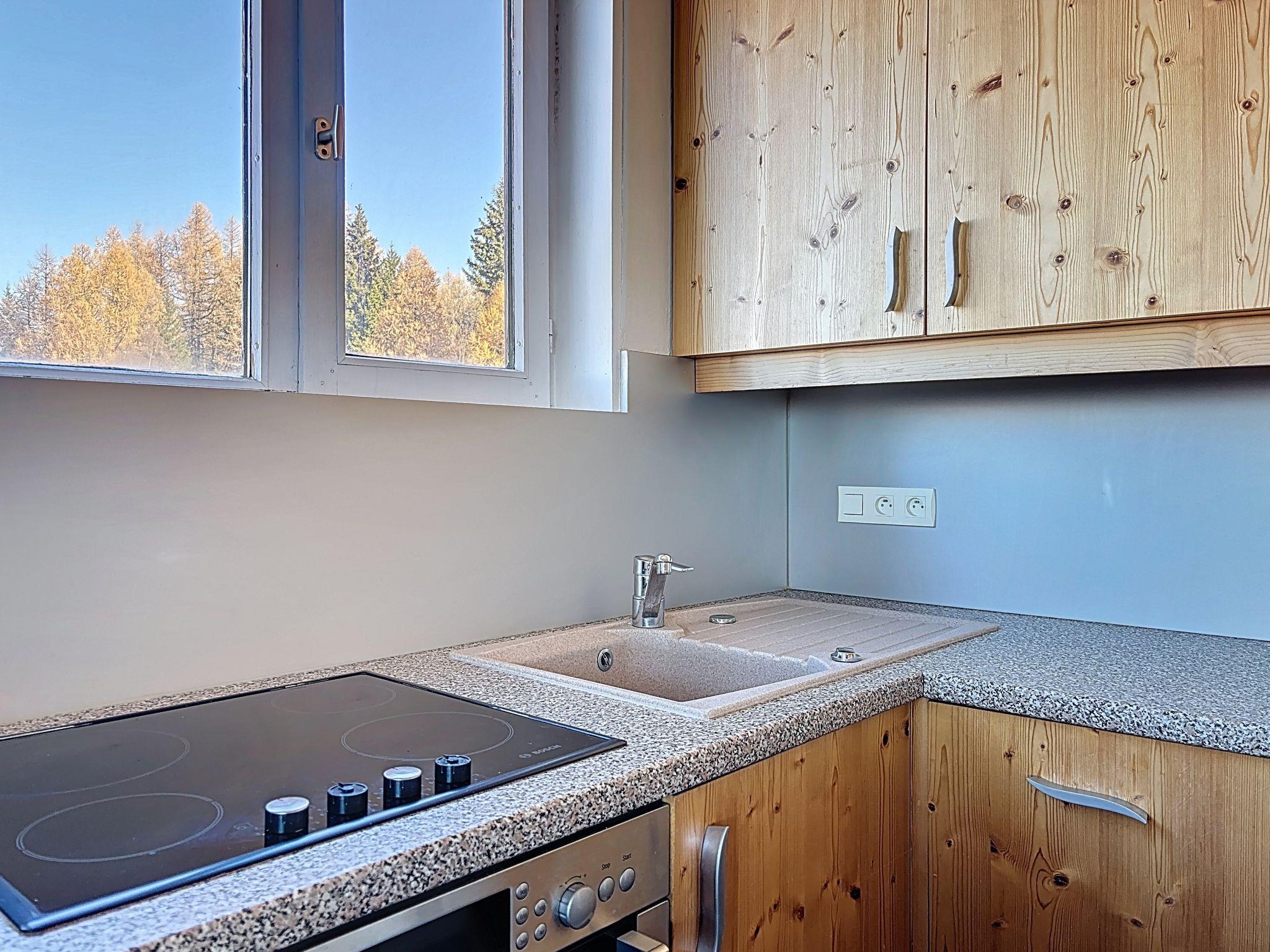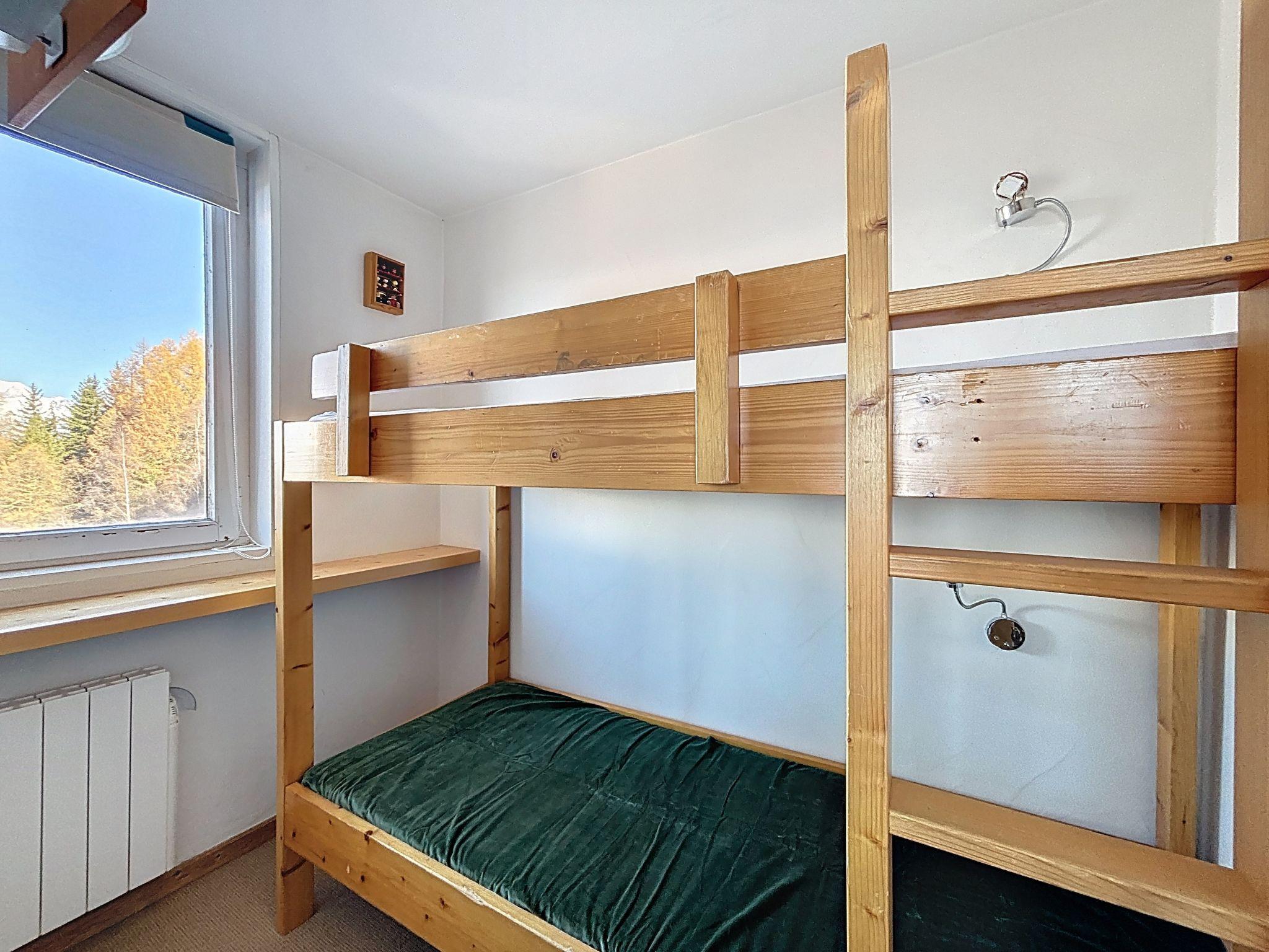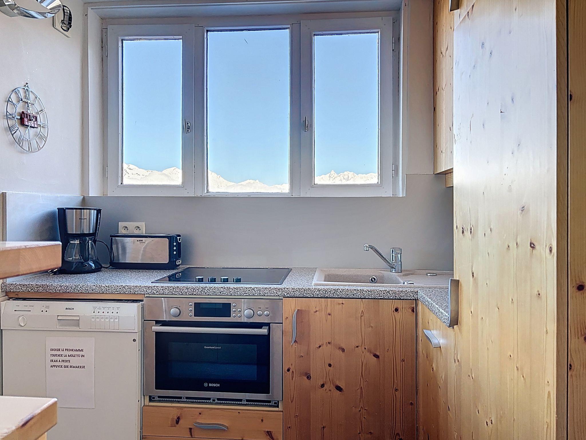 3-room apartment 56 m2 on 8th floor. Practical and comfortable furnishings: living/dining room with 1 double sofabed (160 cm, length 200 cm), dining table and TV (flat screen). Exit to the balcony, south facing position. 1 room with 1 french bed (160 cm, length 200 cm). Exit to the balcony. Sleeping alcove with 1 x 2 bunk beds (80 cm, length 190 cm). Open kitchen (oven, dishwasher, 4 ceramic glass hob hotplates, toaster, kettle, microwave, electric coffee machine). Bathroom, sep. WC. Large balcony, south-west facing position. Balcony furniture. Very beautiful panoramic view of the mountains and the ski run. Facilities: washing machine. Please note: non-smokers only. Offer by a private individual according to Art. 155, IV of CGI.