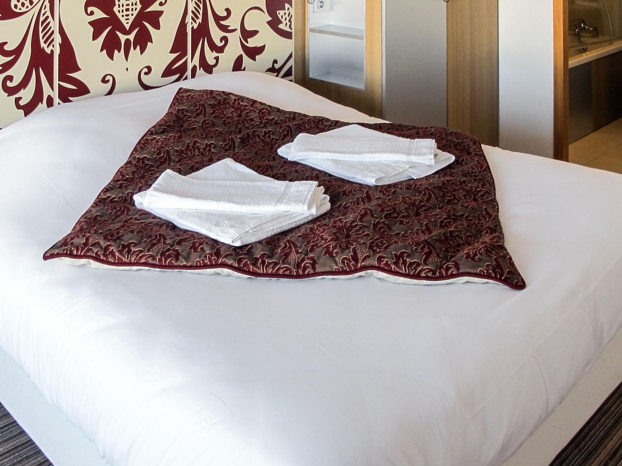 "Résidence Odalys Collection Edenarc", 3-room apartment 50 to 56 m2. Tasteful furnishings: living/sleeping room with 1 double sofabed, open-hearth fireplace, dining table and satellite TV. 1 room with 1 french bed. 1 room with 2 beds. Small, open kitchen (dishwasher, 4 ceramic glass hob hotplates, toaster, kettle, microwave, electric coffee machine). Bath/WC, shower/WC. Underfloor heating. Balcony or terrace. Balcony furniture. Beautiful view of the mountains. Facilities: children's high chair, baby cot. Internet (WiFi, free). Please note: maximum 1 pet/ dog allowed. Smoke alarm, fire extinguisher.