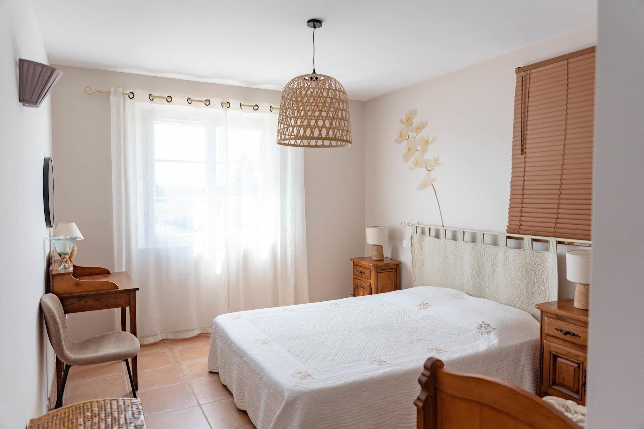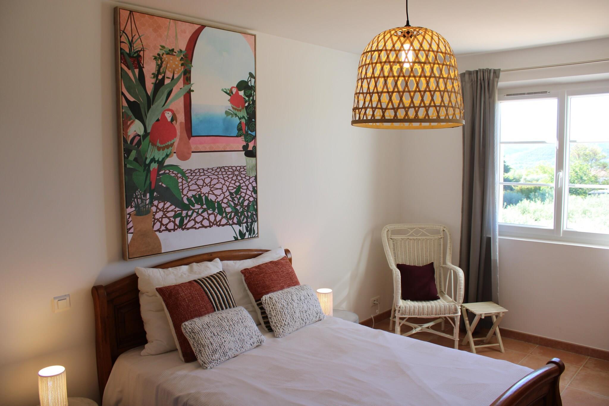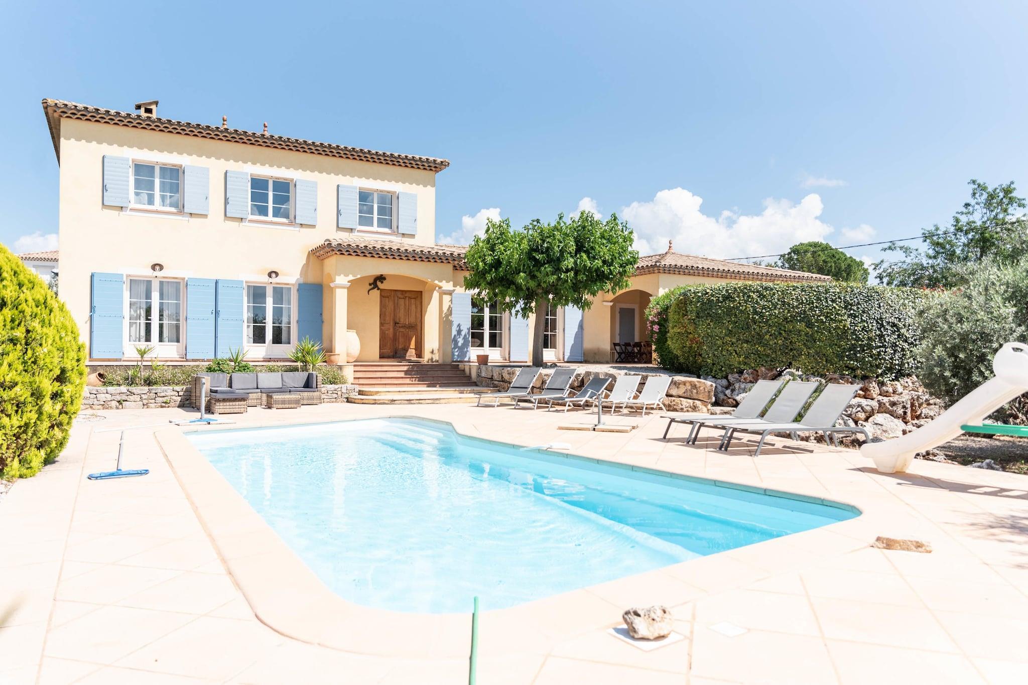 Bastide le Colombier er en smuk provencalsk bastide på en privat ejendom på 2000 m², omgivet af gamle oliventræer og med smuk udsigt og masser af privatliv. Du når frem til bastiden via indkørslen gennem olivenlunden. Her er rigelig parkering til flere biler. Til børnene er der et børnehus og en rutsjebane i haven. Der er cirka 5 minutters gang til centrum af Les Arcs, hvor du finder bager, slagter og forskellige terrasser og restauranter. Hyper Marche of Les Arcs (meget stort supermarked) ligger 5 minutters kørsel derfra. Regionen er hjemsted for adskillige vinslotte og de berømte provencalske markeder. Tirsdag morgen marked i Lorgues kan varmt anbefales! Strandene i Fréjus og St. Tropez ligger 35 km væk, og byerne Nice, Cannes, Toulon/Hyers kan alle nås inden for 1 time. Både stue og spisestue og køkken har store terrassedøre, der fører til terrasser og haven. Stuen har et dejligt opholdsområde med pejs og WiFi er tilgængeligt. Det luksuriøse åbne køkken støder op til spisestuen og er fuldt udstyret. Huset opvarmes og køles gennem gulvet (gennemsnitligt 25 grader) og soveværelserne er forsynet med masser af atmosfære og komfort. Fra første sal har du en smuk udsigt over haven og swimmingpoolen. Den dejlige private swimmingpool har brede trappetrin, hvor du kan slappe af sammen med en drink efter eget valg. Rundt om poolen finder du masser af liggestole, parasoller og et havemøbelsæt. Det store platantræ nær poolen giver den nødvendige skygge på varme sommerdage. Under den overdækkede terrasse ved siden af ??køkkenet er der et stort spisebord til 8 personer og et udekøkken med en elektrisk plancha.